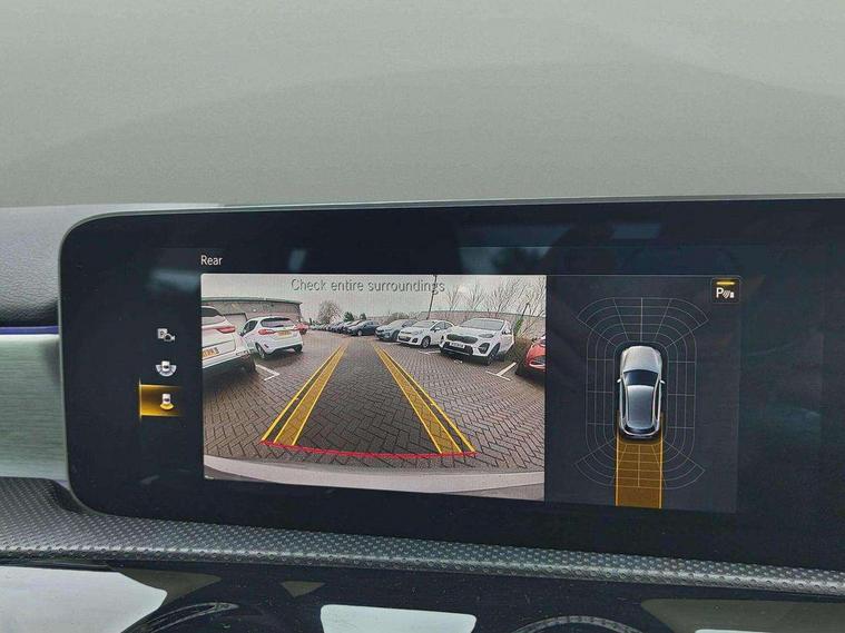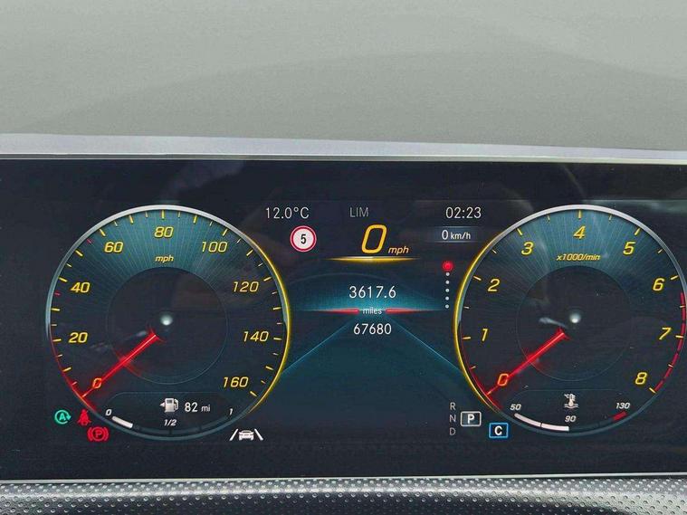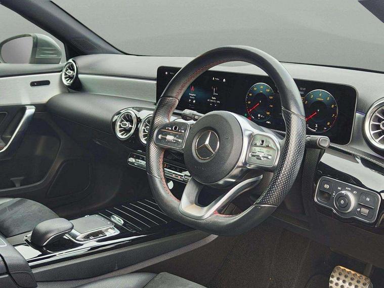 10.25" Digital instrument cluster display screen, 10.25" media display, 180 degree rear view camera with parking guidelines, Active parking assist with visual and audible warning of detected obstacles, Attention assist, Brake pad wear indicator warning light, Car wash mode, Cruise control + speed limiter, Direct steering, Dual bluetooth interfaces, DYNAMIC SELECT with a choice of driving modes (ECO, Comfort, Sport and Individual), ECO start/stop function, Fluid level warning indicator for fuel, oil, coolant and washer fluid, Hard-disk navigation, Hey Mercedes Voice activation, Lamp failure indicator, Lane keeping system, Mercedes me connect including emergency call system, accident recovery, breakdown and maintenance management, Mercedes me remote services, Outside temperature gauge, Owners manual in English, Pre-installation for private car sharing, Preinstallation for Mercedes Benz link, Service indicator (ASSYST), Smartphone integration with Apple CarPlay and Android auto, Speed limit assist, Speed sensitive power steering, Trip computer, Ultrasonic sensors positioned in the front and rear bumpers, Lowered comfort suspension, Rear axle torsion beam, 2 USB ports (type C) in rear stowage compartment and one in front of center console, 6 speakers, DAB Digital radio, MBUX multimedia system with DAB digital radio and touchpad including satellite navigation, Mercedes-Benz sound system - 100W, 4 Electric Front and Rear windows, Adaptive brake lights, AMG bodystyling - Front apron with splitter in chrome, rear apron with chrome trim and chrome visible trim elements in tailpipe, Automatic headlights, Black weather strip, Body colour bumpers, Body colour door handles with chrome inserts, Body colour side skirt, Electric adjustable and heated door mirrors with integrated LED side indicators, Exclusive diamond radiator grille, Exhaust system - Twin visible tailpipes in polished stainless steel, Headlamp assist automatic headlamp activation, Heated glass rear windscreen + timer control, LED High level third brake light, LED high performance headlamps with integrated LED daytime running lights, LED tail lamp, Privacy glass, Radio aerial, Rain sensing windscreen wipers with two sensitivity settings, Rear fog lights, Rear side wing doors, Rear wiper, 3 seat bench in 2nd row, 3 Spoke flat bottom leather multi function steering wheel with perforated leather in grip area, 40:20:40 split folding rear seats, Artico man-made leather/Microfibre Dinamica upholstery with red contrast stitching, Auto Mercedes-Benz child seat recognition sensor, Black air vents with surround in silver chrome, Black roof lining, Brushed stainless steel sports pedals with rubber studs, Controller on centre console with chrome surround, Floor mats with AMG lettering, Front centre armrest with storage compartment, Front seat backs luggage nets, Galvanished gear shift paddles on steering wheel, Heated front seats, Height/reach adjustable steering column, Illuminated Mercedes Benz lettering front door sills with changeable cover, Interior lighting - 64 colour Ambient lighting, Interior mirror with reading lamps in black and frameless, Manual height adjustable front seats, Rear armrest with 2 cupholders, Rear head restraints, Seat occupancy sensor for front passenger seat, Single front passenger seat, Sports seats with integrated headrests, Stowage compartment in centre console with retractable cover, Sunvisors with illuminated vanity mirrors, Touchpad on center console, Twin front cupholders, Two zone thermotronic luxury automatic climate control, Light and sight pack - A Class, Mirror package - A Class, Night pack - A Class Saloon/Hatchback, Seat comfort pack - A Class, 3 rear 3 point seatbelts, ABS with Brake Assist, Active bonnet, Active brake assist includes forward collision warning system with autonomous braking, Adaptive brake assist with hold function and hill start assist, Black seatbelts, Childproof locks manually operated for rear doors and electrically operated for rear power windows, Crash responsive emergency lighting, Driver and passenger head and side airbags, Drivers knee airbag, Dual stage driver/passenger airbags, Electronic parking brake, ESP curve dynamic assist, ESP with ASR, Front and rear seatbelt reminder, Front brake callipers with Mercedes Benz lettering, ISOFIX and top tether child seat fixing points in two outer rear seats, Tyre pressure monitoring system, Warning triangle and first aid kit, Window airbags, Alarm system/interior protection/immobiliser, Keyless entry lock/unlock, Keyless Go, Remote central locking and crash sensor with emergency opening function, Urban guard vehicle protection system with immobiliser and interior protection, Matrix look light longitudinal grain aluminium trim element, 18" AMG 5 twin spoke light alloy wheels aerodynamically optimised painted in black with highsheen finish, Summer tyres, Tirefit sealant kit,