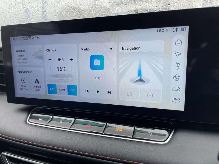 Driver attention alert, 12.3" colour touchscreen, 12.3" Virtual driver information display, 360 degree parking camera, Android Auto, Apple CarPlay, Blind spot detection, Bluetooth connectivity, Cruise control, Driver memory function, Emergency call service, Forward collision warning, Front parking sensors, iSmart, Lane change assist, Lane keep assist system (LAS) with Lane departure warning system (LDWS), Live services, PAS, Power tailgate, Rear cross traffic alert, Rear parking sensors, Satellite navigation system, Speed limit assist, Trip computer, Wireless charging, 4 USB ports 2 front and 2 rear, 8 Speaker audio system, DAB audio, Auto dimming rear view mirror, Automatic headlights, Electric adjustable/heated/folding door mirrors with memory, Follow me home headlights, Front and rear aero wiper, Front and rear electric windows with one-touch up/down, Front fog lights, Intelligent high beam, LED 3rd brake light, LED daytime running lights, LED Headlights, LED rear lights, Rain sensing wipers, Rear privacy glass, Rear side wing doors, Silver roof rails, Vehicle to Load, 12V power sockets, 2nd row 60/40 split fold seat, 3 rear headrests, 3 seat bench in 2nd row, 3 stage heated front seats, 4 way electric adjustable passenger seat, 6 way electric adjustable drivers seat + lumbar support, Dual zone automatic air conditioning, Front and rear reading lights, Front centre sliding armrest with storage compartment, Front headrests, Height and reach adjustable steering wheel, ISOFIX restraints on outer rear seats x2, Multi function steering wheel, Single passenger seat, 3x3 point rear seatbelts, ABS/EBD, Active emergency braking with pedestrian/Bicycle detection, Anti rolling protection, Door open warning, Drivers seatbelt reminder, Dual front airbags, Electric parking brake with auto hold function, ESP, Front and rear passenger seat belt reminder, Front centre airbag, Front passenger airbag deactivation switch, Front seat belt height adjuster, Front seatbelts (3-point + pretensioner + load limiter), Front side airbags, Hill descent control, Hill launch assist, Manual rear child locks, Rear outer seatbelt pretensioner and load limiter, Side curtain airbags, Tyre pressure monitoring system, Alarm system and engine immobiliser, Keyless entry and push button start system, Remote central locking, Speed sensing door locks, 19" Blade diamond cut alloy wheels, Tyre repair kit,