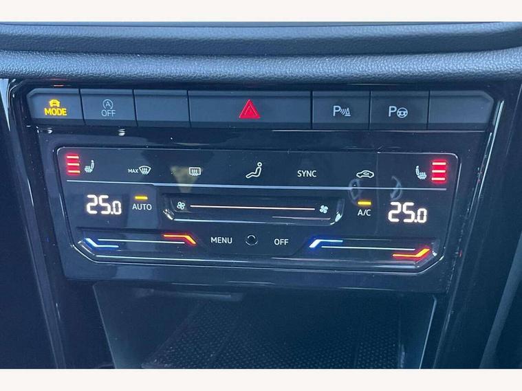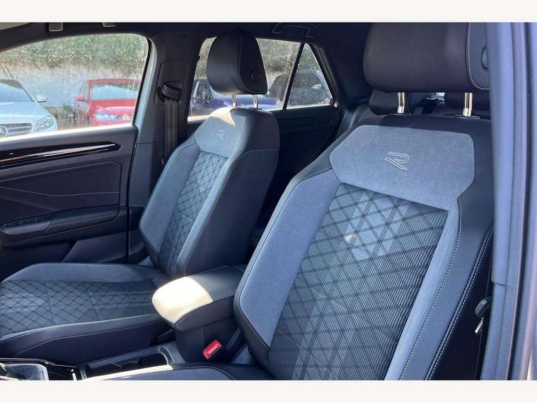 10.25" Digital cockpit pro, Bluetooth mobile phone interface, Driver alert system with fatigue detection, Driver tips and journey analysis, Emergency call service, Lane keeping system Lane Assist, Modified key software - reduce switch off time for key status change to Long no motion, Online services, Park assist including front and rear parking sensors, Service interval indicator, Tailgate/trunk lid release from outside, Think blue trainer driver tips and journey analysis, Warning sound and light for front seatbelts unfastened, Wireless app connect, Battery regeneration during braking, Start/stop function with battery regeneration, Diversity antenna for FM reception, Front and rear 6 speakers, Music playback - MP3, WMA and AAC files, Premium USB cable in choice of either Apple or Android smartphone compatibility, SD card slot, Simultaneous pairing of 2 compatible mobile devices, Title and cover art display, We Connect and We Connect Plus functionality, 3rd brake light, Auto dimming interior rear view mirror, Automatic hazard lights activation under emergency braking, Automatic headlight control with LED separate daytime running lights with coming/leaving home function, Extended roof spoiler, Exterior mirrors aspherical on driver side, convex on front passenger side, External USB type C socket and charging sockets, Front windscreen wiper with intermittent wipe and 4 position delay, Heated rear window, LED Plus headlamps, LED rear combination lamps, LED rear number plate lights, LED tail lamp rear comination lamps, Power windows with comfort operation and circuit breaker, R-Line design body coloured bumpers, Rain sensor, Rear exhaust tailpipe, Rear fog light on one side and reversing lights on both sides, Rear side wing doors, Rear wash/wipe with intermittent wipe setting, Remote electrically foldable door mirrors, puddle lights and reverse activated passenger's door mirror, 12V power socket in centre console, 3 rear head restraints, 3 seat bench in 2nd row, 4 load lashing points in luggage compartment, Air care climatronic air conditoning system with active combination filter and 2-zone temperature control, Black roof lining, Chrome plated radiator grille inserts, air vent surrounds and light switch surrounds, Door and side trim panel with leatherette insert, Drawer under drivers seat, Front + rear carpet mats, Front centre armrest, Front cupholders x 2, Front footwell illumination, Front reading light, Front scuff plates with R logo, Instrument lighting, white adjustable panel illumination, Interior ambient lighting and surround lighting, Interior light delay, Isofix child seat preparation, Leather gearshift handle, Load-through provision with cup holder when folded down ('Unsplit rear seat bench, split folding backrest, with centre armrest), Luggage compartment lighting, Single front passenger seat, Stainless steel pedals, Storage compartment in left and right luggage area, Storage compartment in rear doors, Storage compartments in driver and front passenger doors, Sunvisors with illuminated vanity mirrors, Variable boot floor, height adjustable and removable, Driver assistance pack without proactive passenger protection - T-Roc, 3 point height adj front seatbelts + pretensioners, 3 point seatbelts in outer rear with ECE label, ABS, Child locks on rear doors, Driver and front passenger airbag with front passenger airbag deactivation, Driver and front passenger safety-optimised head restraints, Drivers seatbelt reminder, Electronic parking brake, Electronic Stability Control (ESC) inc EDL (Electronic Differential Lock) and ASR (Traction Control), Front and rear passengers curtain airbag system including front side airbags, Front assist with city emergency braking and pedestrian monitoring, Front seat side impact airbags, Hill start assist, Predictive pedestrian protection, Rear disc brakes, Single tone horn, Tyre pressure loss indicator, Volkswagen roadside assistance, Alarm with interior protection, Anti-theft alarm system with interior monitoring, backup horn, and towing protection, Remote central locking with SAFELOCK, radio remote control with 2 remote control folding keys, Trims for alloy wheels,