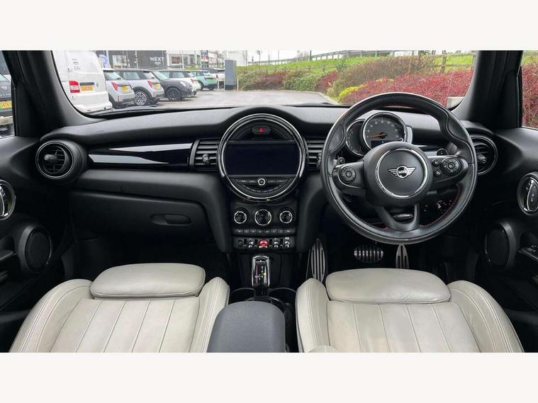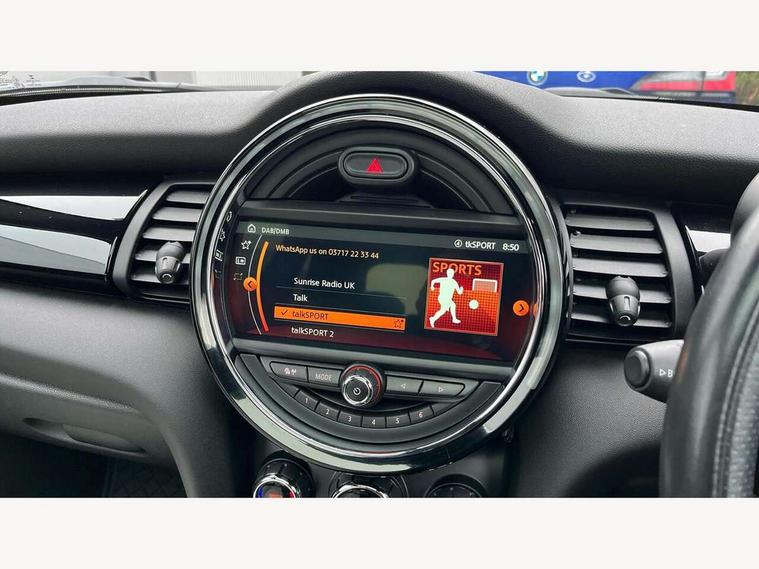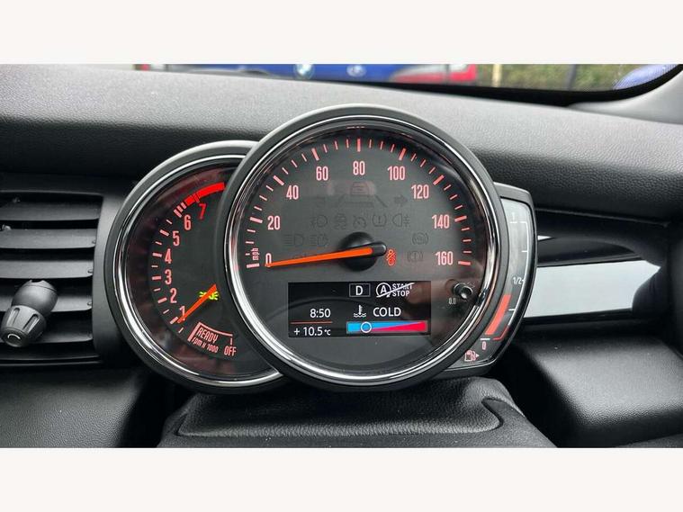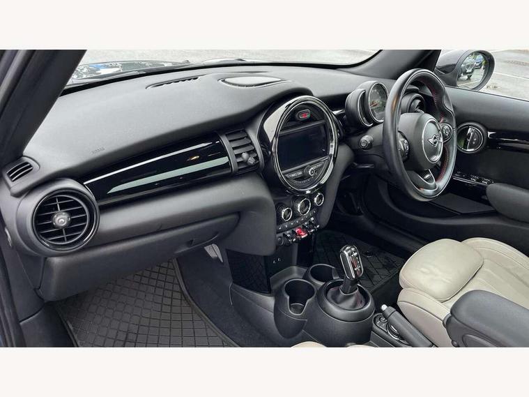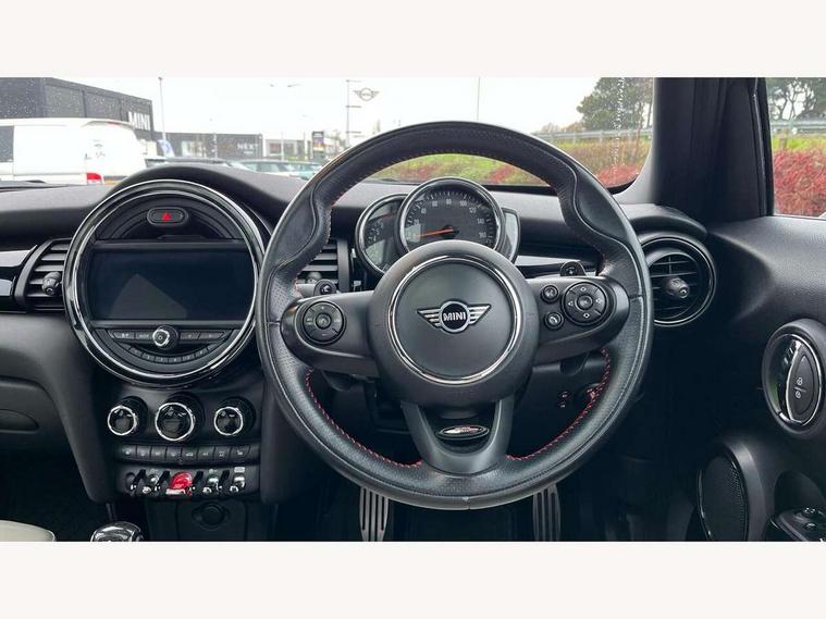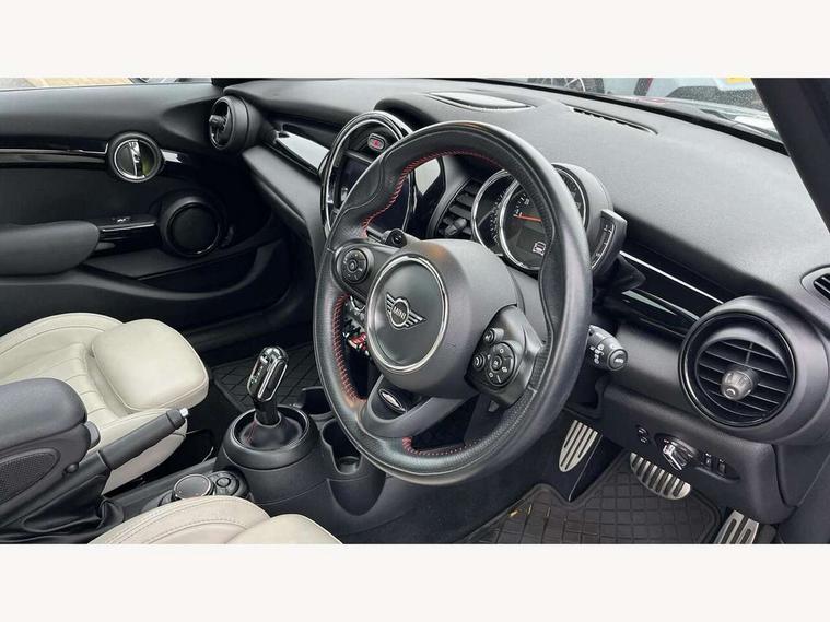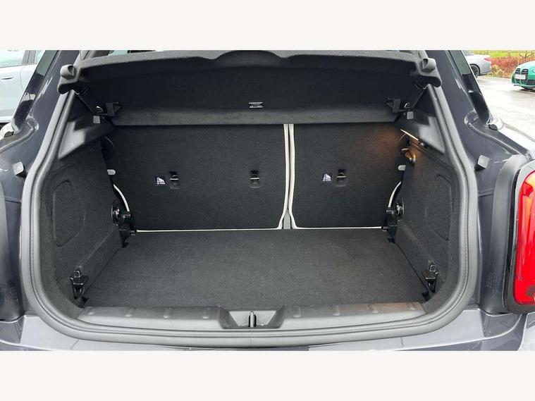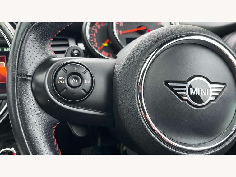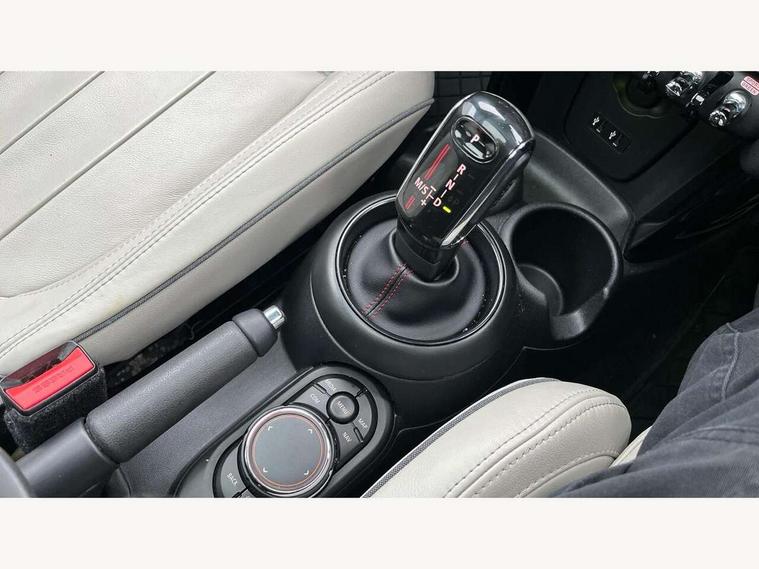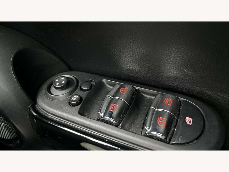 Acoustic seat-belt warning, Basic bluetooth function with USB audio, Brake fluid level warning light, Brake pad wear indicator warning light, DTC - Dynamic traction control, Exterior temperature gauge, Intelligent emergency call, MINI TeleServices, Oil level indicator, On board computer, Push button starter, Service interval indicator, Servotronic PAS, Electronic differential lock, Performance Control, Auxiliary input socket, DAB digital radio module, 2 speed wipers+intermittent wipe, Anti dazzle mirror, Anti trapping/one touch open close front windows, Body colour scoop integrated into engine- compartment lid, Body coloured bumpers, Chrome bezels around rear lights and headlights, Chrome door handles, Chrome plated fuel cap, Chrome plated trim on bottom edge of window, Chrome strip on lower grille, Electric front windows, Electric rear windows, Electrically adjustable door mirrors, Flared wheel arches, Follow me home headlights, Green tinted heat insulating glass, Heated door mirrors/heated windscreen washers, Heated rear window with auto timer, High gloss black tailgate, Honeycomb radiator grille, LED fog lights, LED rear lights, Rear wiper, Side scuttles, Twin chromed exhaust pipes, White indicator lights, 2 rear head restraints, 4 boot load lashing points, 4 way manually adjustable passenger seat with height, reach, tilt, backrest and headrest, 6-way manually adjustable driver's seat, Active carbon filter, Adjustable front seats backrest, Air recirculation system, Auxiliary socket in centre console storage compartment, Centre console storage, Driver's seat height adjuster, Driver/passenger sunvisors, Front and rear cupholders, Front head restraints, Front passenger grab handle, Front seat backrest storage nets, Front sports seats, Gear/selector and handbrake in artificial leather, Internal chrome door handles, Isofix child seat preparation, Luggage compartment lighting, Multifunction steering wheel, Reach + rake adjustable steering column, Rear grab handles, Rear storage trays, Split folding rear seats, Storage compartments in doors, Toolkit in luggage compartment, 3 point seatbelts, 3x3 point rear seatbelts, ABS/EBD, ASC+T, Cornering brake control (CBC), Crash Sensor - activates hazard/interior lighting + unlocks doors, Driver and passenger airbags, Driver/front passenger side airbags, DSC - Dynamic Stability Control, Fuel cut off safety device, Head airbags, Hill start assist, Manual passenger airbag deactivation function, Seatbelt pretensioners, Tyre pressure warning, Ventilated front disc brakes, Drive away door locking, Locking wheel bolts, Remote central locking/doors+fuel cap+tailgate, Second remote key, Thatcham category 1 alarm + immobiliser,