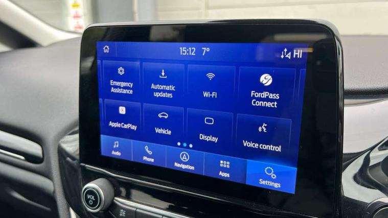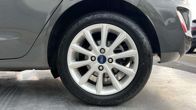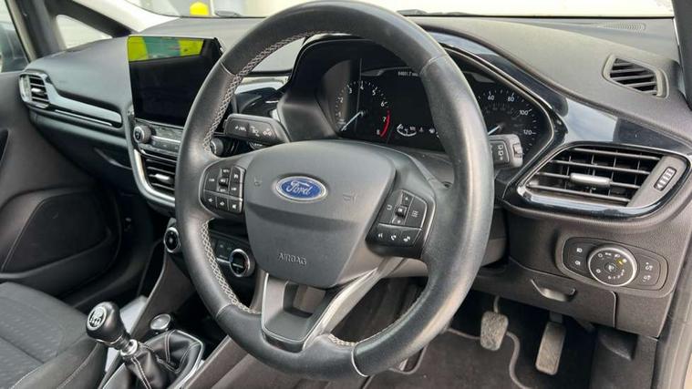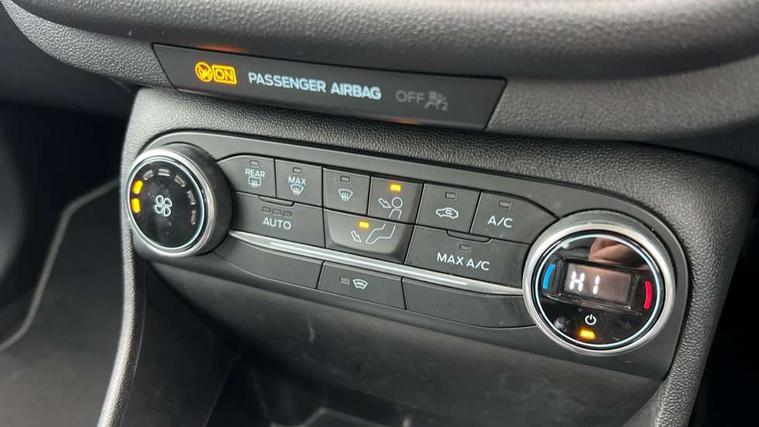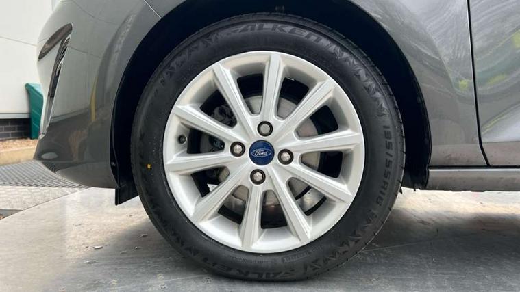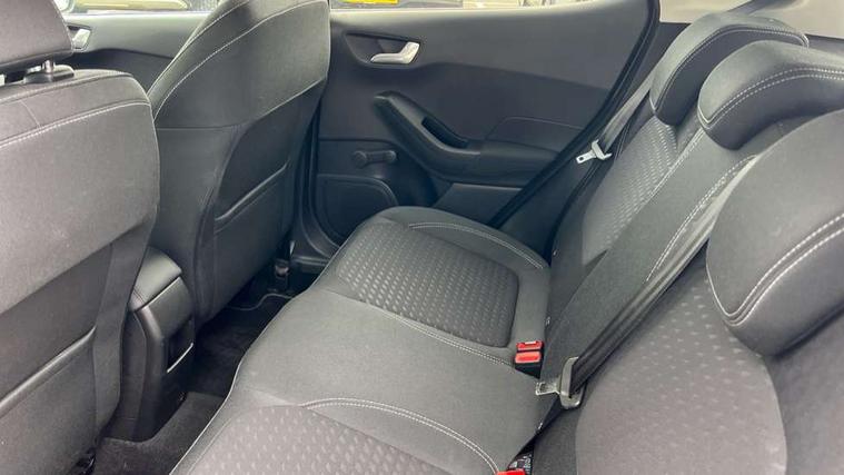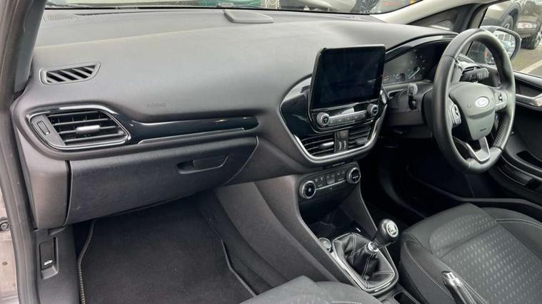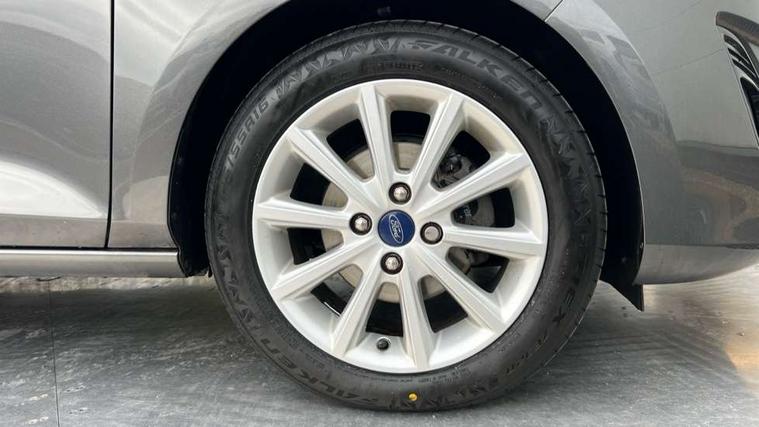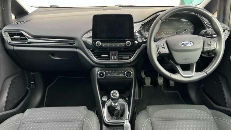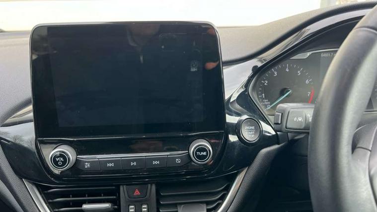 Bluetooth system, Electric power steering, Ford easy fuel, Ford SYNC 3 Navigation system incl 8" touchscreen, 7 speakers, FordPass connect, Apple carplay, android auto, voice control and emergency assistance, Rear parking distance sensors, Trip computer, 2 USB ports, Auxiliary input socket, DAB Digital radio, Steering wheel mounted controls, Body colour bumpers, Body colour door handles, Body colour rear spoiler, Body coloured electrically operated and heated door mirrors with side indicators, Chrome beltline trim, Chrome front grille, Chrome lower window surround, Cornering front fog lights, Electric front windows/one touch facility, Electric rear windows, LED Night signature to rear lights, Power foldable door mirrors with puddle lights, Quickclear heated windscreen, Rain sensing wipers and auto dimming rear view mirror, Rear privacy glass, Rear wiper, 12V Accessory socket in centre console, 3 spoke leather trimmed steering wheel with audio control, 60/40 split folding rear seat, Adjustable head restraints, Boot carpet, Centre console with armrest and illuminated cupholders, Chrome inner door handles, Cloth upholstery, Footwell illumination, Front and rear velour floor mats, Front map reading lights, Front seat and rear pockets, Height adjustable driver's seat, Illuminated glovebox, LED ambient lighting, Load area light, Luxury woven headliner, Manual air conditioning, Overhead console with sunglasses holder, Pollen filter, Rake/reach adjustable steering wheel, Sensico wrapped handbrake and gearknob, NCAP Pack - Fiesta, 3 point seatbelts on all rear seats, ABS+EBA, Curtain airbags, Driver and passenger airbags, Drivers knee airbag, Electronic stability control with hill start assist, Front passenger airbag deactivation, Front side airbags, Seatbelt warning, Two tone horn, Tyre pressure monitoring system, Keyless start with 'Ford Power' starter button, MyKey system, Remote central locking & engine immobiliser, Thatcham Cat.1 alarm, 16" 10 spoke alloy wheels,