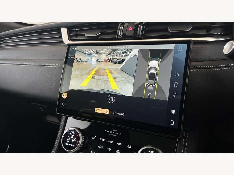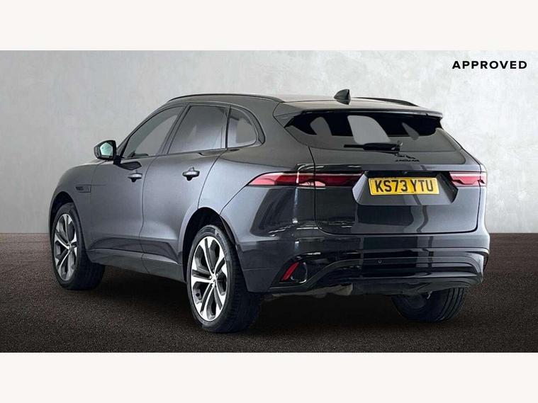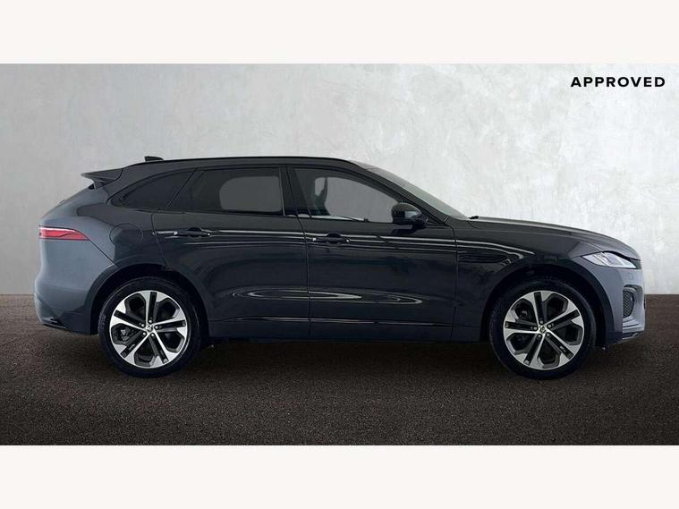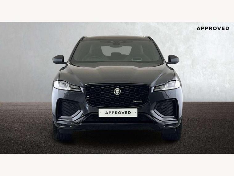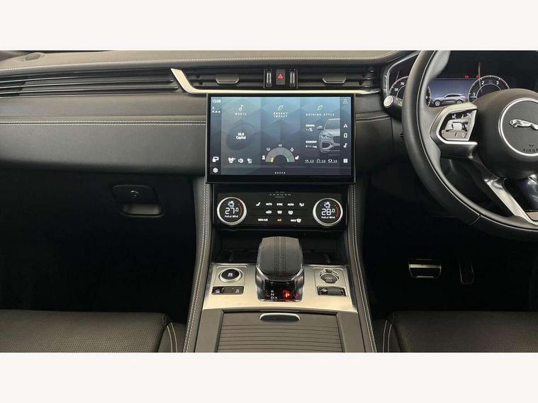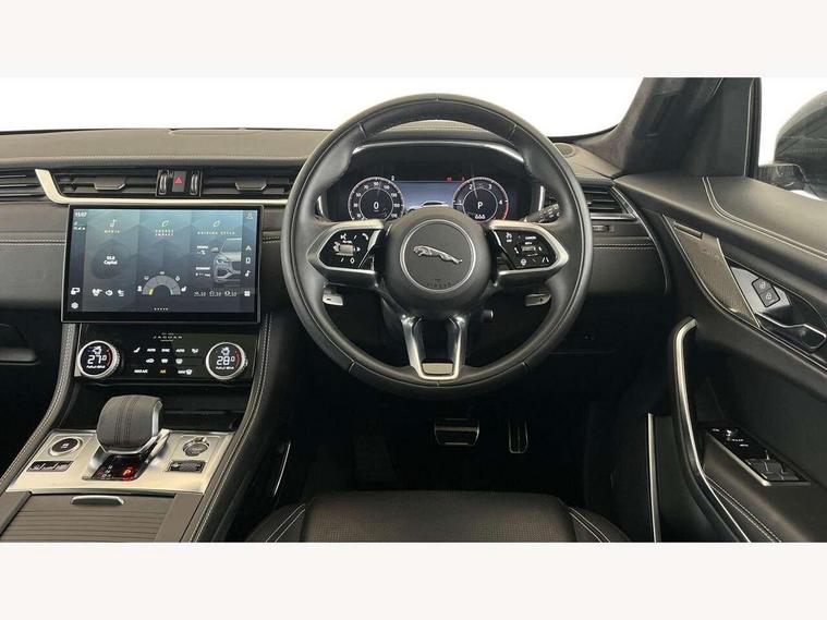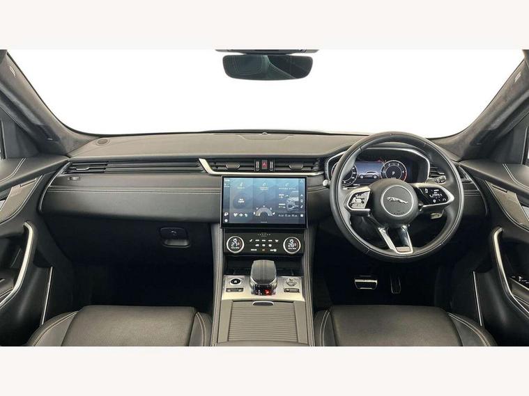 11.4" touchscreen, Adaptive cruise control with steering assist, Android Auto, Apple car play, Blind spot assist, Bluetooth connectivity, Clear exit monitor, Driver alert system, Driver condition monitor, eCall emergency call system, Eco driving style assistant, Electric power assisted steering, InControl remote, Interactive driver display digital with 12" TFT display, Jaguar Toggle shift selector, Lane departure warning system, Lane keep assist, Outside temperature gauge, Personalisation profile management, Pivi pro connected navigation system with app interface and media storage, Pro services and wifi hotspot, Push button starter, Rear collision monitor, Rear traffic monitor, Service interval indicator, Speed proportional steering, Start up sequence with movement in dials and lighting, Traffic sign recognition with adaptive speed limiter, Trip computer, Voice control system, Wireless device charging, 8 speed automatic transmission, Adaptive dynamics, All terrain progress control, All Wheel Drive (AWD), Configurable dynamics, Open differential with torque vectoring by braking, AM/FM radio, Bluetooth streaming, DAB Radio (Digital Audio Broadcasting), Dynamic volume control, InControl apps, InControl protect, iPod integration, 3 flash lane change indicators, Animated directional indicators, Approach Illumination, Auto dimming rear view mirror, Auto high beam assist, Automatic headlights, Electric heated/power fold memory door mirrors with approach lights and auto dimming driver side, Electric windows with one touch open/close and anti trap, F-Pace and R Dynamic badge, Green tinted glass, Heated front windscreen + heated washer jets, Heated rear window with timer, Illuminated metal tread plates with Jaguar script, Jaguar script and leaper, LED High level third brake light, LED tail lights, Metal load space scuff plates, Non acoustic front windscreen, Privacy glass, R Dynamic badge on side door, Rain sensor windscreen wipers, Rear fog lights, Rear metal tread plates, Rear side wing doors, Rear wiper, Trailer stability assist, Variable front intermittent wipers, 12V power point front, 3 rear headrests, 3 seat bench in 2nd row, Additional power sockets - Two additional USB sockets in rear centre console and one 12V socket in trunk, Air distribution speed, Bright metal foot pedals, Centre armrest console, Centre console with side storage, Configurable cabin lighting, Deletion loadspace storage rails, Door sill tread plates, Ebony suede cloth headlining, Electrically adjustable steering column, Fold flat front seats, Front centre armrest with storage compartment, Front door storage space, Glovebox finisher with jaguar script, Heated steering wheel, Hooks in loadspace, Illuminated glovebox, Interior front door handles with separate locking switches, ISOFIX on outer rear seats, Jaguar sense, Leather steering wheel, Luggage tie downs in loadspace, Mist sensing, Multifunction steering wheel, Overhead lighting console, Overhead stowage for sunglasses, Passive front head restraints, Premium carpet mats, Rear air vents, Rear armrest with twin cupholders, Rear centre headrest, Rear door storage space, Reversible boot floor, Satin chrome gearshift paddles, Shopping bag hook, Single front passenger seat, Sunvisors with illuminated vanity mirrors, Twin front cupholders with cover, Online Pack with data plan - F-Pace, 355mm front brakes and 325mm rear brakes, 3x3 point rear seatbelts, ABS, All surface progress control (ASPC), Brake pad warning light, DSC - Dynamic Stability Control, Electric parking brake (EPB), Emergency brake assist, Front airbags with passenger seat occupant detector, Front and rear seatbelt reminder, Front side airbags, Full length side window curtain airbag, Hill launch assist, Power operated child locks, Traction control, Tyre pressure monitoring system, Immobiliser, Keyless entry, Keyless start, Locking wheel nuts, Perimeter alarm, Remote central locking, Valet mode,