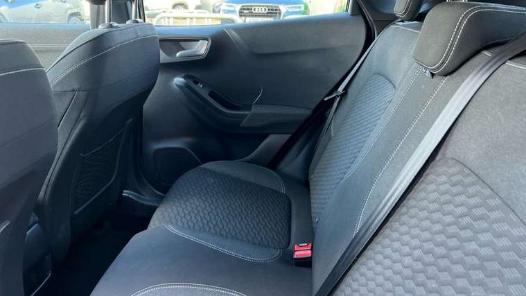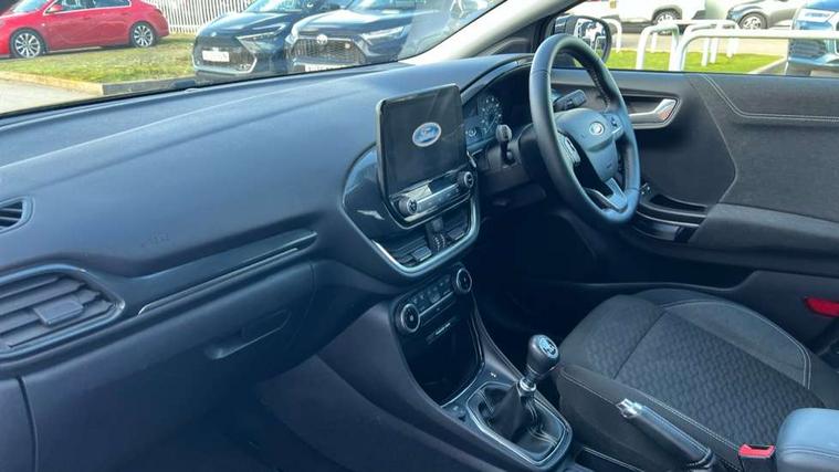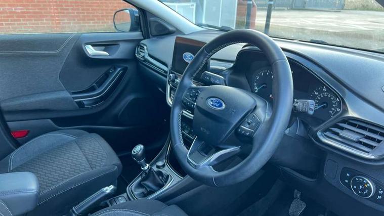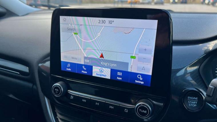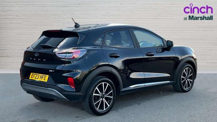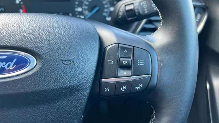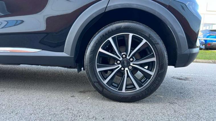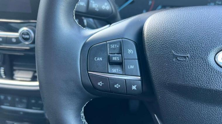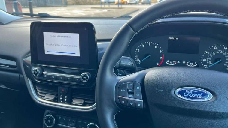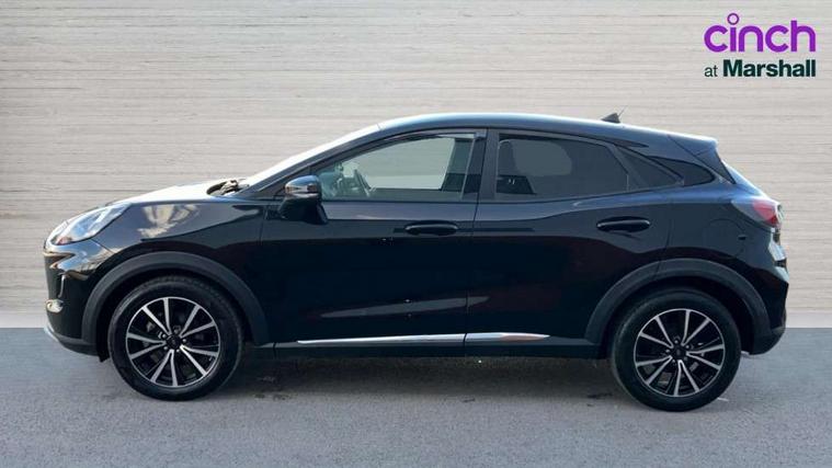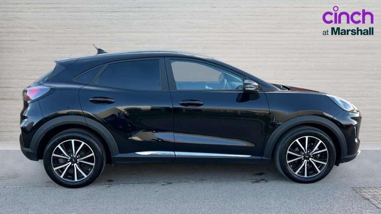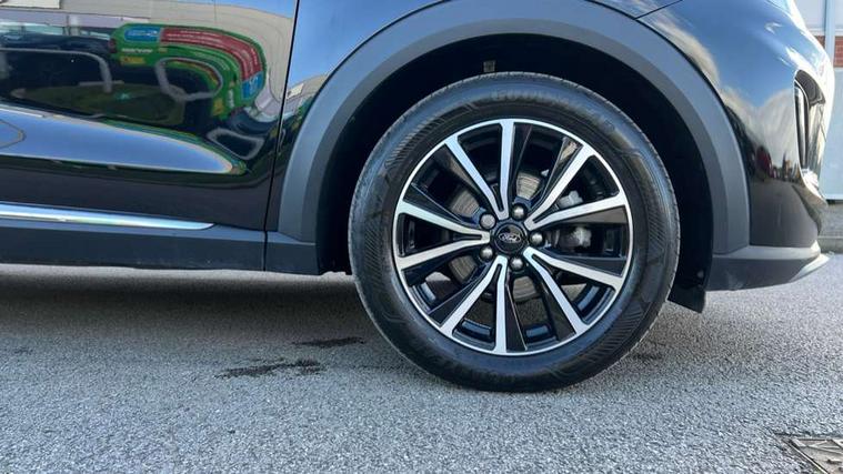 Driver impairment monitor, Emergency call service, Ford easy fuel, Lane keeping aid with lane departure warning, Power assist steering, Power start button, Rear parking sensor, Selectable drive modes(Normal, Eco, Sport, Slippery and Trail), Speed sign recognition, Standard suspension, Automatic headlights with auto high beam, Automatic rain sensing wipers, Body colour rear spoiler, LED rear lamps, Power foldable heated door mirrors with puddle lamps, Projector headlamps with LED day time running lights and front fog lamps, Quickclear heated windscreen, Rear side wing doors, Rear wiper, Third brake light, 3 seat bench in 2nd row, Centre console with armrest and stowage, Electronic automatic temperature control (EATC), Ford megabox extended bootspace, Front and rear head restraints, Front floor mats, Manual 2 way passenger seat adjustment, Manual 4 way driver seat adjust with lumbar adjustment, Sensico leather steering wheel/gear knob/handbrake, Single front passenger seat, Titanium cloth upholstery, Ford SYNC 3 navigation pack - Puma, 3 rear seatbelts, Child safety lock, Electronic stability control (ESC) and hill start assist, Pedestrian/cyclist detection & post-collision braking, Pre collision assist system, Tyre pressure monitoring system (TPMS), Thatcham alarm, 17" 10 spoke absolute black machined finish alloy wheel,