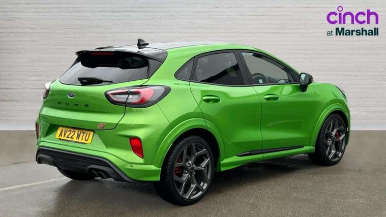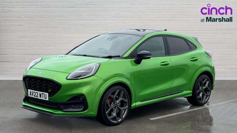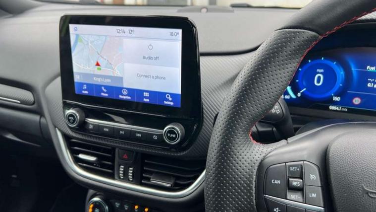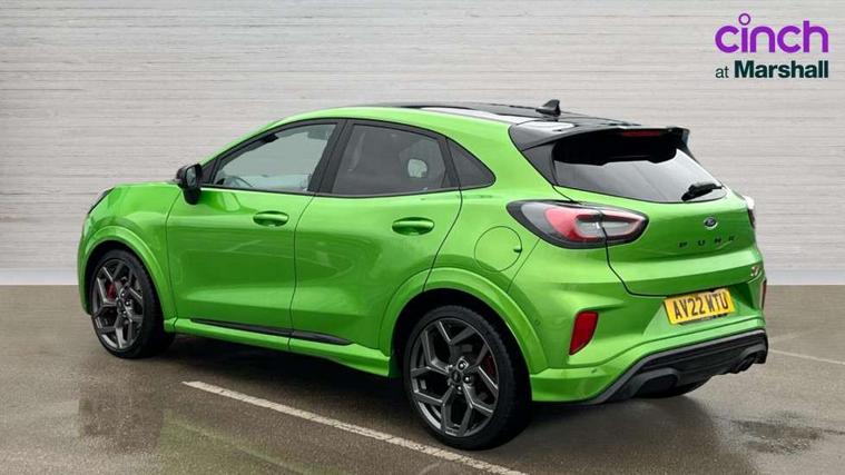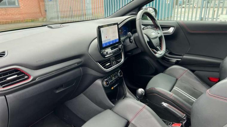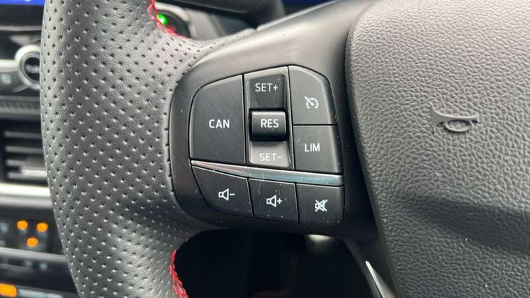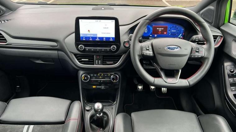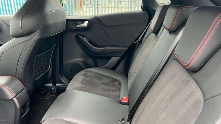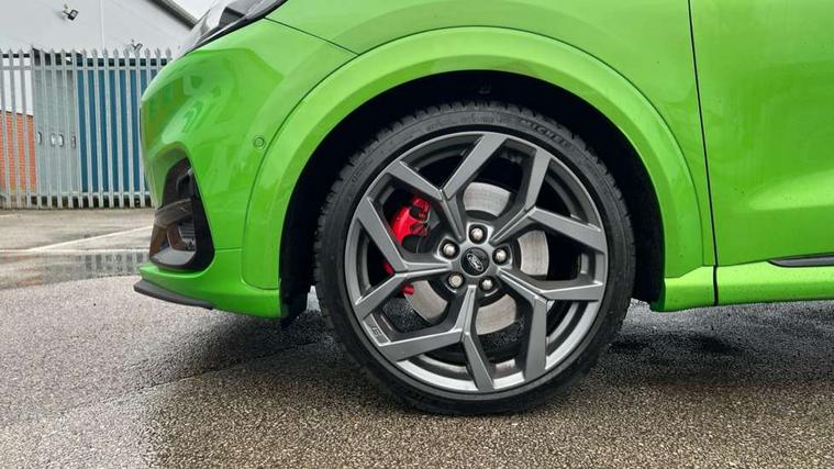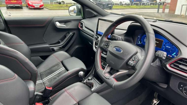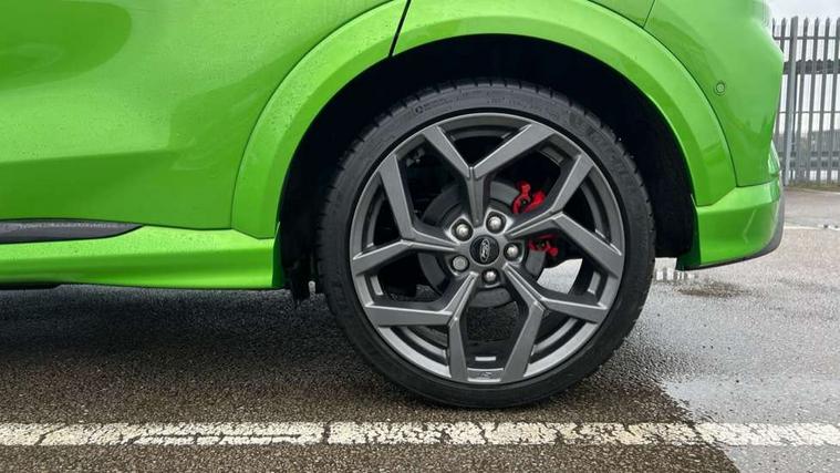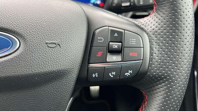 Cruise control, Driver impairment monitor, Emergency call service, Ford easy fuel, Front and rear parking sensors, Full digital 12.3" instrument cluster, Lane keeping aid with lane departure warning, Power assist steering, Selectable drive modes (normal, sport, eco, track), Speed sign recognition, Engine sound enhancer, ST suspension, Automatic headlights with auto high beam, Automatic rain sensing wipers, Dual chrome exhaust, Fixed LED signature headlamps, Front fog lamps, LED daytime running lights, LED rear lamps, Power foldable heated door mirrors with puddle lamps and puma logo protection, Privacy glass to side rear windows and tailgate glass, Quickclear heated windscreen, Rear side wing doors, Rear wiper, ST scuff plates, Third brake light, Unique ST body styling kit including contrast black roof, large rear spoiler and wing mirrors, plus Ford Performance embossed splitter, 3 seat bench in 2nd row, Alloy sports pedals, Centre console with armrest and stowage, Ford megabox extended bootspace, Ford Performance sensico partial premium leather upholstery with metal grey stitching, Front and rear floor mats, Front and rear head restraints, Manual 6 way driver seat adjust with lumbar adjustment, Manual 6 way passenger seat with lumbar seat adjustment, Single front passenger seat, ST flat bottomed steering wheel with metal grey stitching, ST logo projection, Unique ST gear shift knob, Wireless charging pad with electronic air temperature control (EATC), B&O Premium Audio system + Ford SYNC 3 navigation pack - Puma, Winter pack - Puma, 3 rear seatbelts, Child safety lock, Electronic stability control (ESC) and hill start assist, Pedestrian/cyclist detection & post-collision braking, Pre collision assist with autonomous emergency braking, Red brake calipers, Tyre pressure monitoring system (TPMS), Keyless entry and power start button, Thatcham alarm, Carbon look interior deco spears, Tyre inflation kit,