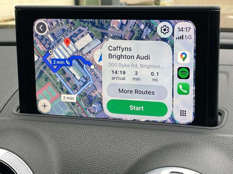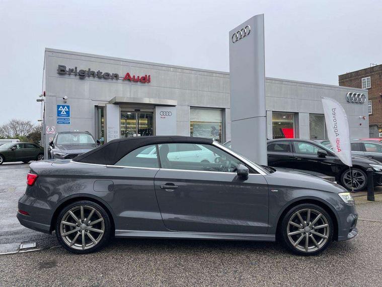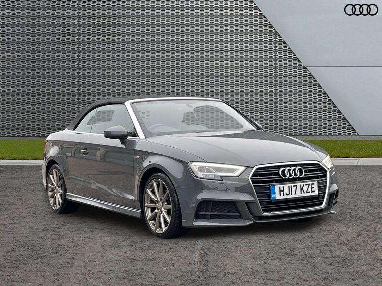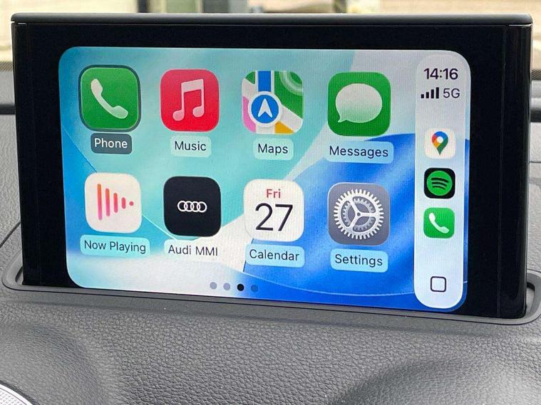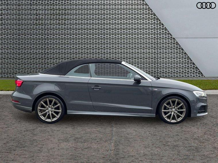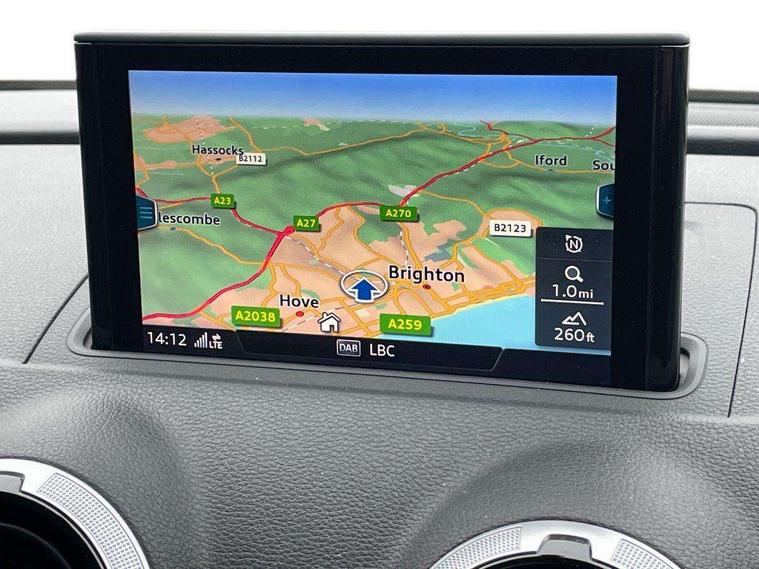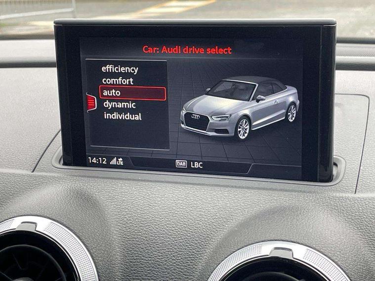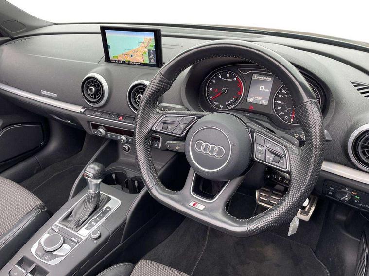 Audi connect, Audi drive select, Audi smartphone interface, Bluetooth interface, Colour driver's information system display, Service interval indicator, 2 USB ports, Audi music interface, DAB Digital radio, Aluminium side window trim, Automatic lights and wipers, Body colour bumpers, Body colour door mirrors with integral indicators, Chrome exhaust tailpipes, Electric operated/heated door mirrors, Front and rear electric windows, Fully automatic acoustic hood, Heated front windscreen, Heated rear window, Heated windscreen washer jets, LED daytime running lights, S Line body styling, 2 height adjustable rear headrests, 3 spoke flat bottom multi-function leather steering wheel including paddle shift, 4 lashing points to secure luggage, 50/50 split folding rear seat, Adjustable front armrest, Driver/passenger sunvisors, Dual zone electronic climate control, Front/rear floor mats, Height adjustable front seats, Height/reach adjustable steering column, Illuminated door sills, Illuminated glovebox, ISOFIX child seat preparation+airbag deactivation, Jack and tool kit, Perforated leather gearknob, Stainless steel pedals, Storage compartment in centre console, Storage compartments in doors, LED interior light pack - A3/RS3, Light and rain sensor pack - A3 Cabriolet, Storage pack - A3 Cabriolet/Saloon, 3 point seatbelts on all seats, ABS/EBD, Active bonnet, Active front headrests, ASR, Automatic roll over protection, Driver and passenger side airbags, Driver/Front Passenger airbags, Drivers knee airbag, EDL, Electromechanical parking brake, ESC - Electronic Stability Control + traction control, Front passenger airbag deactivation, Seatbelt warning, Tyre pressure monitor, Warning triangle and first aid kit, Anti theft alarm, Anti-theft wheel bolts, Immobiliser, Remote control central locking, Aluminium air vent surrounds, Aluminium trim elements, Space saver spare wheel,