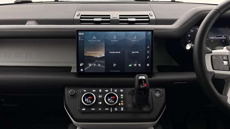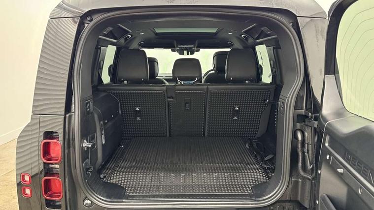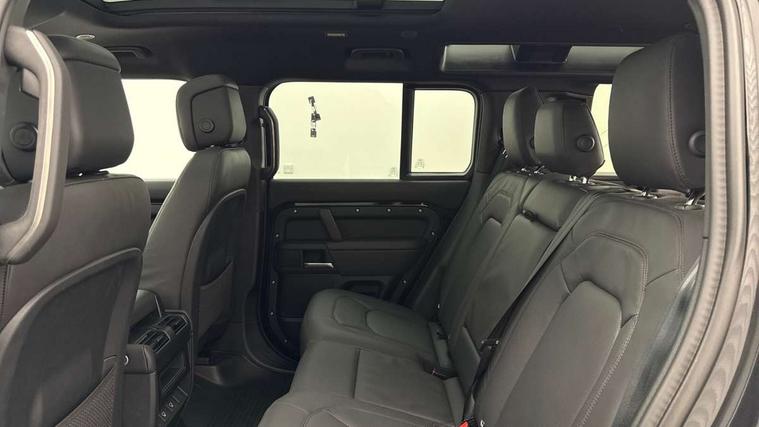 1 x USB-C (power only) & 1 x USB-C (power & data) in Row 1, 2 x USB-C in Row 2, 11.4" touchscreen, 360 degree parking aid, 3D Surround Camera with 360 View, 180 Rear View, Front Traffic Detection, Forward Vehicle Guidance, Tow Hitch Assist and clear sight Ground View, Adaptive cruise control, Android Auto, Apple CarPlay, Blind spot assist, Bluetooth system, Brake pad wear indicator, Clear exit monitor, Connected navigation pro, Driver condition monitor, Electric power assisted steering (EPAS), Interactive driver display, Lane keep assist, Push button start, Rear collision monitor, Rear traffic monitor, Traffic sign recognition with adaptive speed limiter, Trip computer, Wireless device charging, 8 speed automatic transmission, AC/DC charging, Adaptive dynamics, All wheel drive system, Electronic air suspension, Home charging cable mode 2 basic, Public charging cable, Twin speed transfer box, DAB Radio (Digital Audio Broadcasting), Meridian 700w surround sound audio system with 15 speakers, Pivi pro connected, Automatic headlight levelling, Automatic headlights, Black exposed rear recovery eyes, Body coloured bonnet, Centre high mounted stop light, Electric heated/power fold door mirrors with approach lights and auto dimming driver side, Electric windows with one touch open/close and anti-trap, Follow me home lighting, Front fog lights, Heated rear window with timer, Heated windscreen, Illuminated metal treadplates with brand name script, LED tail lights, Matrix LED headlights with signature DRL, Privacy glass, Puddle lights, Rain sensing windscreen wipers, Rear fog lights, Rear side wing doors, Rear wiper, Side hinged tailgate, Sliding panoramic roof, Standard tail door, Trailer stability assist, X-Dynamic badge, 12V power socket in loadspace, 3 seat bench in 2nd row, Alpine lights, Configurable cabin lighting, Durable rubber cabin flooring, Durable rubber loadspace flooring, Electric reach + rake adjustable steering column, Electrically adjustable steering column, Extended leather upgrade, Footwell lights, Front head restraints, Front passenger isofix child seat attachment, Heated steering wheel, Loadspace cover, Loadspace Hook, Multifunction steering wheel, No flat load floor storage, Overhead stowage for sunglasses, Rear headrests, Rear ISOFIX, Rear reading lights, Single front passenger seat, Soft close tail door, Standard seat configuration, Storage glovebox, Sunvisors with illuminated vanity mirrors, Twin front cupholders, Non-smoker package, Online pack with data plan - Defender, 5 x 3 point seatbelts, ABS, Brake hold function, Cornering brake control (CBC), Customer configurable autolock, Driver and passenger airbags, DSC - Dynamic Stability Control, EBD - Electronic brakeforce distribution, Electric parking brake (EPB), Emergency brake assist, Emergency braking, ESP + traction control, Front airbags with passenger seat occupant detector, HDC - Hill descent control, Hill launch assist, Low traction launch, Power operated child locks, Remote for (e-Call, Optimised assistance call, InControl app, Climate, beep and flash and door), RSC - Roll stability control, Seat belt reminder, TPMS (Tyre pressure monitoring system), Alarm, Immobiliser, Intrusion sensor, Keyless entry, Locking wheel nuts, Secure tracker pro,
