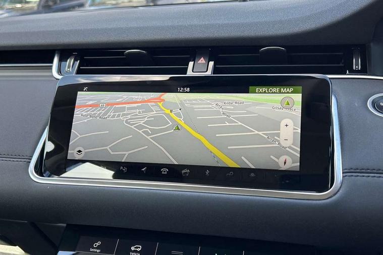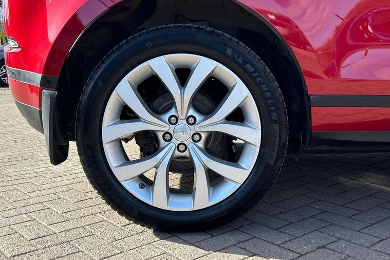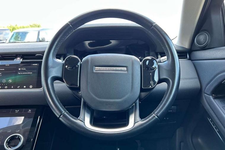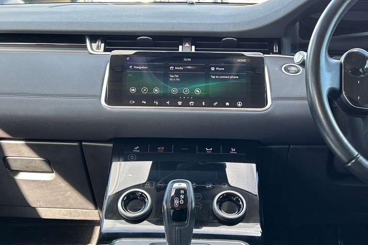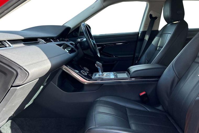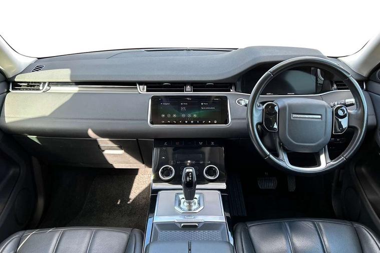 360 degree parking aid, Android Auto, Apple car play, Bluetooth connectivity, Brake pad wear indicator warning light, Clear exit monitor, Driver condition monitor, Duo touch pro, Electronic power assisted steering (EPAS), InControl remote, Interactive Driver display instrument cluster, Land Rover InControl apps, Lane keep assist, Navigation pro system, Park assist - Parallel, perpendicular and parking exit, Pro services and wifi hotspot, Push button starter, Rear traffic monitor, Smart settings, Traffic sign recognition with adaptive speed limiter, Voice control system, All terrain progress control, Efficient Driveline, Passive suspension, Terrain Response 2 Auto, Digital Audio Broadcast radio-DAB, Steering wheel mounted controls, Automatic headlight levelling, Electric windows with one touch open/close and anti trap, Evoque badge, Flush deployable exterior door handles, Heated rear window with timer, Heated washer jets, Heated windscreen, Power fold, auto-dimming, heated door mirrors with memory and approach lights, Rain sensing windscreen wipers, Rear fog lights, Tailgate spoiler, 40:20:40 split folding rear seats, Isofix system on outer rear seats, Overhead lighting console, Overhead stowage for sunglasses, Passive front head restraints, Rear air vents, Rear centre headrest, Sunvisors with illuminated vanity mirrors, Twin front cupholders with cover, Twin sliding front centre armrest, 3 rear 3 point seatbelts, Anti-lock braking system (ABS), Customer configurable autolock, DSC - Dynamic Stability Control, Electronic brake force distribution, Electronic parking brake, Electronic traction control, Front and rear seatbelt reminder, Hill descent control, Hill launch assist, Low traction launch, Power operated child locks, Roll stability control, Six airbags - Driver and passenger airbags/driver knee airbag/front side airbag and curtain airbags, Torque vectoring brake, Tyre pressure monitoring system, Alarm, Immobiliser, Intrusion sensor, Locking wheel nuts,