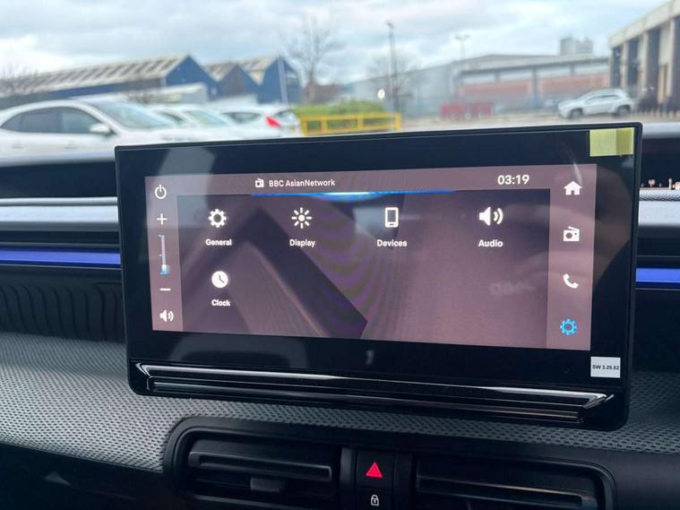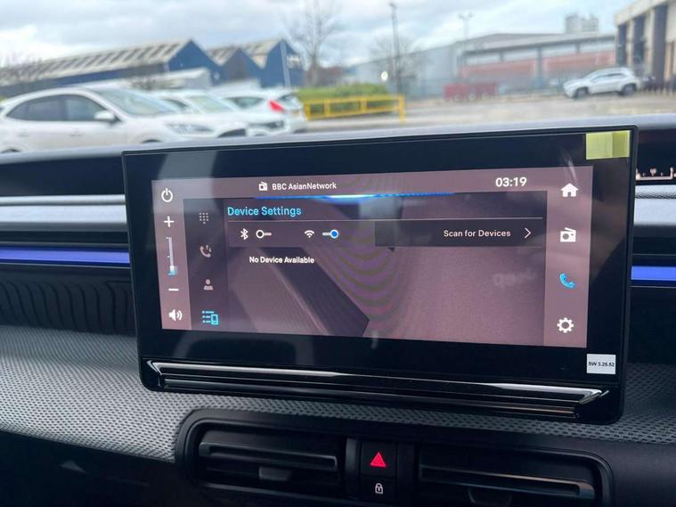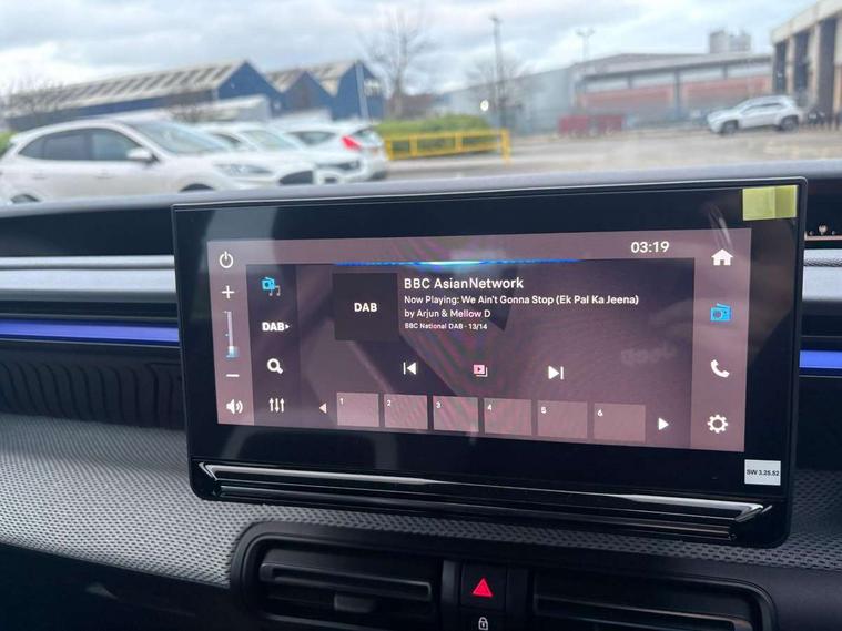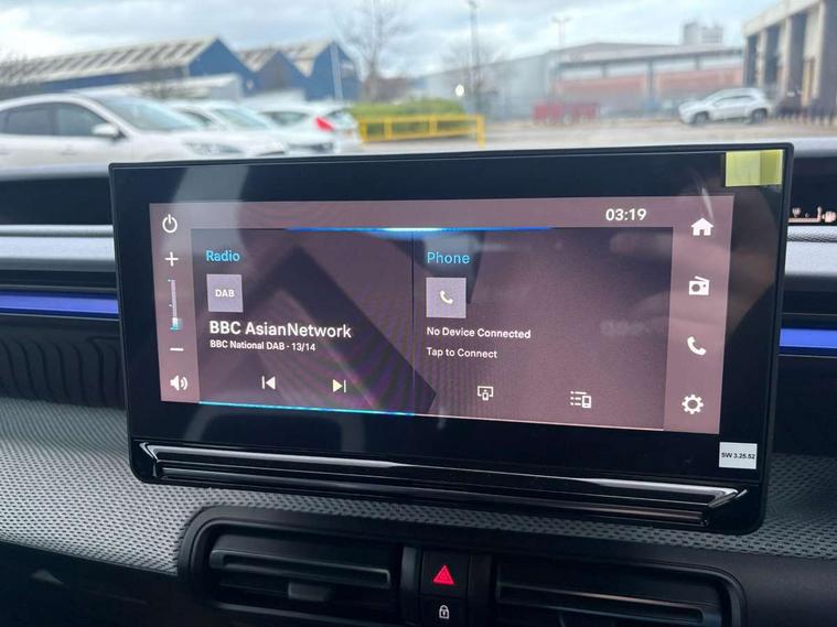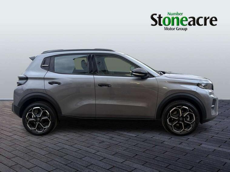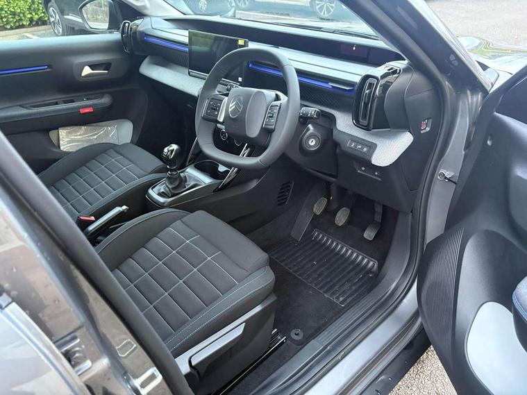 1x USB-C connection on dashboard, 1x USB-C fast charge in row 2, Active lane departure warning system, Citroen connect box emergency and assistance system, Connected services, Cruise control + speed limiter, eCall emergency call system, Electric power steering, Exterior temperature display, Head up Display, Manual gearshift indicator, Multi function trip computer, Rear parking sensors, Advanced comfort suspension with progressive hydraulic cushions, DAB digital radio, 6 loudspeakers, 10.25" capacitive touchscreen, wireless mirror screen includes apple carplay/android auto and bluetooth, 3D rear light signature, Automatic activation of hazard warning lights, Automatic headlights, Black roof bars, Black wheel arch extensions, Body colour bumpers, Electric front power windows with auto up/down for the driver and auto down for passenger, Electric rear power windows, Electrically heated, folding and adjustable external rear view mirrors, Front and rear skid plates in grey, Front intermittent wipers, Gloss black exterior door handles, Gloss black finish B and C pillar, Gloss black rear view mirror caps, Heated rear window, Intelligent beam headlights, LED daytime running lights, LED headlights with electric levelling, LED third brake light, Rear roof spoiler, Rear side wing doors, Standard day night switchable interior rear view mirror, Tinted side windows, Turn indicators integrated into rear view mirrors, 1 litre bottle storage in front and rear door pockets, 1/3 to 2/3 split folding rear seat, 12V socket on console, 4x anchoring rings on boot, Advanced comfort front and rear seats, Bag support hook in boot, Central storage with 2 cupholders, Chrome effect interior door handles, Closed glove box, Cloth upholstery, Driver and passenger's sun visor with courtesy mirror, Driver's seat height adjustment, Fixed boot light, Front seats adjustable with forward back slide and adjustable backrest, Height adjustable front head restraints, Height/reach adjust steering wheel, ISOFIX mounting on outer rear seats with top tether and labels indicating fixing points, Leather effect steering wheel with gloss black and chrome elements and integrated audio/telephone/cruise control/speed limit controls, LED front lighting panel with map reading lights, Manual air conditioning, Map pockets in back of driver and front passenger seats with additional pocket for smartphone storage, Matt black gear knob with gloss black insert, Padded fabric armrests in front and rear doors with labels, Parcel shelf, Seatbelt unfastened on the move audible and visual alert for front and rear seats, Single front passenger seat, Three rear headrests, Safety pack - C3 Plus and Max, Visibility pack - C3 Plus and Max, ABS, Child locks on rear doors, Driver and front passenger seatbelts with pyrotechnic pretensioners and force limiters, Driver's airbag, ESP with anti skid system, Front passenger airbag, Front passenger airbag deactivation, Front side airbags + front/rear curtain airbags, Hill start assist, Manual parking brake, Mono-tone horn, Three rear 3-point seatbelts, Tyre pressure monitoring system, Automatic door and boot locking when moving off with automatic unlocking in case of impact, Central locking with deadlocks, Connected anti theft alarm (Volumetric and perimetric with tilt sensor), Immobiliser, Remote control central locking with 1x plip key and 1x non plip key, 2 side air vents and 2 central air vents on dashboard, Grey decor on dasbhboard, Grey decor on front doors, 17" Atacamite diamond cut bi-tone alloy wheels with locking wheel nuts,