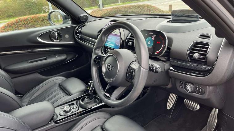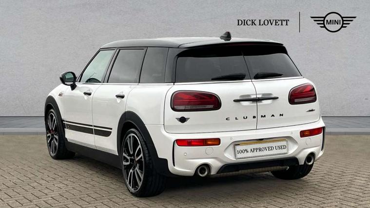 Active Guard incl speed limiting and lane departure functions with auto steering, and front collision warning with brake intervention, Automatic start/stop function with brake energy recuperation, Car sharing preparation, Compatible mobile phone bluetooth with audio streaming, Electro-mechanical speed dependant steering assistance, Instrument cluster, Mini E-call, MINI TeleServices, On board computer, 8 Speed steptronic sport transmission including electronic gear shifter and steering wheel paddles, All Wheel Drive (AWD), Double Vanos system, Fully variable valve control, High precision injection, Performance Control, FM tuner and DAB digital radio, Bonnet scoop, Chrome fuel filler cap, Dynamic brake lights, Electric windows, Heated rear window, Heated windscreen washer jets, John Cooper Works - aerodynamic kit (front and rear apron, spoiler), front and rear sport bumpers and part-painted side sills with door sill finishers, John Cooper Works entry sills, John Cooper Works rear spoiler, LED rear light with union jack design, Metal door sill strips with Cooper S imprint, Model logo on rear doors, Piano black exterior, Radiator grille piano black border with honeycomb structure in matt black with John Cooper Works logo above an individual grille struct in chilli red, Rain sensor with auto headlights, Rear fog lights, Rear side wing doors, Rear window wiper, Rear wing door, Side scuttle with MINI John Cooper Works logo in high gloss black with red border, Split rear doors, Sun/heat protection glass, Third brake light, Twin exhaust tailpipe, Variable front intermittent wipers, White indicator lenses, 12V Accessory socket in centre console, 3 seat bench in 2nd row, 360L luggage compartment capacity, 4 lashing eyes in luggage compartment, 60/40 split folding rear seat, Anthracite headlining with grab handles and clothes hooks, Chrome interior highlights, Cupholders, English handbook, Floor mats, Glove compartment, Height and length steering column adjustment, Interior lighting with 12 basic colours selectable via toggle switch in roof, Isofix rear child seat preparation, John Cooper Works leather gearshift lever and handbrake gaiter, John Cooper Works sports seat with integrated headrest, adjustable thigh support and John Cooper Works logo, LED reading lights, vanity mirror lights, front foot well light and spotlight on front seats, Multifunction steering wheel, Nappa leather steering wheel with JCW badge, Paddle shifts, Rubberised stainless steel pedals, Single front passenger seat, Storage compartments in doors, Sunvisors with vanity mirrors, Toolkit, Comfort plus pack with Park assist - Mini Clubman, Excitement pack - Clubman, Extended interior lighting pack - Mini Clubman, Navigation pack - Clubman, 17" front sport brake with 4 piston fixed calliper, 2 tone horn, 3 point seatbelts on all seats, 6 Airbags - front, side, head and seat belt tensioners, Anti-lock braking system (ABS), Child locks on rear doors, DSC - Dynamic Stability Control, Electronic handbrake, Front and rear disc brakes, Red brake callipers with John Cooper Works logo, Torsen mechanical limited slip differential, Tyre pressure monitoring system, Alarm system with tilt sensor, monitoring doors, bonnet interior and tailgate, Auto drive away locking, Comfort access system, Deadlocking function, Electronic vehicle immobiliser, Locking wheel bolts, Remote central locking, Start/stop toggle with keyless go,