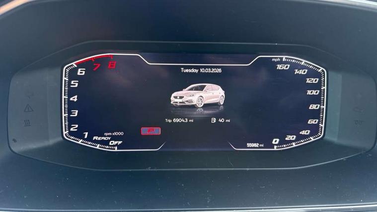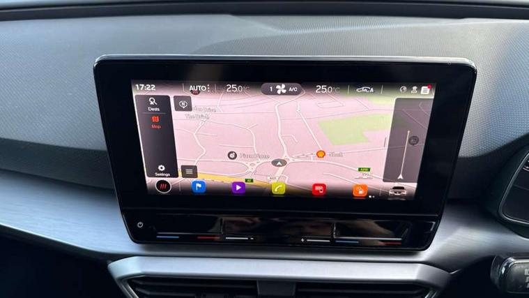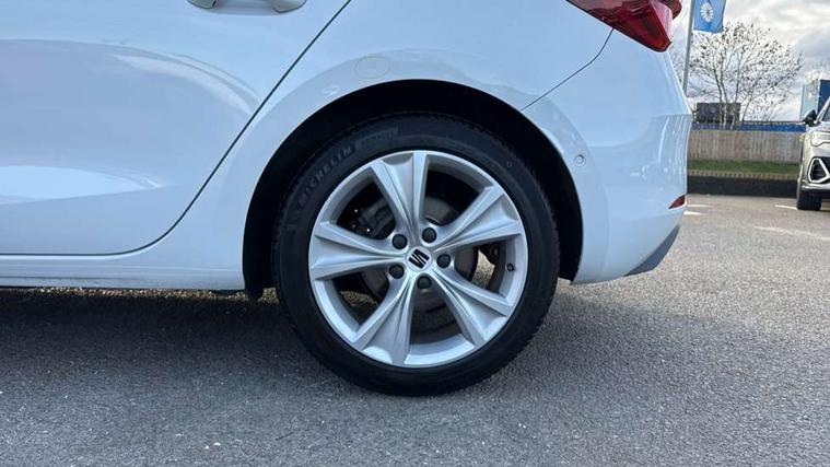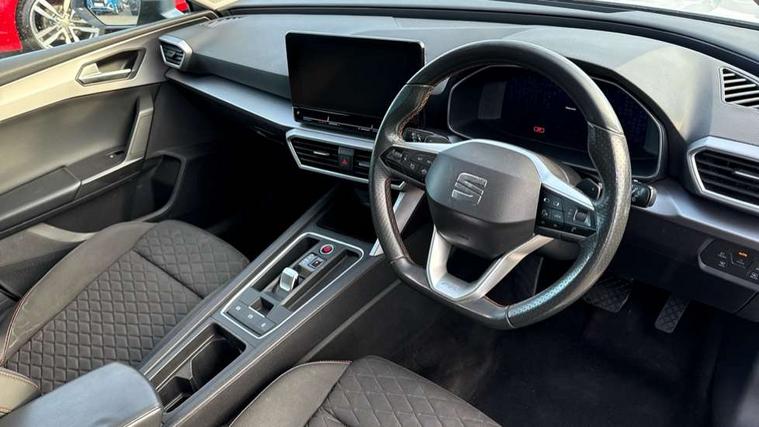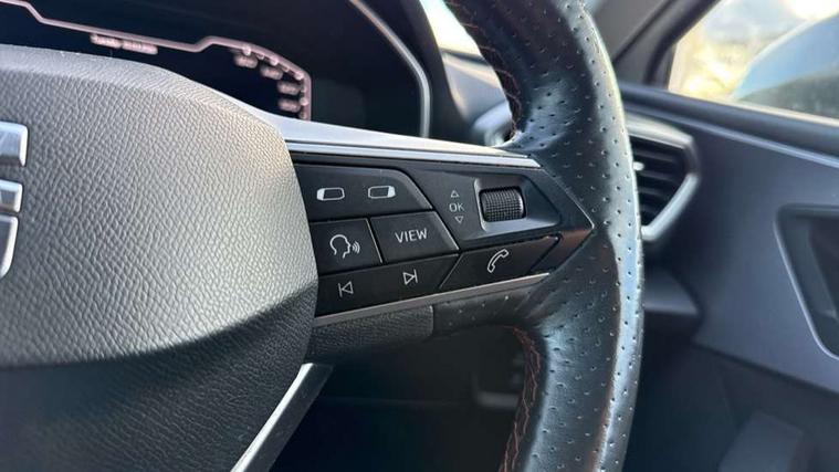 Digital cockpit, Front assist with forward collision warning braking reaction to vehicles, pedestrians and cyclists, Full link smartphone integration with Mirror Link, wireless Apple CarPlay and wired Google Android Auto, Lane keeping system, Lockable tailgate, Park assist (inc front/rear parking sensors), Power assisted speed sensitive electro-mechanical steering, RPM, trip computer, outside temp gauge, instrument light brightness, low fuel warning light, lights on reminder, gearshift indicator, SEAT drive profile with 4 modes (Eco/Normal/Sport/Individual), throttle response and gearshift mode, Service interval indicator, Start/stop system with regenerative braking, Sports suspension, XDS electronic differential lock and dynamic traction support, Auxiliary input socket, Auto dimming rear view mirror, Body colour door handles, Body coloured bumpers, Cosmo grey exterior mirrors with integrated LED indicators, Dark tinted rear windows, Electric front/rear windows, Electrically adjustable, heated and folding door mirrors, FR sports bumper, Illuminated front door sill, LED front fog lamps with cornering function, LED headlights and tail lights with dynamic turn signals, welcome light silhouette from exterior mirrors and dynamic headlight range control, LED rear fog lamp, Rain sensing wipers, Rear wash/wipe, Separate daytime running light with automatic headlight control and coming home feature, 12v power point in centre console, 60/40 split rear bench seat with armrest, Ambient lighting in door trim, Cloth upholstery, Driver/passenger manual seat height adjustment, Dust/pollen filter, Folding boot cover, Front and rear height adjustable headrests, Front and rear reading lights X 4, Front centre armrest, Front seatback storage pockets, Height/reach adjust steering wheel, Interior lighting with LED lighting in sunvisor, glovebox and rear headlining, ISOFIX points in outer rear seats with top tether anchorage points, Luggage tie-down hooks, Lumbar adjustment for front seats, Sunvisors with covered illuminated mirror, Three zone climate control, Media system plus with navigation - Leon, 3 point seatbelts on all rear seats, ABS, Brake control system - ESC and brake booster, Child proof door locks, Driver and front passenger airbags with front passenger airbag de-activation, front side and curtain airbags, Electronic parking brake, Extended safety system - seat belt tensioner, window closure and hazard lights, Hill hold control, Rear disc brakes, Seat belt reminder for front and rear seats, Tiredness recognition system, driver alert system, Tyre pressure monitoring system, Anti theft alarm system with interior monitoring in cab, backup horn and towing protection, KESSY Go (Keyless start), Locking wheel bolts, Wireless phone charging, Chrome interior detailing, 17" Dynamic Bi-spoke alloy wheels with 91W tyres, Tool kit,