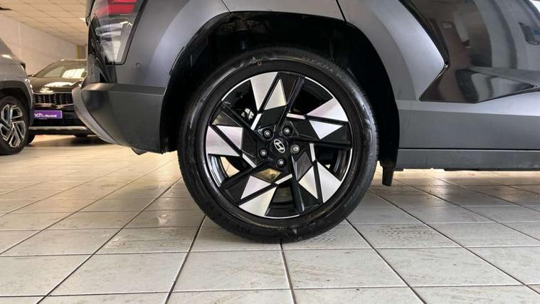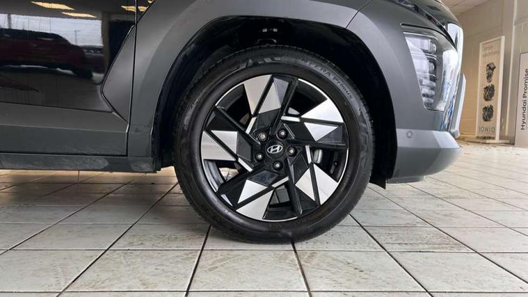 12.25" digital instrument cluster, 12.3" touchscreen centre console display satellite navigation with bluelink, live services and mapcare, Blind spot collision avoidance assist, Blind spot view monitor, Bluetooth connectivity with voice recognition, Cruise control, Driver status monitor (DSM), Driver supervision instrument cluster with 12.3" LCD display, eCall emergency call system, Feature on demand - Enabled, Forward collision avoidance assist (FCA 1.5) - Car, pededstrian, cycle and junction turning, Front parking sensor, Height adjustable power tailgate, Intelligent speed limit assist, Lane follow assist, Lane keep assist, Leading vehicle departure alert (LVDA), Parking Collision Avoidance Assist-Reverse (PCA-R), Parking distance warning - side, Parking system with rear camera and guidance system, PAS, Rear cross traffic collision avoidance (RCCA), Rear parking sensor, Rear view camera with dynamic guidelines, Roadside assistance, Safe exit warning (SEW), Surround view monitor, Wireless phone charging pad, Wireless Smartphone Integration includes Apple CarPlay and Android auto, 2 front USB C and 2 rear USB C charging points, Bose Premium Audio system with 7 premium speakers + subwoofer, DAB Digital radio, Steering wheel audio, phone and cruise controls, Auto dimming rear view mirror, Automatic headlights with dusk sensor, Automatic windscreen wipers with rain sensor, Black painted wheel arch inserts, Body colour exterior door handles, Body coloured door mirrors, Door mirror LED indicator lights, Electric front windows with anti-trap mechanism and one touch control, Electric rear windows, Electric sunroof, Electrically adjustable and heated door mirrors, Horizon centre LED DRL, LED projector headlights, LED taillights, LED upper and lower rear lights, Power folding door mirrors, Privacy glass - Rear windows and tailgate, Rain sensor, Rear roof spoiler with integrated LED brake light, Rear side wing doors, Rear skid plate - silver, Rear wiper, Roof rails, Solar glass with front door glass and windscreen, Tinted glass in front and rear doors, Windscreen auto defog function, 12V power outlet in front console, 2 zone climate control, 3 seat bench in 2nd row, 40/20/40 split folding rear seat, Adjustable head restraints, Ambient lighting, Driver and passenger front seat pockets, Driver's seat electric adjustments, Driver's seat lumbar support, Driver/passenger sunvisors and illuminated vanity mirrors, Floor mats, Front passenger's seat electric adjustments, Heated front seats, Heated rear seats, Heated steering wheel, Height/reach adjustable steering column, Leather steering wheel, Leather upholstery, Leather wrapped steering wheel and gear knob, LED centre interior light, LED front interior light, Luggage compartment LED lighting, Luggage net, Luggage shelf, Metal paint effect interior door handles, Rear centre armrest with cupholders, Single front passenger seat, Ventilated front seats, Vertical adjustment rear head restraints, Trailer wiring package - Kona, Airbag - front, front side, curtain and centre front airbag, Anti-lock brake system (ABS), Childproof rear door locks, Downhill brake control, Electric parking brake, Electronic stability control, Fixed 3 point for second row centre passenger seatbelt, Hill start assist control (HAC), Rear seat alert, Tyre pressure monitoring system, Alarm/immobiliser, Rear occupant alert, Remote central locking, Smart key with keyless entry and start/stop button, Five year annual vehicle health checks, 18" Alloy wheels, Temporary mobility kit (TMK),