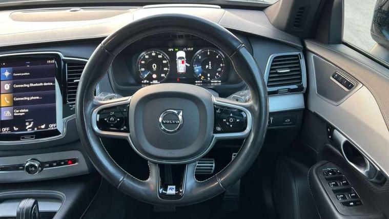 12.3" Active TFT crystal driver's instrument display, 9" centre console portrait touch screen, Adjustable steering wheel force, Bluetooth hands free telephone connection, Drive mode settings, Driver alert control with lane keeping aid, Front and rear park assist, Handsfree power tailgate opening and closing, Intellisafe assist - Adaptive cruise control with pilot assist, Oncoming Lane Mitigation, Sensus navigation with European mapping and traffic information, Service interval indicator, Speed limiter, Speed sensitive steering, Trip computer, Voice activated control for key functions, Volvo on call, Wireless internet connection, 8 speed automatic transmission with start/stop + manual change functions, Active four C chassis - four corner adaptive dampers with electronic air suspension, All wheel drive system, Touring chassis, DAB Radio (Digital Audio Broadcasting), Steering wheel audio controls, Steering wheel remote infotainment controls, Active bending headlights with adaptive shadow technology, Adaptive brake lights with high level LED brake lights, Auto dimming interior + exterior mirrors, Automatic headlight levelling system, Automatic LED Headlights + Active high beam incorporating daytime running lights, Body colour bumpers, Colour coordinated auto folding and heated power door mirrors, Dark tinted windows for rear side windows and cargo area, Dual integrated exhaust pipes with high gloss black surround, Front and rear power windows, Front LED fog lights with cornering function, High gloss black Deco lower front bumper, High gloss black door mirrors, High gloss black mesh front grille with silk metal surround, High gloss black window surround, Home safe and approach lighting, Integrated roof rails in high gloss black, Puddle lights, Rain sensor with automatic windscreen wiper activation, Rear wash/wipe with intermittent wipe setting, Roof antenna, Roof spoiler, Visible VIN plate, 2nd Row centre armrest with storage and cupholders, 3 spoke leather steering wheel and illuminated gear knob with chrome trim, A-pillar parking ticket holder, Ambient door and instrument panel lighting, B Pillar ventilation, Bright metal luggage threshold, Cargo divider with grocery bag holder, Centre console cupholders and storage, Driver's side lower dashboard storage compartment, Front and rear door pocket and front cupholder illumination, Front and rear reading lights, multi-colour theatre lighting and centre armrest storage illumination, Front footwell and side step illumination, Front headrests, Front seat cushion extensions, Heated front seats, Height/reach adjustable steering column, Illuminated front and rear R-Design tread plates, Illuminated luggage compartment, Illuminated tailgate, Illuminated vanity mirrors + ticket holder, Illumination lockable glovebox compartment, Isofix outer rear child seat preparation in 2nd row, Load protection net, Nappa Leather Key Integrated Remote, Outboard armrest with cupholder and storage for third row passengers, Passenger seat electric height adjuster, Power driver seat with multi directional lumbar support and memory for seat and exterior mirrors, Rear footwell and side step illumination, Rear headrests, Semi automatic load cover, Sports floor mats, Sports leather gear knob, Sports pedals, Sports steering wheel with gear shift paddles, Three 2nd row individual folding passenger seats with fore/aft adjustment, Two 3rd row individual folding passenger seats, Underfloor cargo storage, 7 three point seatbelts, City safety includes pedestrian, cyclist and large animal detection and front collision warning with full auto brake, Drivers knee airbag, Dual stage driver/passenger airbags, First aid kit, Front and rear curtain airbags, Front seat side impact airbags, Front seats SIPS airbags, Hill descent control, Hill start assist, IC (Inflatable Curtains) - Full Length, Passenger airbag cut-off switch, Power parking brake with auto hold function, Road sign information display, Run off Road Mitigation, Run off Road Protection, Seatbelt reminder and pretensioners for all seats, SIPS (Side Impact Protection System), Slippery road and hazard light alert, Stability and Traction Control with Spin control, Engine Drag Control and Corner Traction Control, Tyre pressure monitoring system, Vehicle deceleration control with Anti-lock Brake System, Electronic Brake Distribution and Emergency Brake Assist, Warning triangle, WHIPS whiplash protection system - front, Anti-theft alarm including immobiliser/volume sensor + level sensor, Key integrated remote control central locking + fuel flap with deadlocking system and auto open/close power windows, Keyless drive (includes keyless entry and keyless start) with remote tag, Locking wheel nuts, Private locking for glovebox and tailgate, Tailored Instrument Panel and Door Tops with Contrast Stitching, Tempa spare wheel and jack,