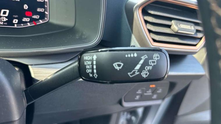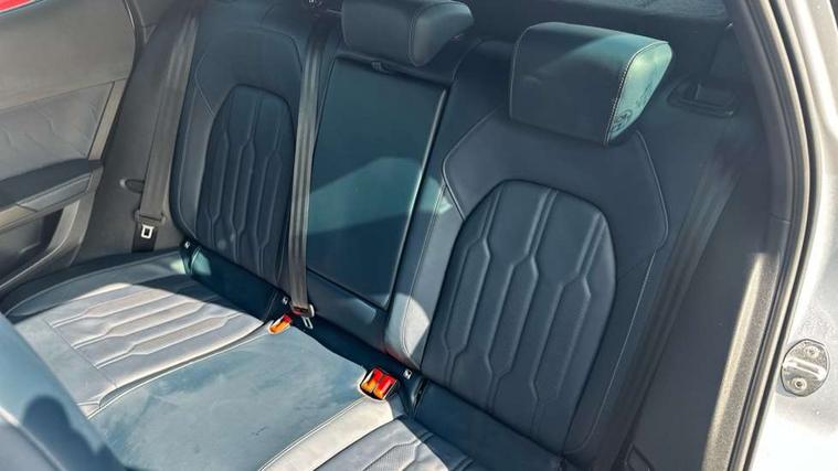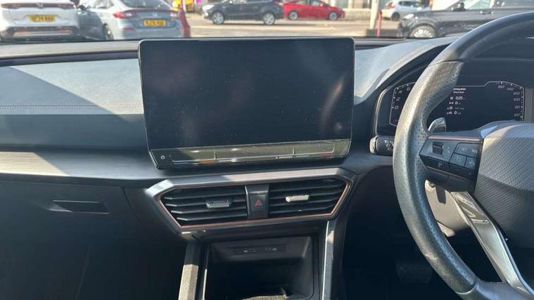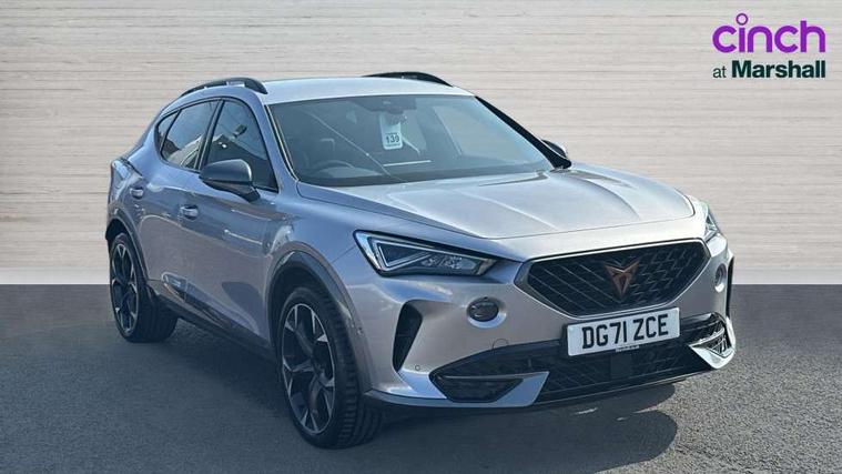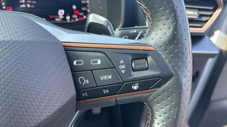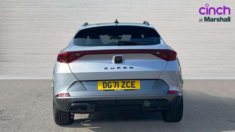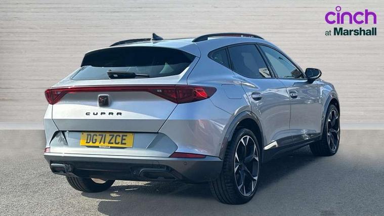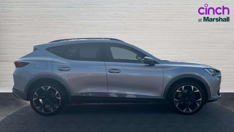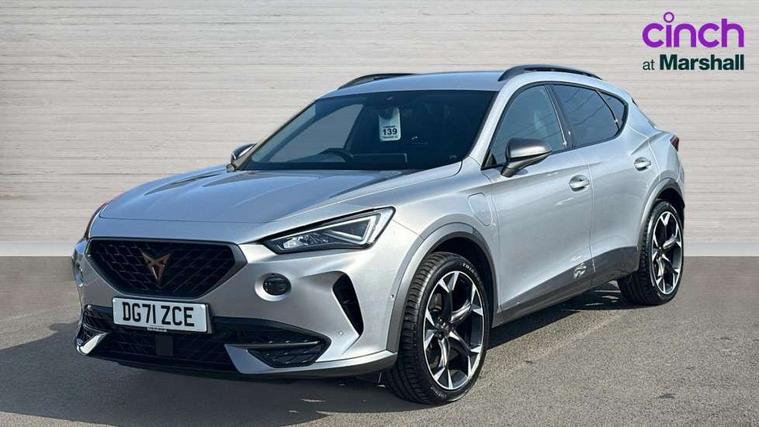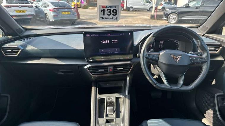 Digital cockpit and configurable dashboard, Driver alert system, Driving profile selection, Forward collision warning with automatic braking, Lane assist, Park assist (inc front/rear parking sensors), PAS, Predictive adaptive cruise control with speed limiter, Rear view camera, RPM, trip computer, outside temp gauge, instrument light brightness, low fuel warning light, lights on reminder, gearshift indicator, Service interval indicator, Start/stop system with regenerative braking, Wireless apple carplay, Wireless phone charger, 10 amp mode 2 charging cable, 16 amp mode 3 charging cable, 3.6 kw On-board charger, Electronic locking differential and dynamic traction support, Standard suspension, 2 front and 2 rear USB type C sockets, 6 speakers, DAB radio, Auto dimming rear view mirror, Body colour door handles, Body coloured bumpers, Dark grey wing mirror, Daytime running light with automatic headlight control and coming home feature, Dynamic headlight range control, Electric front/rear windows, Electrically adjustable heated and folding door mirrors with memory function, Front fog lamps with cornering function, Gloss black roof rails and window surrounds, LED Headlights, LED Taillights with dynamic indicator, Rain sensing wipers, Rear diffuser with black simulated exhaust pipes, Rear wash/wipe, Tinted rear windows, Welcome lights, 12V socket, 2 front and 2 rear reading lights, 60/40 split rear bench seat with armrest and mechanical seat release, Dust/pollen filter, Front and rear head restraints, Front centre armrest, Height/reach adjust steering wheel, Illuminated interior front door sills, Illuminated sunvisor with mirror, Isofix, Leather multi function heated steering wheel with gear shift paddles, Three zone climate control with control panel in rear, Wraparound lighting, Genuine Nappa leather Pack - Cupra, Navigation system pack - Formentor, 3 point seatbelts on all rear seats, ABS, Brake control system - ESC and brake booster, Child proof door locks, Driver and front passenger airbags with front passenger airbag de-activation, Electronic parking brake, Front and rear disc brakes, Front side curtain airbags, Hill hold control, Seat belt reminder for front and rear seats, Tyre pressure monitoring system, Anti theft alarm system, Keyless entry and start system (KESSY), Locking wheel bolts, Copper and aluminium interior detailing, 19" 'Exclusive' machined sport matte black and silver alloy wheels, Tyre repair kit,