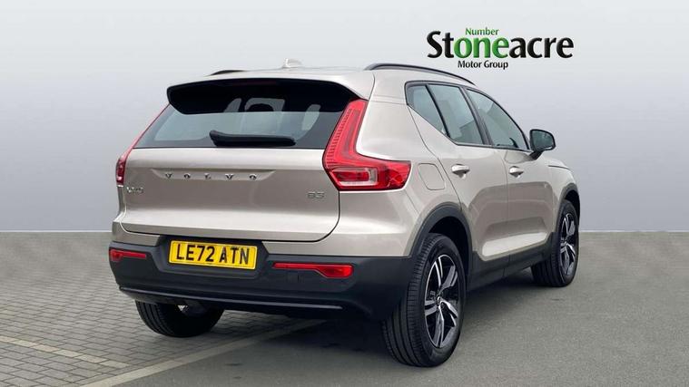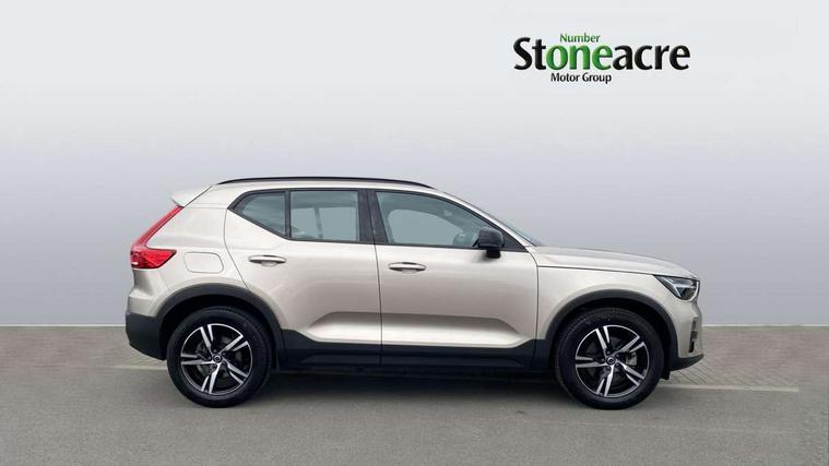 12.3" Progressive Driver Display, 9" centre console portrait touch screen, Adjustable steering wheel force, Bluetooth hands free telephone kit, Cruise control, Driver awareness - blind spot information system with steer assist, cross traffic alert with autobrake, rear collision warning and migitation, E-call, Front park assist, Google automatic services - Nav with google maps, apple carplay/android auto, voice recognition with google assistant, Hands free power tailgate, Lane keep assist with driver alert control, Oncoming Lane Mitigation, Rear park assist, Rear park assist camera, Speed limiter, Speed sensitive steering, Wireless/Inductive Mobile Phone Charging, Dynamic chassis, DAB Digital radio, High performance sound, 8 speakers/250W, front USB and 2 rear type C USB, Steering wheel mounted remote controls, Adaptive brake lights with high level LED brake lights, Auto dimming feature for exterior door mirrors, Auto dimming interior mirror, Automatic headlamp levelling, Automatic LED Headlights + Active high beam incorporating daytime running lights, Front aluminium tread plates, Front and rear electric windows, High gloss black front and rear skid plate, High gloss black mesh front grille with high gloss black surround, High gloss black window trim, Home safe and approach lighting, Integrated roof rails in high gloss black, LED front fog lights, Puddle lights, Rain sensor with automatic windscreen wiper activation, Rear side wing doors, Rear wiper, Roof antenna, Roof spoiler, Visible VIN plate, 12V socket in front tunnel console and luggage compartment, 2-Zone electronic climate control with CleanZone air quality system and pollen filter, 3 seat bench in 2nd row, 3 Spoke tailored steering wheel with chrome trim, 60/40 versatile split folding rear seat, A-pillar parking ticket holder, Ambient front door and instrumental panel lighting, Centre console cupholders and storage, Flexible load floor and grocery bag holder, Floor mats, Front door pocket and front cupholder illumination, Front footwell illumination, Front headrests, Front reading light and theatre lighting, Front seat cushion extensions, Front tunnel pocket, Glovebox bag hook, Heated front seats, Height adjustable passenger seat, Height/reach adjustable steering column, High gloss centre tunnel deco, Illuminated glovebox, Illuminated luggage compartment, Illuminated tailgate, Illuminated vanity mirrors, Integrated waste bin, Isofix attachments on outer rear seats, Load protection net, Multi directional lumbar support, Power driver seat with memory + exterior mirrors memory, Rear armrest / integral cup holders / storage tray, Rear headrests, Rear reading and courtesy lights, Single front passenger seat, Underfloor cargo storage, Climate pack without heated front seats - XC40, 3x3 point rear seatbelts, City safety with steering support with Pedestrian + cyclist + front collision warning with full auto brake and rear auto brake, Drivers knee airbag, Dual stage driver/passenger airbags, Electronic parking brake with auto hold, First aid kit, Front and outer rear seatbelt reminder and pretensioners, Front seats SIPS airbags, Hill descent control, Hill start assist, Inflatable curtain, Passenger airbag cut-off device, Power child locks on rear doors, Road sign information display, Run off Road Mitigation, Run off Road Protection, SIPS (Side Impact Protection System), Slippery road and hazard light alert, Stability and Traction Control with Spin control, Engine Drag Control and Corner Traction Control, Tyre pressure monitoring system, Vehicle deceleration control with Anti-lock Brake System, Electronic Brake Distribution and Emergency Brake Assist, Warning triangle, WHIPS whiplash protection system - front, Anti-theft alarm including immobiliser/volume sensor + level sensor, Key integrated remote control central locking + fuel flap with deadlocking system and auto open/close power windows, Keyless drive includes keyless entry and keyless start, Locking wheel nuts,