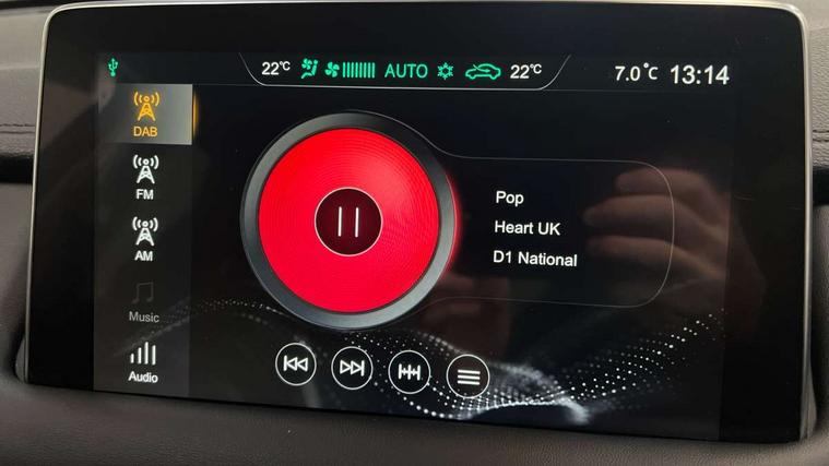 10.1" colour touchscreen, 12.3" Full digital driver information display, Adaptive cruise control, Android Auto, Apple CarPlay, Blind Spot Detection (BAS), Bluetooth connectivity, Driving modes, Emergency call service, Intelligent speed assist, Lane keep assist system (LAS) with Lane departure warning system (LDWS), PAS, Power tailgate, Rear cross traffic alert, Rear parking camera, Rear parking sensors, Satellite navigation system, Tailgate, Traffic jam assist, Trip computer, USB mobile phone charging function, 6 speaker audio system, DAB audio, Auto dimming rear view mirror, Automatic headlights, Body colour electric adjustable heated door mirrors, Electric folding door mirrors, Follow me home headlights, Front and rear aero wiper, Front and rear electric windows with one-touch up/down, Front fog lights, Intelligent high beam, LED Bi-Function headlights, LED centre brake light, LED daytime running lights, LED front and rear sequential indicators, Rain sensing wipers, Rear privacy glass, Rear side wing doors, Silver roof rails, 12V power sockets, 2nd row 60/40 split fold seat, 2nd row seat with 2 stage incline adjustment, 3 rear headrests, 3 seat bench in 2nd row, 4 way electric adjustable passenger seat, 6 way electric adjustable drivers seat + lumbar support, Ambient lighting (adjustable colour), Dual zone automatic air conditioning, Front centre sliding armrest with storage compartment, Front headrests, Heated front seats, Height and reach adjustable steering wheel, ISOFIX restraints on outer rear seats x2, Leather steering wheel, Metal sports pedals, Single passenger seat, Sports Style Front Seats with One-Piece Back, Steering wheel paddle shift, 3x3 point rear seatbelts, ABS/EBD, Active emergency braking with pedestrian/Bicycle detection, Anti rolling protection, Cornering brake control (CBC), Drivers seatbelt reminder, Dual front airbags, Electric parking brake with auto hold function, ESP, Front and rear passenger seat belt reminder, Front passenger airbag deactivation switch, Front seat belt height adjuster, Front seatbelts (3-point + pretensioner + load limiter), Front side airbags, Hill descent control, Hill launch assist, Manual rear child locks, Rear outer seatbelt pretensioner and load limiter, Side curtain airbags, Tyre pressure monitoring system, Alarm system and engine immobiliser, Keyless entry and push button start system, Remote central locking, Speed sensing door locks, 18" Hurricane diamond cut alloy wheels, Tyre repair kit,