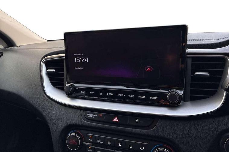 10.25" touchscreen satellite navigation with telematics, 4.2" supervision colour cluster display, Android auto with voice control, Apple car play with voice control, Bluetooth with Voice Recognition & Music Streaming, Cruise control + speed limiter, Driver attention warning, Emergency call service, Forward Collision-Avoidance Assist (FCA) - City/Pedestrian/Cyclist, Lane Following Assist (LFA), Lane keep assist, Motor driven power steering, Rear parking sensor, Reversing camera with dynamic guide lines, Tailgate, Trip computer, Intelligent Stop and Go, 1x Rear USB-C, 2x Front USB (1x USB-C, 1x USB-A), 7 speakers, DAB Radio with MP3, Rear console USB C-type charge port, Steering wheel mounted controls, All-round Electric Windows with Auto Up & Down Function, Auto dimming rear view mirror, Automatic defog system, Automatic headlights, Black side sill mouldings with chrome inserts, Black wheel arch trim, Body colour bumpers, Body colour exterior door handles, Body colour rear spoiler, Body coloured door mirrors with matt black lower housing, Body coloured shark fin antenna, Electrically folding, adjustable and heated door mirrors with integrated LED indicator lights, Heated rear window with timer, High beam assist, High glossy black and satin chrome rear skid plate, LED Bi-Function projection headlights, LED daytime running lights, LED front fog lights, LED High-mounted Brake Light, LED rear fog light, LED rear lights, Matt black and satin chrome radiator grille, Privacy glass - Rear windows and tailgate, Rain sensing front wipers, Rear side wing doors, Rear wiper, Satin chrome window surround, Silver roof rails, Smaller XCeed badge on rear left hand tailgate, Tinted glass, Variable front intermittent wipers, Wide view drivers door mirror, Windscreen Washer Level Warning, 3 seat bench in 2nd row, 60/40 split folding rear seat, All-round height adjustable headrests, Centre Console with Storage Box and Sliding Armrest, Chrome interior door handles, Cloth/faux leather upholstery, Cupholders in centre console, Driver + front passenger electric lumbar support, Driver and passenger front seat pockets, Driver's seat height adjuster, Dual zone automatic air conditioning, Faux leather door trim, Front and luggage area 12V power sockets, Front and rear door storage, Front cabin map light with sunglasses case, Front Passenger Seat Height Adjuster, Heated front seats, Heated steering wheel, Illuminated driver and front passenger sunvisors with vanity mirror, ISOFIX Child seat top tethers and anchor fixings, Leather steering wheel, Luggage area light, Luggage area parcel shelf, Luggage hooks, Rear cabin light, Rear centre armrest with cupholders, Single front passenger seat, Tilt/telescopic adjustable steering wheel, ABS with Electronic Brakeforce Distribution (EBD) and Brake Assist System (BAS), All round 3-point seatbelts, Dual horn, Electronic parking brake, Electronic stability control (ESC) and vehicle stability management (VSM), Front passenger airbag cut off switch, Height adjustable front seatbelts, Hill start assist control (HAC), Impact sensing auto door unlocking, Rear door child safety locks, Seatbelt reminder warning, Traction control, Twin curtain airbags, Twin front airbags, Twin front side airbags, Tyre pressure monitoring system, Alarm system, Engine Immobiliser & Deadlocks, Locking wheel nuts, Smart key with engine start/stop button, 18" Alloy wheels, Tyre mobility kit,
