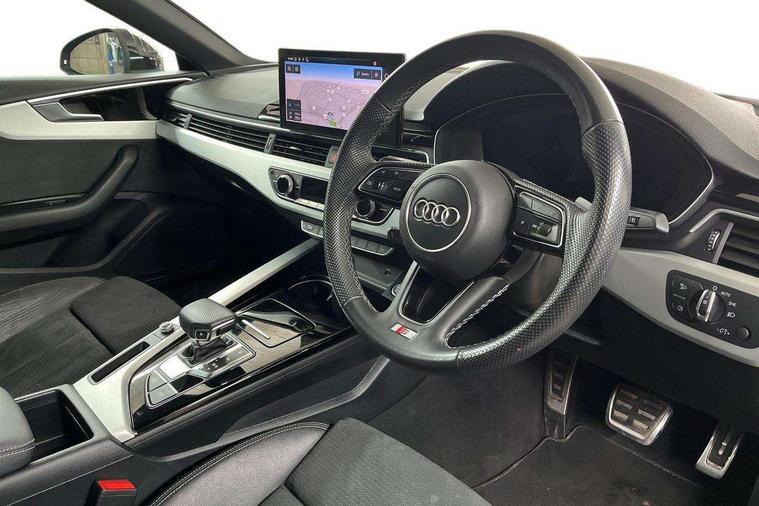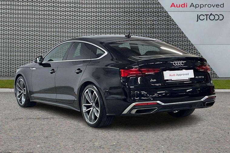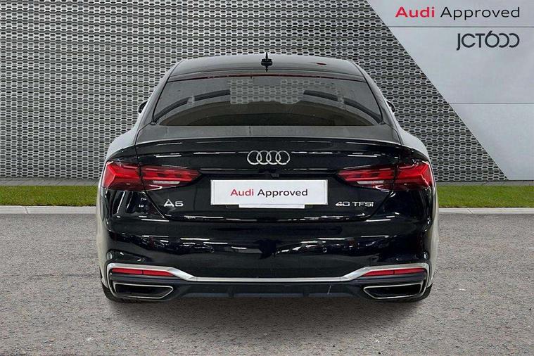 Audi connect safety and service (e-call), Audi connect with Amazon Alexa Integration, Audi drive select (Auto, Comfort, Dynamic, Efficiency and Individual), Audi parking system plus with front and rear sensors, Audi smartphone interface, Audi virtual cockpit - 12.3" full colour digital instrument cluster, vehicle/engine speed, Radio/media information+Driver assistance systems, Automatic start-stop system with coasting functionality and efficiency programme, Bluetooth interface, Electro-mechanical power steering, Email, calendar and text messages displayed via MMI, MMI nav+ with MMI touch - 10.1" high resolution MMI display, touch sensitive, 3D map, route/country info, dynamic route guide, personal route assist, Power operated tailgate, Rear view camera, Service interval indicator, Voice control system, Sports suspension lowered by 23mm, 8 passive loudspeakers, CD player, DAB digital radio reception, Two additional USB ports for rear passenger in rear centre console, Two SDXC card slots, Audi matrix LED headlights with LED rear lights + dynamic front and rear indicators, Auto dimming rear view mirror, Body colour bumpers, Body colour door handles, Body colour front spoiler lip, Body colour side sill trim, Body coloured door mirrors, Electric adjustable heated door mirrors, Electric folding door mirrors, Electric front windows, Front fog lights, Honeycomb structure radiator grille in grained matt black, LED daytime running lights, LED third brake light, Matt aluminium silver tailpipe trim, Privacy glass, Rain and light sensors, Rear side wing doors, S line badges on front wings, S line front and rear bumpers with side skirts, S Line rear diffuser in matt titanium black with trim strip in matt aluminium silver, Side air inlets in grained matt black with matt aluminium silver inlay, Variable front intermittent wipers, Windscreen with acoustic glazing, 4 way electric lumbar support for driver and front passenger, 40/20/40 split folding 3 seater rear bench seat, Adjustable steering column, Black cloth headlining, Black perforated leather gearknob, Contrast stitching on seats, steering wheel and gear lever gaiter, Deluxe 3 zone electronic climate control, Front centre armrest, Front head restraints, Front/rear floor mats, Heated front seats, Illuminated door sill trim with S logo, ISOFIX child seat mounting and top tether, Luggage compartment mat, Manual seat adjustment, Rear headrests, Single front passenger seat, Stainless steel pedals, Sunvisors with vanity mirrors, Tool kit, LED interior light pack - A5/RS5, 3x3 point rear seatbelts, 6 airbags - Driver, front passenger, curtain and side airbags, Electromechanical parking brake, Electronic Stabilisation Control (ESC) including ABS, ASR and EDL, Front passenger airbag deactivation, Height adjustable front seatbelts, Hill hold assist, Multi collision brake assist, Pop-up bonnet for pedestrian protection, Pre sense city, Seatbelt monitoring, Tyre pressure warning, Variable restraint system, Warning triangle and first aid kit, Anti theft alarm system, Anti theft wheel bolts, Immobiliser, Keyless Go, Remote central locking, Matt brushed aluminium inlays, Tyre repair kit,