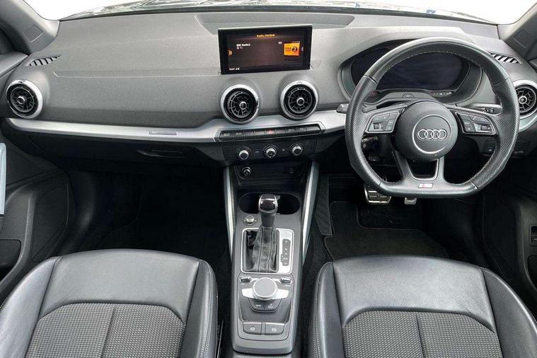 Audi connect navigation and infotainment includes innovative services, Audi connect remote and control connects your vehicle to your smartphone, Audi drive select - Power steering assistance + engine + gearshift, Audi drive select with efficiency, Audi smartphone interface, Audi virtual cockpit, Automatic start/stop system with recuperation, Bluetooth interface includes bluetooth audio streaming, Cruise control, E-call, MMI navigation plus with MMI touch, Power operated tailgate, Progressive steering, Rear parking sensors, 2 x SDXC card reader, 6 passive loudspeakers, DAB Digital radio, DVD Drive, Auto dimming rear view mirror, Black window trims, Bumper in full body colour paint finish, Electrically adjustable, folding, auto dimming and heated door mirrors with integrated LED side indicators, Front windscreen with grey tinted sunband, LED daytime running lights, LED headlights with LED rear lights, LED third brake light, Privacy glass - dark tinted rear and rear side windows from B-pillar backwards, Rear side wing doors, Rear wiper, Variable front intermittent wipers, Wheel arch trims in manhattan grey, 12V socket in front, 3 seat bench in 2nd row, 3 spoke flat bottomed multi-function leather sport steering wheel with gear shift paddles, 4-way electric lumbar support for front seats including seat height adjustment for both front seat, 60/40 split folding rear seat bench, Black cloth headlining, Front and rear head restraints, Front centre armrest, Front/rear floor mats, Height/reach adjust steering wheel, Illuminated door sill trims with S logo, Single front passenger seat, Stainless steel pedals, Black styling pack - Q2, 3x3 point rear seatbelts, 6 airbags - Front, curtain and front side airbags, Electromechanical parking brake, Electronic stabilisation control including ABS, ASR and EDL, Front passenger airbag deactivation, Hill hold assist, Pre-sense front with pedestrian recognition, Seatbelt monitoring, Tyre pressure warning light, Warning triangle and first aid kit, Anti theft alarm, Anti theft wheel bolts, Manual child locks, Remote central door locking, Aluminium interior element, Matt brushed aluminium trim inlays, Tool kit,
