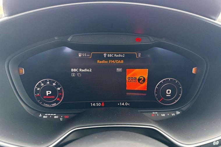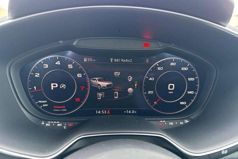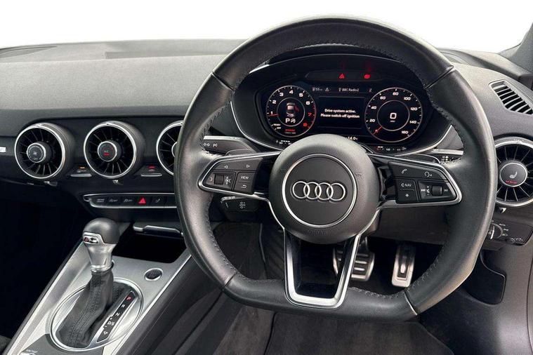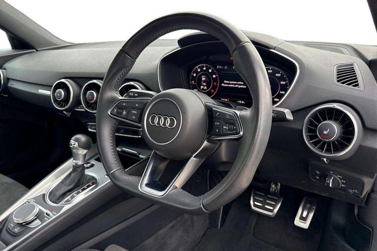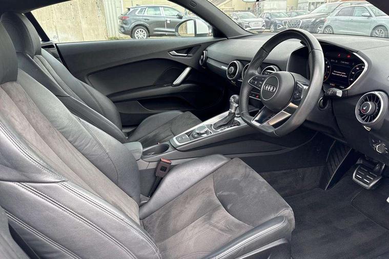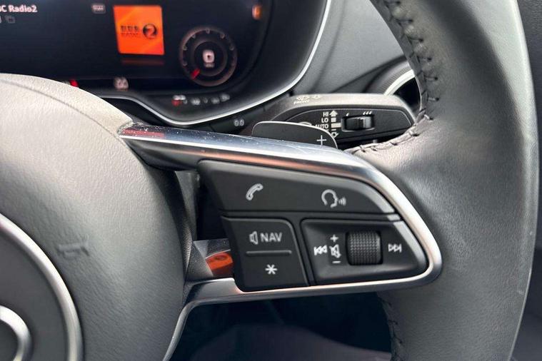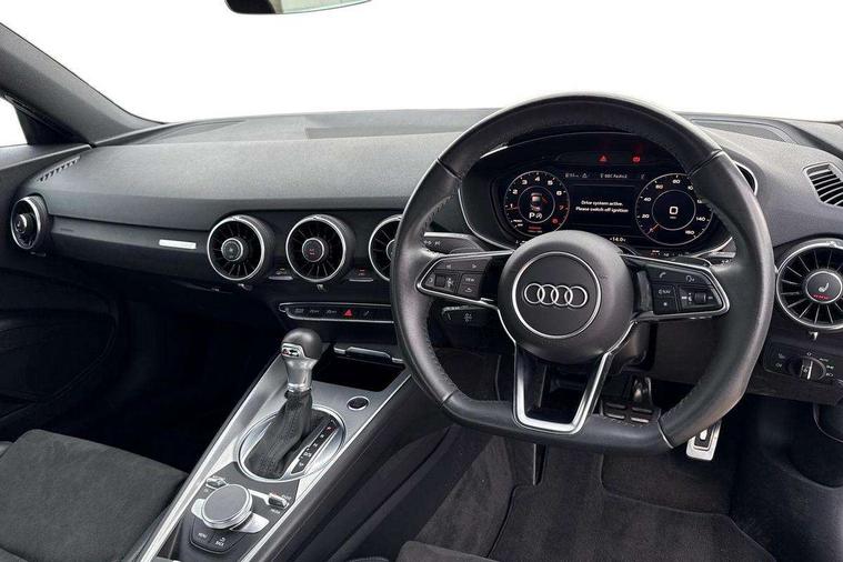Audi drive select with 4 Pre configured modes, Audi smartphone interface, Audi virtual cockpit - 12.3" high-resolution LCD display with fully customisable instrument cluster, Cruise control + speed limiter, Emergency call service, MMI touch panel, Mobile phone preparation with bluetooth interface, Progressive power assisted steering, Service interval indicator, Start/Stop system with energy recuperation, TP memo, Sports suspension, AM/FM radio, Bluetooth audio streaming, DAB Digital radio, MMI Radio with CD player and SD/XC card slot, Auto dimming rear view mirror, Body colour bumpers, Body colour door mirrors, Electric folding door mirrors, Electric front windows, Electrically adjustable and heated door mirrors with integrated LED side indicators, Front fog lights, Green tinted heat insulating glass, LED 3rd brake light, Light and rain sensors, Rear boot, Retractable rear boot spoiler, Sunband for windscreen, Xenon headlights with LED daytime running lights with automatic headline range control + LED rear lights, brake lights and rear indicators, 12V socket, 2 rear seats, 3 spoke flat bottomed high multi-function leather sport steering wheel with gearshift paddles, Alcantara/Leather upholstery includes seat centre panels, door trim inserts in black Alcantara with side bolsters, head restraints in black leather, Aluminium door sill trims, Front centre armrest, Front passenger seat, Front sports seats, Heated front seats, Height/reach adjust steering wheel, Integrated head restraints, ISOFIX child seat mounting for front passenger seat with airbag deactivation, Manual adjustment of seat height, fore/aft position, seat angle, seat depth and backrest angle, Rear head restraints, Rear top tether child seat ISOFIX attachment, Split folding rear seat, Non smoking pack - TT/TT RS, 3 point front seat belts, ABS, ASR traction control, Curtain airbags, Driver and front passenger airbag with front passenger airbag deactivation, EDL traction control, Electromechanical parking brake, ESP, First aid kit, Front side airbags, Head airbags, Hill hold assist, Seatbelt warning, Tyre pressure loss indicator, Warning triangle, Anti theft alarm, Anti theft wheel bolts, Immobiliser, Keyless Go, Remote central locking, Aluminium design inlays, Tool kit, Tyre repair kit,