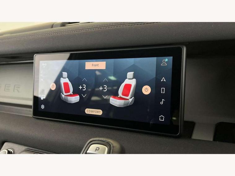 360 degree parking aid, 3D Surround Camera with 360 View, 180 Rear View, Front Traffic Detection, Forward Vehicle Guidance, Tow Hitch Assist and clear sight Ground View, Adaptive cruise control, Android Auto, Apple CarPlay, Assisted tailgate with soft close, Blind spot assist, Bluetooth system, Brake pad wear indicator, Clear exit monitor, Connected navigation pro, Driver condition monitor, Electric power assisted steering (EPAS), Interactive driver display, Lane keep assist, Push button start, Rear traffic monitor, Traffic sign recognition with adaptive speed limiter, Trip computer, Wade Sensing, 8 speed automatic transmission, All wheel drive system, Twin speed transfer box, DAB Radio (Digital Audio Broadcasting), Pivi pro connected, Automatic headlight levelling, Automatic headlights, Black exposed rear recovery eyes, Centre high mounted stop light, Electric heated/power fold door mirrors with approach lights and auto dimming driver side, Electric windows with one touch open/close and anti-trap, Follow me home lighting, Heated rear window with timer, Heated windscreen, LED tail lights, Privacy glass, Puddle lights, Rain sensing windscreen wipers, Rear fog lights, Rear side wing doors, Rear wiper, Side hinged tailgate, Trailer stability assist, X-Dynamic badge, 12V power socket in loadspace, 3 seat bench in 2nd row, Alpine lights, Durable rubber cabin flooring, Durable rubber loadspace flooring, Footwell lights, Front passenger isofix child seat attachment, Loadspace cover, Loadspace Hook, Multifunction steering wheel, Overhead stowage for sunglasses, Premium cabin lighting, Rear headrests, Rear ISOFIX, Rear reading lights, Single front passenger seat, Standard seat configuration, Storage glovebox, Sunvisors with illuminated vanity mirrors, Online pack with data plan - Defender, 5 x 3 point seatbelts, ABS, Brake hold function, Cornering brake control (CBC), Customer configurable autolock, DSC - Dynamic Stability Control, EBD - Electronic brakeforce distribution, Electric parking brake (EPB), Emergency brake assist, Emergency braking, ESP + traction control, Front airbags with passenger seat occupant detector, HDC - Hill descent control, Hill launch assist, Low traction launch, Power operated child locks, Remote for (e-Call, Optimised assistance call, InControl app, Climate, beep and flash and door), RSC - Roll stability control, Seat belt reminder, TPMS (Tyre pressure monitoring system), Alarm, Immobiliser, Intrusion sensor, Keyless entry, Locking wheel nuts,