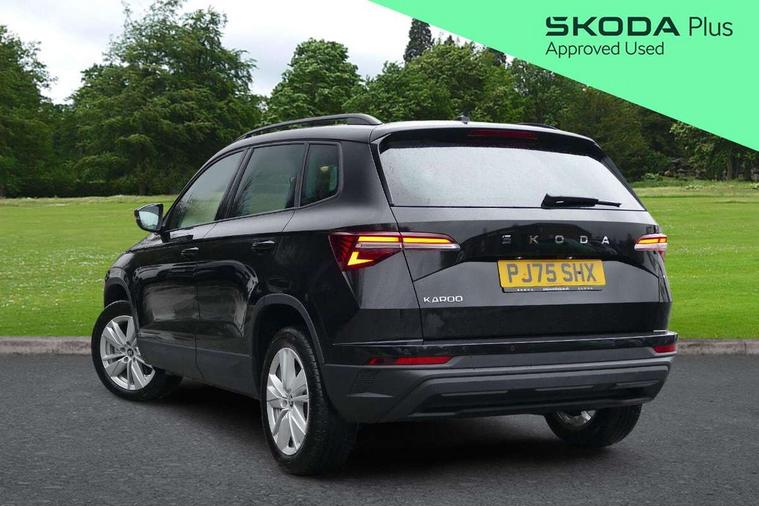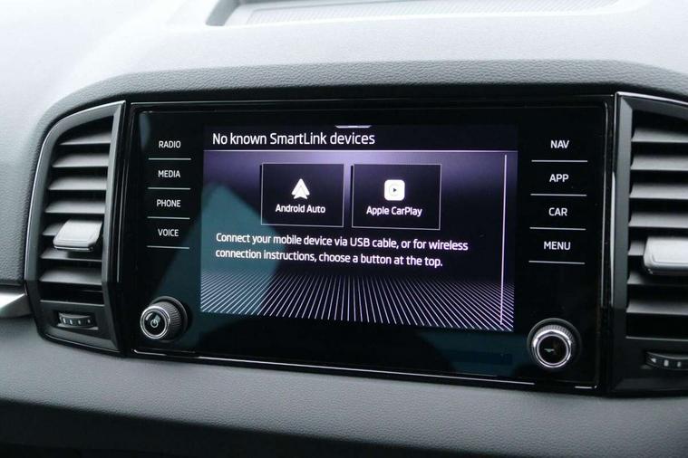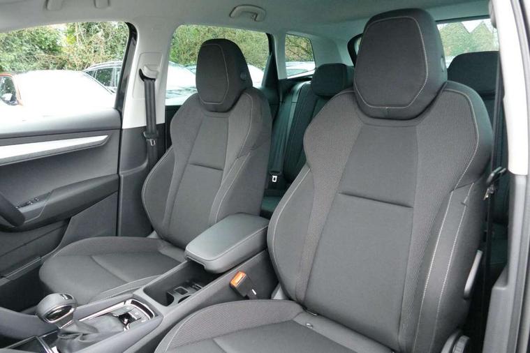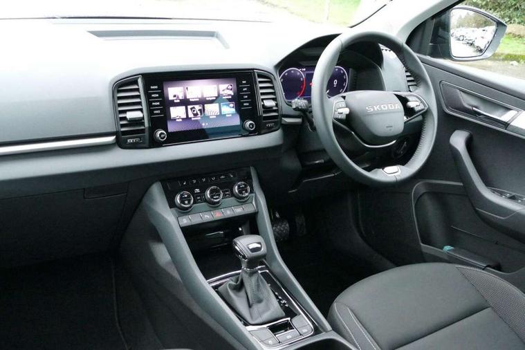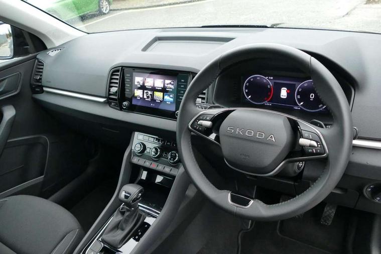 Advanced driver attention and drowsiness monitor, Amundsen navigation system with 8" touchscreen display and integrated WLAN and web radio, Electro-mechanical PAS, Emergency services call system, Lane assist, Outside temperature gauge, Sensor for driver assistance systems, Service interval indicator, SmartLink wireless for Apple and wired for Android, Start/stop system with regenerative braking, Traffic sign recognition, USB C Port x 2 in front centre console, Virtual Cockpit - 10.25" digital display, Wireless smartphone charging, 8 Speakers, DAB radio with Bluetooth, USB connection, Acoustic glass, Aero front windscreen wipers with intermittent function, Auto dimming rear view mirror with light and rain sensors, Black electric window control buttons, Body colour door mirrors and handles, Electric front and rear windows with child proof lock, Electrically adjustable heated folding and auto dimming door mirrors, Front fog lights, Headlight range control, Heated rear windscreen, LED daytime running lights, LED Headlights, LED rear lights with high functionality welcome effect and dynamic indicators, Light assistant (coming/leaving home/tunnel light), Plastic scuff plates in door apertures, Privacy glass, Rear side wing doors, Rear window wiper with washer system and intermittent control, Safety reflectors on front doors, Third brake light, Unique dark chrome design logo on alloy wheels, 1.5 litre bottle holders in driver and front passenger door panels, 12V socket in boot, 12v socket in front centre armrest with storage compartment and rear air vents, 2 spoke leather heated multifunction steering wheel with DSG paddles, 2 x Tablet holder, 3 rear height adjustable headrests, 3 seat bench in 2nd row, 4 foldable roof handles with rear coat hooks, Black floor carpet, Cargo elements in boot, Chrome inner door handles, Driver/front passenger reading lights, Foldable hooks in the boot, Folding tables on the front seat backrests, Front head restraints, Height adjustable driver and passenger seat, Height adjustable front three point seats belts with tensioners, Height/reach adjust steering wheel, Ice scraper, Illuminated glovebox, Illuminated luggage compartment, Interior noise suppression, Isofix child seat preparation for front passenger seat, Isofix child seat preparation outer rear, Loft fabric upholstery, Manual lumbar support for front seats, Pearl grey interior ceiling, Pen holder, Pollen filter, Rear boot cover, Rear package tray, Rear reading lights, Rubbish bin door, Safety vest holder, Single front passenger seat, Skoda lettering on steering wheel, Storage box in upper central dashboard closed, Sunvisors with illuminated vanity mirrors, Textile floor mats, Ticket holder, Umbrella under passenger seat, Under passenger seat storage compartment, Non Smokers pack, Parking pack - Karoq, Winter pack with heated front seats - Karoq, Automatic door unlocking in case of crash, Automatic fuel cut off in case of crash, Driver airbag, Electronic parking brake with auto hold function, Emergency rear braking signal, ESC (incl. ABS+MSR+ASR+EDS+HBA+DSR+RBS+MKB), Front assist, Front side airbags, Head airbags, Hill hold control, Knee airbags, Passenger airbag with switch-off function, Pedestrian monitor, Power operated child safety locks, Seatbelt reminder signalisation and pretensioner for all seats, Three point seatbelts rear, Two tone horn, Tyre pressure monitor, Alarm with interior monitoring, back up horn and tilt sensor with safe function, Electronic engine immobiliser, Keyless entry and start/stop, Remote central locking with 2 remote folding keys, Anodized cross door decor, Black centre console, Chrome framed air vents, Satin black dashboard, Satin black door trim, Anti-theft wheel bolts protection, Breakdown and tool kit,