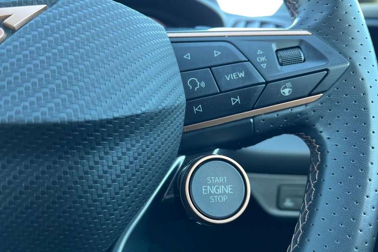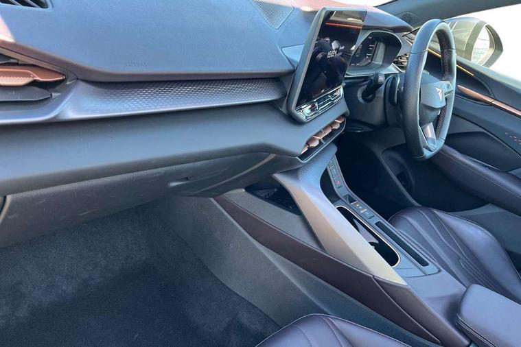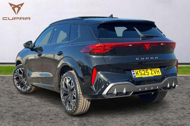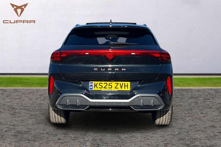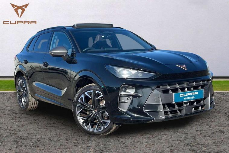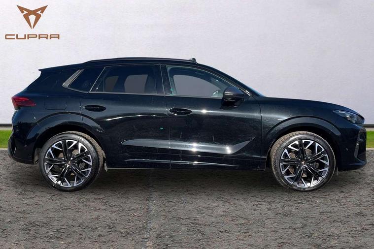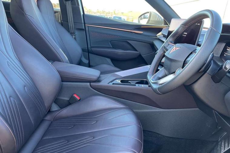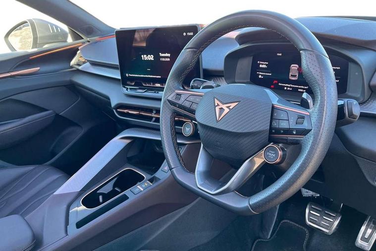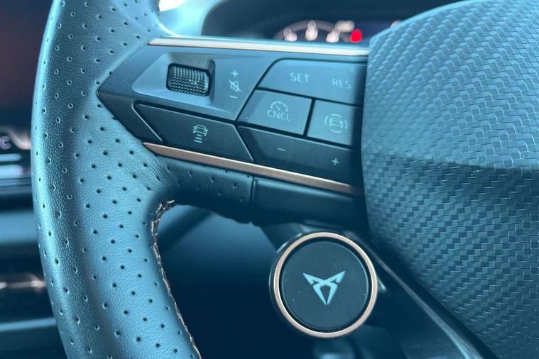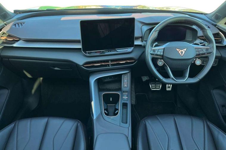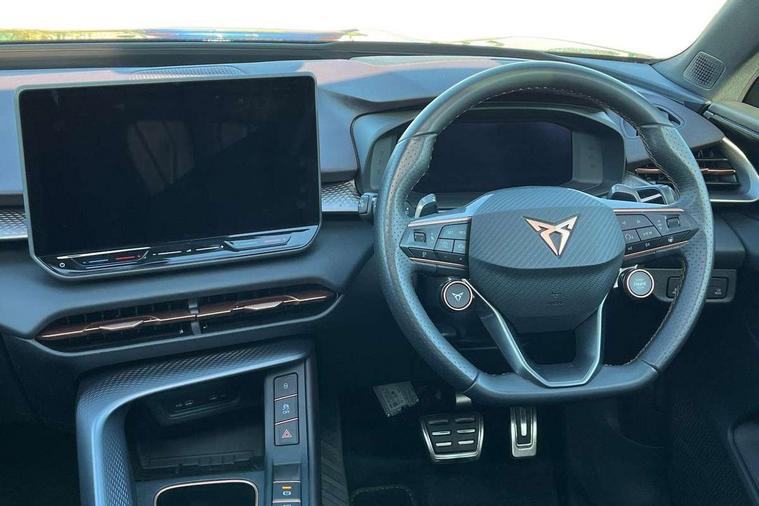 10.25" digital cockpit and configurable dashboard, Adaptive cruise control with follow-to-stop and speed limiter, Advanced driver alert system, Advanced lane assist with semi-automatic vehicle control in a medical emergency and traffic jam assist, Driving profile selection (DCC- Comfort, performance, CUPRA, Individual, Dynamic road sign display, E-call, Electric tailgate with virtual pedal, Emergency steering support with turn assist, Front and rear parking sensors, Front assist (Forward collision warning with automatic braking) with multifunction camera and front cross traffic assist, Head up Display, Intelligent park assist, Media system with Nav - 12.9" touch display, voice control, full link phone (wired/wireless), DAB and Steering wheel mounted controls, Rear traffic assist, Side and exit assist, Speed sensitive power steering, Start/stop system with regenerative braking, Top view camera (front camera, rear camera, 2 side cameras), Wireless phone charger, Adaptive chassis control with a 2-valve shock absorber, Auto dimming rear view mirror, Black roof rails, CUPRA 3D rear lights with ceremony & swiping indicator and illuminated logo, Dark tinted rear windows, Daytime running lights with automatic headlight control and Coming and Leaving home function, Door mirrors with memory function and lowing function on passenger mirror, Electric front/rear windows, Electrically adjustable, heated and folding door mirrors, Front fog lamps with cornering function, Heat reflecting windscreen, High beam assist, Rain sensing wipers, Rear fog light on one side, back up light on both sides, Rear side wing doors, Rear wash/wipe, Third brake light, Welcome lights (within exterior mirror housing), 3 seat bench in 2nd row, Black roof lining, Cupra sports pedals, Driver seat memory function, Electrically adjustable front seats including lumbar support, Four x USB Type C ports (2 in front and 2 in rear), Front and rear head restraints, Front and rear reading lights X 4, Front centre armrest, Heated front seats, Heated leather wrapped multi function sports steering wheel with tiptronic, Illuminated interior front door sills, Isofix, Leather upholstery, Operating voltage 12V, Single front passenger seat, Smart wraparound interior lighting, Sunvisors with illuminated mirror, Three zone climate control with control panel in rear, Unsplit rear seat bench, split folding backrest, with centre armrest, Variable luggage/load compartment floor, Pure performance pack - Terramar, 3 point seatbelts in front with pretensioner and electric height adjustment, 3 point seatbelts on all rear seats, Brake control system - ESC and brake booster, Child proof door locks, Driver and front passenger airbags, Electronic parking brake, Front and rear disc brakes, Front interaction airbag, Front passenger airbag deactivation switch, Front side airbags with curtain airbags, Pre-crash front and rear seat belt tensioner, window closure and hazard lights, Tyre pressure monitoring system, Visual and acoustic seat belt reminder, electric contact in front and rear, Anti theft alarm, Keyless locking and starting system with keyless access, Locking wheel bolts, Black decorative trims, Chrome interior detailing, 20" Hadron exclusive machine alloy wheels, Performance tyres in polmer coating, Tool kit,