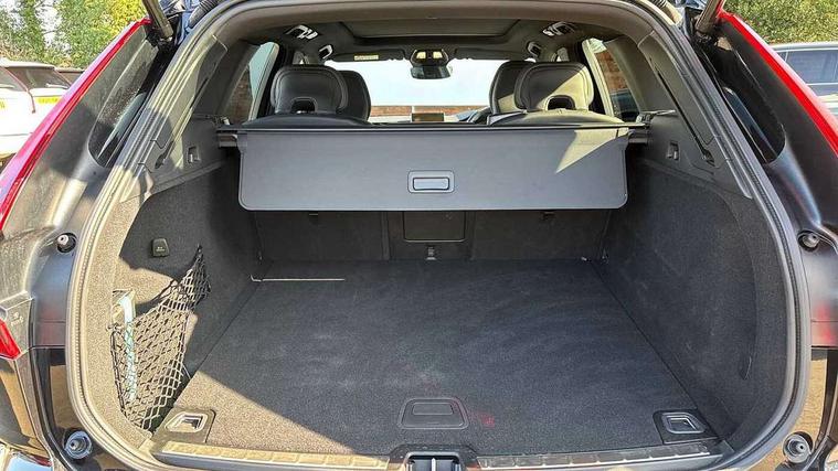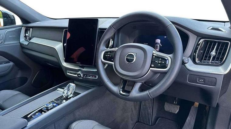 11.2" centre console touch screen, 12.3" Progressive Driver Display, 360 degree surround view parking camera with side proximity sensors, Adaptive cruise control, Adjustable steering wheel force, Android auto (Wired), Apple carplay (wired), Bluetooth handsfree system, Driver alert control with lane keeping aid, Emergency services call system, Front and rear park assist, Google Automotive Services, Intelligent speed assistance, Oncoming Lane Mitigation, PAS, Power operated tailgate with handsfree opening and closing, Service interval indicator, Speed limiter, Speed sensitive steering, Trip computer, Volvo cars services with app, Volvo on call with App, Wireless/Inductive Mobile Phone Charging, 8 speed automatic transmission with start/stop + manual change functions, DAB Digital radio, Premium Sound by Harman Kardon, dirac unison, dolby pro logic II surround sound, 13 speakers/600W output and fresh air subwoofer, Steering wheel remote infotainment controls, Adaptive brake lights with high level LED brake lights, Auto dimming interior + exterior mirrors, Automatic headlight levelling system, Automatic LED Headlights + Active high beam incorporating daytime running lights, Dark tinted windows for rear side windows and cargo area, Electric adjustable/heated/auto power folding door mirrors, Electric front+rear windows, Front aluminium tread plates, Heated front windscreen, High gloss black door mirrors and window surround, High gloss black front and rear bumper decoratives, High gloss black front grille, Surround, Strikethrough and Ironmark, High gloss black rear model, engine and volvo logo badges, Home safe and approach lighting, Integrated roof rails in high gloss black, Puddle lights, Rain sensor with automatic windscreen wiper activation, Rear side wing doors, Rear wiper, Roof antenna, Roof spoiler, Tinted windscreen, Visible VIN plate, 12V socket in front tunnel console and luggage compartment, 3 seat bench in 2nd row, 3 Spoke tailored steering wheel with chrome trim, 4 Zone electronic climate control, A-pillar parking ticket holder, Air purifier particulate matter (PM) 2.5 filter, B Pillar ventilation, Bright metal luggage scuff plate, Centre console cupholders and storage, Charcoal floor mats, Contour sports seats with nappa soft leather/textile upholstery, Front and rear courtesy lights, Front and rear door pocket illumination, Front cupholder illumination, Front footwell illumination, Front reading lights, Front seat cushion extensions, Glovebox compartment with illumination, Head restraints for all seats, Heated front seats, Heated steering wheel, Height/reach adjustable steering column, Illuminated luggage compartment, Illuminated vanity mirrors + ticket holder, Inner door release handle illumination, ISOFIX attachment on outer rear seats, Load cover, Load protection net, Multi directional lumbar support, Power driver seat with memory + exterior mirrors memory, Power height adjustable passenger seat, Power passenger seat with memory, Rear armrest with cupholder, Rear footwell and front and rear side step illumination, Rear reading lights, Rear seat concealed storage, Single front passenger seat, Tailgate illumination and ambient door lighting, Underfloor stowage compartment, Versatile split folding rear seat - 60/40, Driver assist pack without Adaptive cruise control - XC60, 5 three point seatbelts, City safety with steering support with Pedestrian + cyclist + front collision warning with full auto brake and rear auto brake, Drivers knee airbag, Dual stage driver/passenger airbags, Electronic parking brake with auto hold, First aid kit, Front seats SIPS airbags, Hill descent control - Off-road drive mode, Hill start assist, IC (Inflatable Curtains) - Full Length, Passenger airbag cut-off device, Power child locks on rear doors, Road sign information display, Run off Road Mitigation, Run off Road Protection, Seatbelt reminder and pretensioners, SIPS (Side Impact Protection System), Slippery road and hazard light alert, Stability and Traction Control with Spin control, Engine Drag Control and Corner Traction Control, Tyre pressure monitoring system, Vehicle deceleration control with Anti-lock Brake System, Electronic Brake Distribution and Emergency Brake Assist, Warning triangle, WHIPS whiplash protection system - front, Anti-theft alarm including immobiliser/volume sensor + level sensor, Key integrated remote control central locking + fuel flap with deadlocking system and auto open/close power windows, Keyless Drive (includes Keyless Entry and Keyless Start), Locking wheel nuts, Private locking for tailgate, 21" 5 Double spoke high gloss black alloy wheels, Summer tyres,