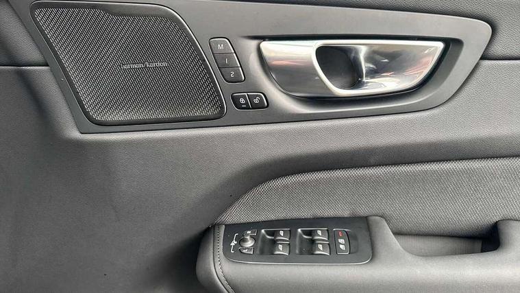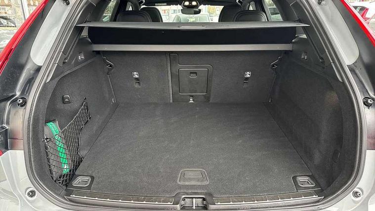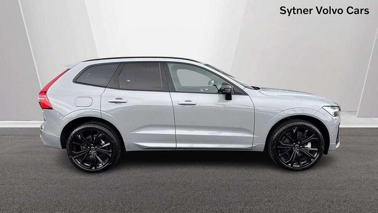 11.2" centre console touch screen, 12.3" Progressive Driver Display, 360 degree surround view parking camera with side proximity sensors, Adaptive cruise control, Adjustable steering wheel force, Android auto (Wired), Apple carplay (wired), Bluetooth handsfree system, Driver alert control with lane keeping aid, Emergency services call system, Front and rear park assist, Google Automotive Services, Intelligent speed assistance, Oncoming Lane Mitigation, PAS, Power operated tailgate with handsfree opening and closing, Service interval indicator, Speed limiter, Speed sensitive steering, Trip computer, Volvo cars services with app, Volvo on call with App, Wireless/Inductive Mobile Phone Charging, 8 speed automatic transmission with start/stop + manual change functions, DAB Digital radio, Premium Sound by Harman Kardon, dirac unison, dolby pro logic II surround sound, 13 speakers/600W output and fresh air subwoofer, Steering wheel remote infotainment controls, Adaptive brake lights with high level LED brake lights, Auto dimming interior + exterior mirrors, Automatic headlight levelling system, Automatic LED Headlights + Active high beam incorporating daytime running lights, Dark tinted windows for rear side windows and cargo area, Electric adjustable/heated/auto power folding door mirrors, Electric front+rear windows, Front aluminium tread plates, Heated front windscreen, High gloss black door mirrors and window surround, High gloss black front and rear bumper decoratives, High gloss black front grille, Surround, Strikethrough and Ironmark, High gloss black rear model, engine and volvo logo badges, Home safe and approach lighting, Integrated roof rails in high gloss black, Puddle lights, Rain sensor with automatic windscreen wiper activation, Rear side wing doors, Rear wiper, Roof antenna, Roof spoiler, Tinted windscreen, Visible VIN plate, 12V socket in front tunnel console and luggage compartment, 3 seat bench in 2nd row, 3 Spoke tailored steering wheel with chrome trim, 4 Zone electronic climate control, A-pillar parking ticket holder, Air purifier particulate matter (PM) 2.5 filter, B Pillar ventilation, Bright metal luggage scuff plate, Centre console cupholders and storage, Charcoal floor mats, Contour sports seats with nappa soft leather/textile upholstery, Front and rear courtesy lights, Front and rear door pocket illumination, Front cupholder illumination, Front footwell illumination, Front reading lights, Front seat cushion extensions, Glovebox compartment with illumination, Head restraints for all seats, Heated front seats, Heated steering wheel, Height/reach adjustable steering column, Illuminated luggage compartment, Illuminated vanity mirrors + ticket holder, Inner door release handle illumination, ISOFIX attachment on outer rear seats, Load cover, Load protection net, Multi directional lumbar support, Power driver seat with memory + exterior mirrors memory, Power height adjustable passenger seat, Power passenger seat with memory, Rear armrest with cupholder, Rear footwell and front and rear side step illumination, Rear reading lights, Rear seat concealed storage, Single front passenger seat, Tailgate illumination and ambient door lighting, Underfloor stowage compartment, Versatile split folding rear seat - 60/40, Driver assist pack without Adaptive cruise control - XC60, 5 three point seatbelts, City safety with steering support with Pedestrian + cyclist + front collision warning with full auto brake and rear auto brake, Drivers knee airbag, Dual stage driver/passenger airbags, Electronic parking brake with auto hold, First aid kit, Front seats SIPS airbags, Hill descent control - Off-road drive mode, Hill start assist, IC (Inflatable Curtains) - Full Length, Passenger airbag cut-off device, Power child locks on rear doors, Road sign information display, Run off Road Mitigation, Run off Road Protection, Seatbelt reminder and pretensioners, SIPS (Side Impact Protection System), Slippery road and hazard light alert, Stability and Traction Control with Spin control, Engine Drag Control and Corner Traction Control, Tyre pressure monitoring system, Vehicle deceleration control with Anti-lock Brake System, Electronic Brake Distribution and Emergency Brake Assist, Warning triangle, WHIPS whiplash protection system - front, Anti-theft alarm including immobiliser/volume sensor + level sensor, Key integrated remote control central locking + fuel flap with deadlocking system and auto open/close power windows, Keyless Drive (includes Keyless Entry and Keyless Start), Locking wheel nuts, Private locking for tailgate, 21" 5 Double spoke high gloss black alloy wheels, Summer tyres,