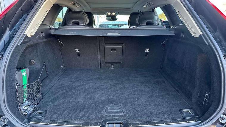 11.2" centre console touch screen, 12.3" Progressive Driver Display, 360 degree surround view parking camera with side proximity sensors, Adaptive cruise control, Adjustable steering wheel force, Android auto (Wired), Apple carplay (wired), Bluetooth handsfree system, Driver alert control with lane keeping aid, Emergency services call system, Front and rear park assist, Google Automotive Services, Intelligent speed assistance, Oncoming Lane Mitigation, PAS, Power operated tailgate with handsfree opening and closing, Service interval indicator, Speed limiter, Speed sensitive steering, Trip computer, Volvo cars services with app, Volvo on call with App, Wireless/Inductive Mobile Phone Charging, 8 speed automatic transmission with start/stop + manual change functions, Active four-C chassis + four corner adaptive damper with electronic rear air suspension, DAB Digital radio, Premium sound by Bowers and Wilkins, dirac live, dolby pro logic II surround sound, 14 speakers/1100W output and fresh air subwoofer, Steering wheel remote infotainment controls, Active bending headlights with adaptive shadow technology, Adaptive brake lights with high level LED brake lights, Auto dimming interior + exterior mirrors, Automatic headlight levelling system, Automatic LED Headlights + Active high beam incorporating daytime running lights, Dark tinted windows for rear side windows and cargo area, Electric adjustable/heated/auto power folding door mirrors, Electric front+rear windows, Front aluminium tread plates, Headlight cleaning system, High gloss black door mirrors and window surround, High gloss black front and rear bumper decoratives, High gloss black mesh front grille with high gloss black surround, Home safe and approach lighting, Integrated roof rails in high gloss black, LED front fog lights with static cornering light function, Power glass tilt and slide panoramic sunroof with sun curtain, Puddle lights, Rain sensor with automatic windscreen wiper activation, Rear side wing doors, Rear wiper, Roof antenna, Roof spoiler, Tinted windscreen, Visible VIN plate, 12V socket in front tunnel console and luggage compartment, 3 seat bench in 2nd row, 4 Zone electronic climate control, A-pillar parking ticket holder, Air purifier particulate matter (PM) 2.5 filter, B Pillar ventilation, Bright metal luggage scuff plate, Centre console cupholders and storage, Charcoal floor mats, Front and rear courtesy lights, Front and rear door pocket illumination, Front cupholder illumination, Front footwell illumination, Front reading lights, Front seat cushion extensions, Glovebox compartment with illumination, Head restraints for all seats, Heated front seats, Heated steering wheel, Height/reach adjustable steering column, Illuminated luggage compartment, Illuminated vanity mirrors + ticket holder, Inner door release handle illumination, ISOFIX attachment on outer rear seats, Load cover, Load protection net, Multi directional lumbar support, Power driver seat with memory + exterior mirrors memory, Power folding rear headrests, Power passenger seat with memory, Rear armrest with cupholder, Rear footwell and front and rear side step illumination, Rear reading lights, Rear seat concealed storage, Single front passenger seat, Tailgate illumination and ambient door lighting, Underfloor stowage compartment, Versatile split folding rear seat - 60/40, Driver assist pack without Adaptive cruise control - XC60, 5 three point seatbelts, City safety with steering support with Pedestrian + cyclist + front collision warning with full auto brake and rear auto brake, Drivers knee airbag, Dual stage driver/passenger airbags, Electronic parking brake with auto hold, First aid kit, Front seats SIPS airbags, Hill descent control - Off-road drive mode, Hill start assist, IC (Inflatable Curtains) - Full Length, Passenger airbag cut-off device, Power child locks on rear doors, Run off Road Mitigation, Run off Road Protection, Seatbelt reminder and pretensioners, SIPS (Side Impact Protection System), Slippery road and hazard light alert, Stability and Traction Control with Spin control, Engine Drag Control and Corner Traction Control, Tyre pressure monitoring system, Vehicle deceleration control with Anti-lock Brake System, Electronic Brake Distribution and Emergency Brake Assist, Warning triangle, WHIPS whiplash protection system - front, Anti-theft alarm including immobiliser/volume sensor + level sensor, Key integrated remote control central locking + fuel flap with deadlocking system and auto open/close power windows, Keyless Drive (includes Keyless Entry and Keyless Start), Locking wheel nuts, Private locking for tailgate, Tailored instrument panel with contrast stitching, Summer tyres,