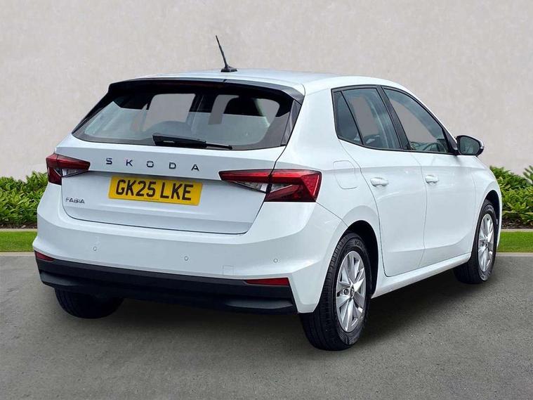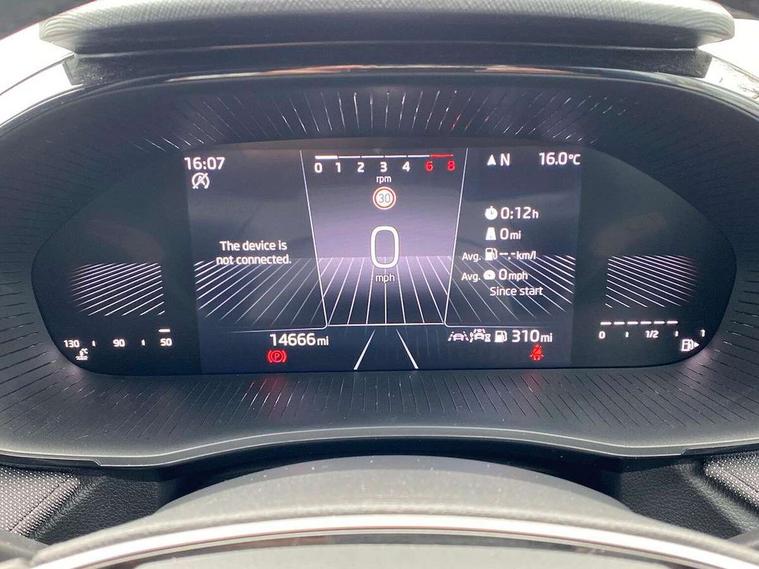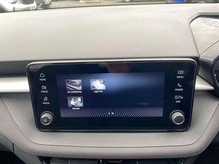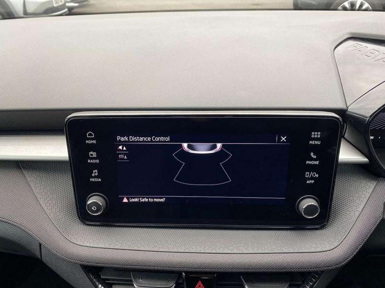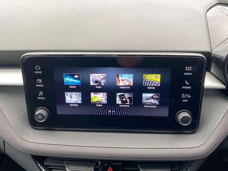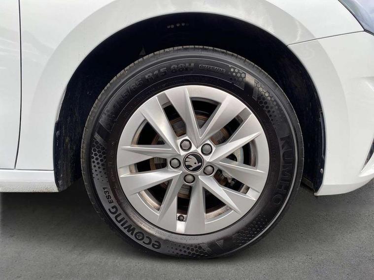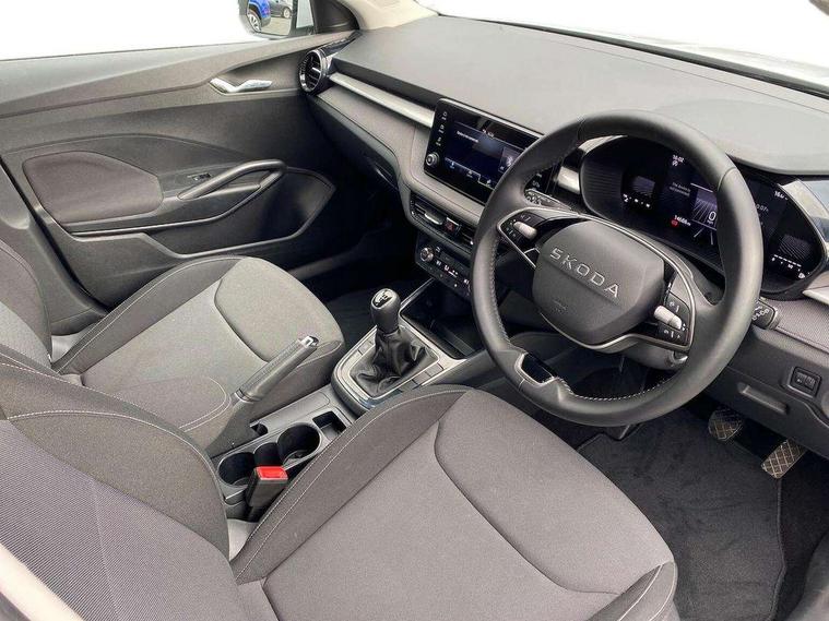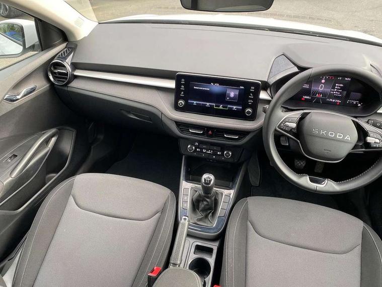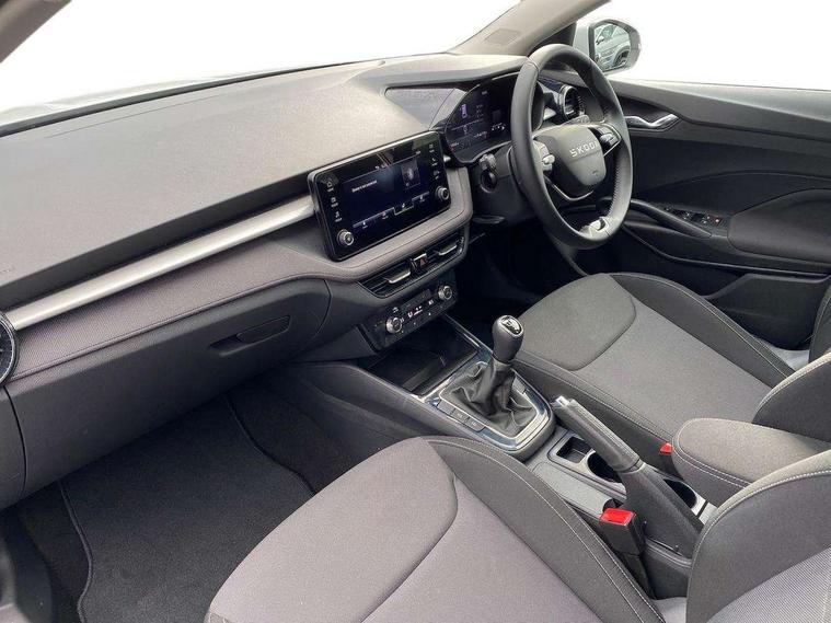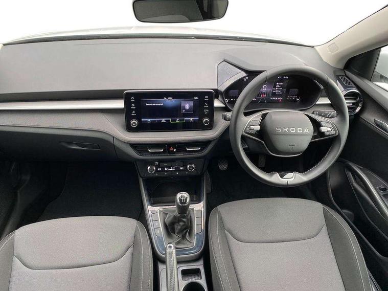 8" Digital instrument display, Advanced driver attention and drowsiness monitor, Bluetooth connection, Electromechanical power steering, Exterior temperature gauge, Service interval indicator, Traffic sign recognition, Wireless SmartLink for Apple CarPlay and Android Auto, 6 Speakers (4 in front and 2 in rear), 8.25" Skoda infotainment touchscreen display, Auxiliary socket for external MP3 player, DAB digital radio reception, Auto dimming rear view mirror, Body colour door mirrors, Body coloured bumpers, Door mirror integrated indicators, Front and rear electric windows, Front window wiper intermittent control, Headlight range control - Automatic, Ice scraper in fuel cap, LED 3rd brake light, LED daytime running lights with coming and leaving home feature, LED rear lights, Rear LED fog light, Rear side wing doors, Rear window wiper with washing nozzles, Roof mounted spoiler, SKODA tailgate lettering in chrome, Unique dark chrome design logo on alloy wheels, 2 reading lights in front and 2 reading lights in rear, 3 rear headrests, Backrest split and folding, Central console with removable cup holder and storage box, Chrome handbrake release button, Dual zone air conditioning with climatronic electronic control, Fabric upholstery, Front centre armrest, Gearshift knob/handle in leather, Grain satin black interior door handles, Hand brake lever handle in leather, Height adjustable front headrests, Height adjustable front seats, Height adjustable steering wheel, ISOFIX and TopTether anchorage points to the outer rear seats, ISOFIX and TopTether on the front passenger seat, Luggage compartment lighting, Manually adjustable lumbar support in front seats, Pollen filter, Rear seat bench unsplit, Single front passenger seat, Skoda lettering on steering wheel, Storm grey headlining, Sun visors with mirror and airbag label on passenger side, Textile floor mats, Ticket holder, Umbrella in drivers door, 3-point height adjustable front seats belts with pretensioner and force limiter, Automatic warning lights in case of crash, Driver and passengers airbag with switch off function, e-Call+, ESC including ABS, MSR, ASR, EDS, HBA and XDS, Front and rear seat belt warning, FRONT ASSIST (AEB City and AEB Inter Urban), Front side airbags, Head airbags, One tone horn, Pedestrian protection, Three rear 3-points safety seat belts with pretensioner and force limiter including stop function for outer rear seat belts, Tyre pressure monitoring system, Anti-theft alarm system including immobiliser, interior monitoring, backup horn, and towing protection, Central locking with radio remote control, interior controls, SAFE function and 2 foldable keys, Black painted air vents, Grain satin black central console cover, Metallic grey upper decorative trim, Satin black door and side trim panel in front, Textile Kota grey lower decorative inserts, Anti-theft wheel bolts protection, Super-low rolling resistance tyres,