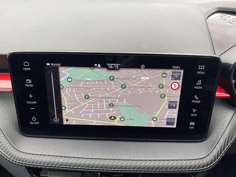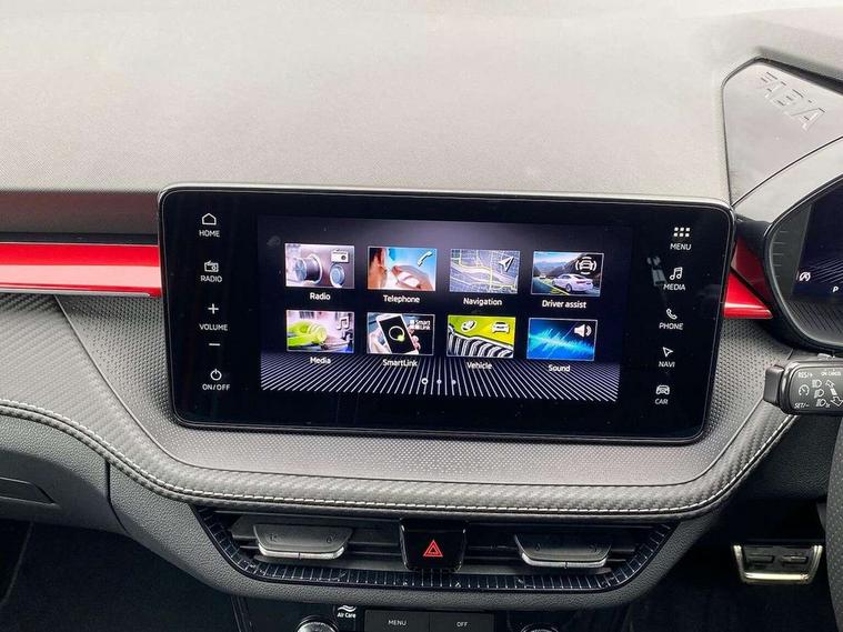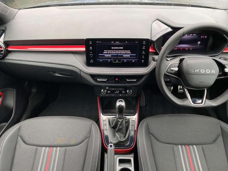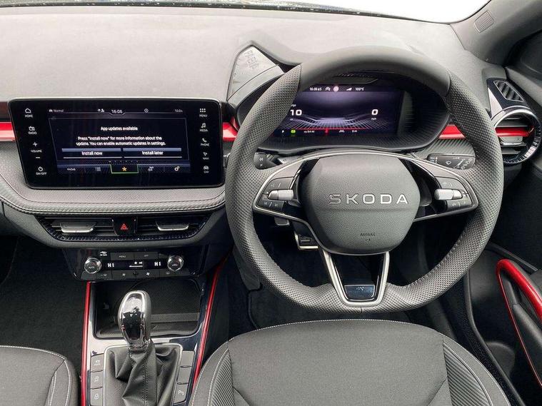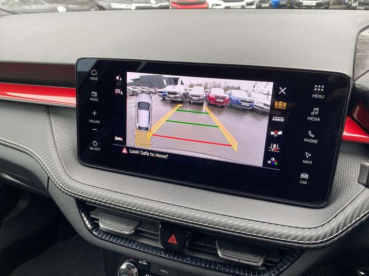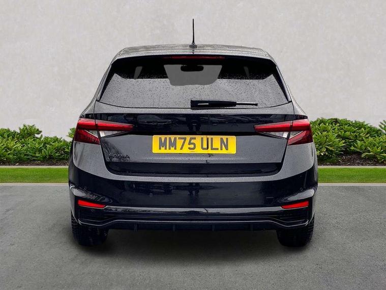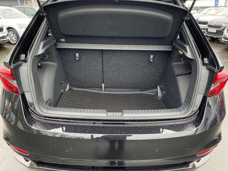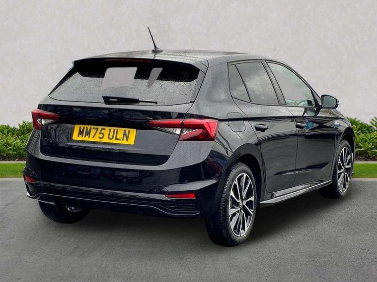 Advanced driver attention and drowsiness monitor, Bluetooth connection, Driver alert system, Electromechanical power steering, Exterior temperature gauge, Service interval indicator, Traffic sign recognition, Virtual cockpit with 10.25" colour display, Wireless SmartLink for Apple CarPlay and Android Auto, 6 Speakers (4 in front and 2 in rear), 9.2" colour display skoda navigation system with voice control and web radio, Auxiliary socket for external MP3 player, DAB digital radio reception, Auto dimming rear view mirror, Black radiator grille, Body coloured bumpers, Chrome window surround, Door mirror integrated indicators, Dynamic headlight range control, Front and rear electric windows, Front window wiper intermittent control, Ice scraper in fuel cap, LED 3rd brake light, LED daytime running lights with coming and leaving home feature, LED rear lights, Monte Carlo badging, Privacy glass, Rear LED fog light, Rear side wing doors, Rear window wiper with washing nozzles, Roof mounted spoiler, SKODA tailgate lettering in black, Sports bumpers, Unique dark chrome design logo on alloy wheels, 2 LED reading lights in front and rear, 3 rear headrests, Aluminium pedals, Backrest split and folding, Black headlining, Central console with fixed cup holder and storage box, Chrome handbrake release button, Door sills with fabia badging, Dual zone air conditioning with climatronic electronic control, Fabric/artificial leather upholstery, Front centre armrest, Front sports seats, Gearshift knob/handle in leather, Hand brake lever handle in leather, Height adjustable front headrests, Height adjustable front seats, Height adjustable steering wheel, ISOFIX and TopTether anchorage points to the outer rear seats, ISOFIX and TopTether on the front passenger seat, Luggage compartment lighting, Manually adjustable lumbar support in front seats, Metallic red interior door handles, Pollen filter, Rear seat bench unsplit, Single front passenger seat, Skoda lettering on steering wheel, Sun visors with mirror and airbag label on passenger side, Textile floor mats, Ticket holder, Umbrella in drivers door, Ambient lighting pack - Fabia Hatchback, Convenience pack - Fabia, Light and view pack plus - Fabia, 3-point height adjustable front seats belts with pretensioner and force limiter, Automatic warning lights in case of crash, Driver and passengers airbag with switch off function, e-Call+, ESC including ABS, MSR, ASR, EDS, HBA and XDS, Front and rear seat belt warning, FRONT ASSIST (AEB City and AEB Inter Urban), Front side airbags, Head airbags, Hill hold control, One tone horn, Pedestrian protection, Three rear 3-points safety seat belts with pretensioner and force limiter including stop function for outer rear seat belts, Tyre pressure monitoring system, Anti-theft alarm system including immobiliser, interior monitoring, backup horn, and towing protection, Central locking with radio remote control, interior controls, SAFE function and 2 foldable keys, Carbon effect door and side trim panels, Carbon effect lower decorative trim with white stitching, Grain satin black central console cover, Monte carlo air vents, Red metallic upper decorative trim, Anti-theft wheel bolts protection, Super-low rolling resistance tyres,