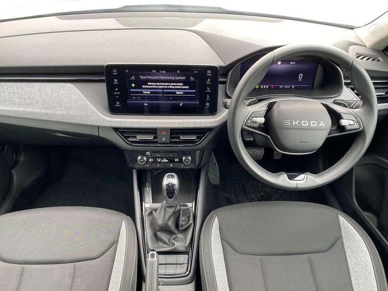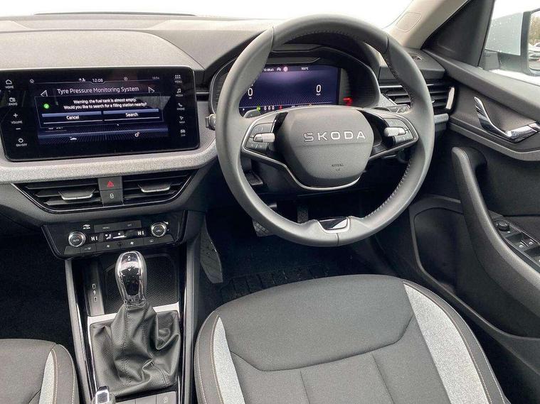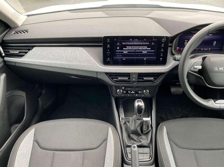Advanced driver attention and drowsiness monitor, Bluetooth system, E-call, Front assist system, PAS, Rear parking sensors, Rear view camera, Service indicator, Speed limiter, Traffic sign recognition, Virtual cockpit with 10.25" display, Voice control system, Wireless smartlink, 4 USB C ports, 8 Speakers, 8.25" Skoda infotainment display, 9.2" Skoda navigation display, DAB Digital radio, Auto dimming rear view mirror, Automatic headlight control with coming home and leaving home feature, Black roof rails, Body colour bumpers, Body colour door mirrors and handles, Chrome grille surround, Front and rear electric windows, Full LED headlights, Heated rear window, LED brake lights, LED daytime running lights, LED front turning lights, LED high beam, LED low beam, LED third brake light, Rear LED fog light, Rear side wing doors, Rear wiper, Ticket holder inside windscreen, 12V socket in luggage compartment, 3 seat bench in 2nd row, Black hotstamping, Cargo elements, Chrome inner door handles, Driver and passenger sun visors with vanity mirror, Dual zone climate control, Front and rear roof lights, Front centre armrest, Front head restraints, Glove compartment with illumination, Height adjustable driver seat, Height adjustable front passenger seat, Ice scraper, Inner circulation control with pollen filter, ISOFIX on front passenger seat, Isofix preparation for back seats, Krepp recycled decor inserts, Leather gearknob and handbrake lever, Loft cloth upholstery, Manual lumbar support for front seats, Net package and top tether hooks in boot space, Net under rear shelf, Overhead glasses storage compartment, Pocket on the back of both front seats include mobile phone pockets, Rake/reach adjustable steering wheel, Reading lights, Satin black door inserts, Single front passenger seat, Textile floor mats, Third rear headrest, Top tether for front passenger seat, Umbrella in driver's door, 3x3 point rear seatbelts, Airbags - driver and front passenger, Disc brakes, ESP, Extended and predictive pedestrian/cyclist protection, Front passenger airbag deactivation switch, Front side airbags with curtain airbags, Hill hold control, Manual leather parking brake, Manual rear child locks, One tone horn, Seatbelt reminder for driver an co-driver, Traction control, Tyre pressure monitor, Anti-theft alarm system with interior monitoring, backup horn, towing protection and remote central locking with SAFE system, Anti-theft wheel bolts, Electronic engine immobilizer,