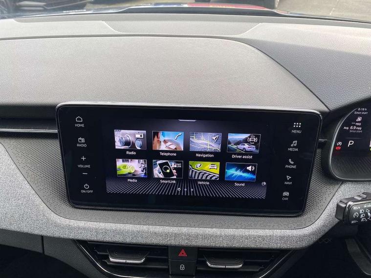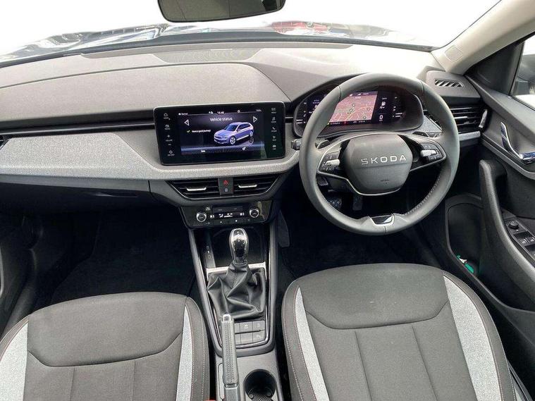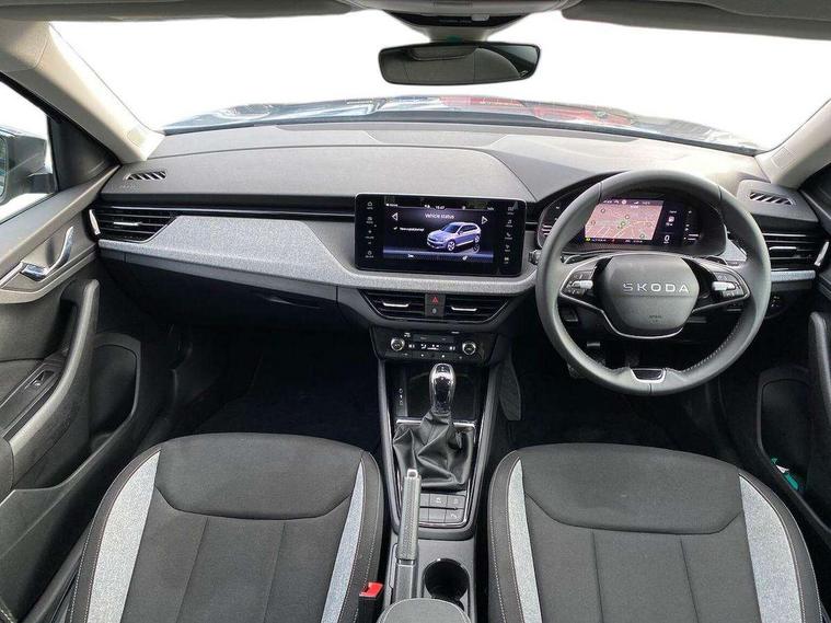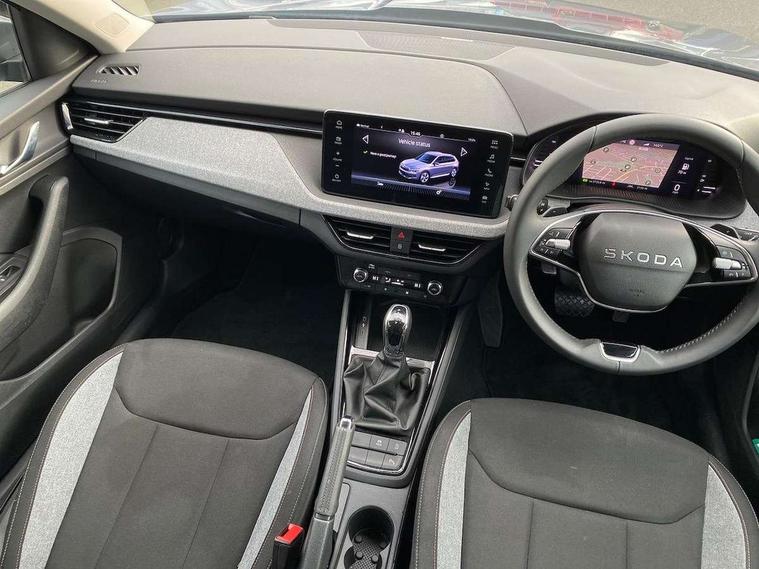 Advanced driver attention and drowsiness monitor, Bluetooth system, E-call, Front assist system, PAS, Rear parking sensors, Rear view camera, Service indicator, Speed limiter, Traffic sign recognition, Virtual cockpit with 10.25" display, Voice control system, Wireless smartlink, 4 USB C ports, 8 Speakers, 8.25" Skoda infotainment display, 9.2" Skoda navigation display, DAB Digital radio, Auto dimming rear view mirror, Automatic headlight control with coming home and leaving home feature, Black roof rails, Body colour bumpers, Body colour door mirrors and handles, Chrome grille surround, Front and rear electric windows, Full LED headlights, Heated rear window, LED brake lights, LED daytime running lights, LED front turning lights, LED high beam, LED low beam, LED third brake light, Rear LED fog light, Rear side wing doors, Rear wiper, Ticket holder inside windscreen, 12V socket in luggage compartment, 3 seat bench in 2nd row, Black hotstamping, Cargo elements, Chrome inner door handles, Driver and passenger sun visors with vanity mirror, Dual zone climate control, Front and rear roof lights, Front centre armrest, Front head restraints, Glove compartment with illumination, Height adjustable driver seat, Height adjustable front passenger seat, Ice scraper, Inner circulation control with pollen filter, ISOFIX on front passenger seat, Isofix preparation for back seats, Krepp recycled decor inserts, Leather gearknob and handbrake lever, Loft cloth upholstery, Manual lumbar support for front seats, Net package and top tether hooks in boot space, Net under rear shelf, Overhead glasses storage compartment, Pocket on the back of both front seats include mobile phone pockets, Rake/reach adjustable steering wheel, Reading lights, Satin black door inserts, Single front passenger seat, Textile floor mats, Third rear headrest, Top tether for front passenger seat, Umbrella in driver's door, 3x3 point rear seatbelts, Airbags - driver and front passenger, Disc brakes, ESP, Extended and predictive pedestrian/cyclist protection, Front passenger airbag deactivation switch, Front side airbags with curtain airbags, Hill hold control, Manual leather parking brake, Manual rear child locks, One tone horn, Seatbelt reminder for driver an co-driver, Traction control, Tyre pressure monitor, Anti-theft alarm system with interior monitoring, backup horn, towing protection and remote central locking with SAFE system, Anti-theft wheel bolts, Electronic engine immobilizer,