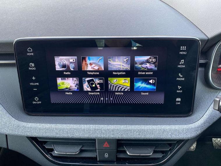 Advanced driver attention and drowsiness monitor, Bluetooth, e-Call (emergency call), Front assist system, PAS, Rear parking sensors, Rear view camera, Speed limiter, Tailgate, Traffic sign recognition, Virtual Cockpit - 10.25" digital display, Voice control system, Wireless smartlink, 4 USB C ports, 8 Speakers, 9.2" Skoda navigation display, DAB radio, Auto dimming rear view mirror, Automatic headlamp activation with Coming home and Leaving home feature, Automatic high/low beam, Body colour bumpers, Body colour door mirrors and handles, Chrome moulding around grille, Front and rear electric windows, Full LED headlights, Heated rear window, LED 3rd brake light, LED brake lights, LED daytime running lights, LED front turning lights, LED high beam, LED low beam, LED taillights, Rear LED fog light, Rear side wing doors, Rear wiper, Tinted windows, Unique dark chrome design logo on alloy wheels, 12V socket in luggage compartment, 3 seat bench in 2nd row, Black / Grey armrest stitching, Black hotstamping, Cargo elements, Chrome inner door handles, Door inserts in satin black, Driver and passenger sun visors with vanity mirror, Dual zone climate control, Front and rear roof lights, Front centre armrest, Front head restraints, Glasses storage in roof liner, Height adjustable driver seat, Height adjustable passenger seat, Ice scraper, Illuminated glove compartment, Inner circulation control with pollen filter, ISOFIX for front passenger seat, Isofix preparation for back seats, Leather gearknob and handbrake lever, Loft cloth upholstery, Luggage net under rear parcel shelf, Manual lumbar support for front seats, Net package and top tether hooks in boot space, Pearl grey ceiling, Pocket on the back of both front seats, incl. mobile phone pockets, Single front passenger seat, Skoda lettering on steering wheel, Textile floor mats, Third rear headrest, Ticket holder, Top tether for front passenger seat, Umbrella in driver's door, 3x3 point rear seatbelts, ABS, Child locks, Curtain airbags and front side airbags, Disc brakes, Driver and front passenger airbags, ESP, Hill hold control, Manual leather parking brake, One tone horn, Passenger airbag switch off function, Seatbelt reminder for driver and front passenger, Tyre pressure monitoring system, Anti theft alarm system with interior monitoring, backup horn and towing protection, Anti-theft wheel bolts, Remote central locking with 2 remote folding keys, SAFE function for remote central locking, Decord pad, door inserts Kota uni,