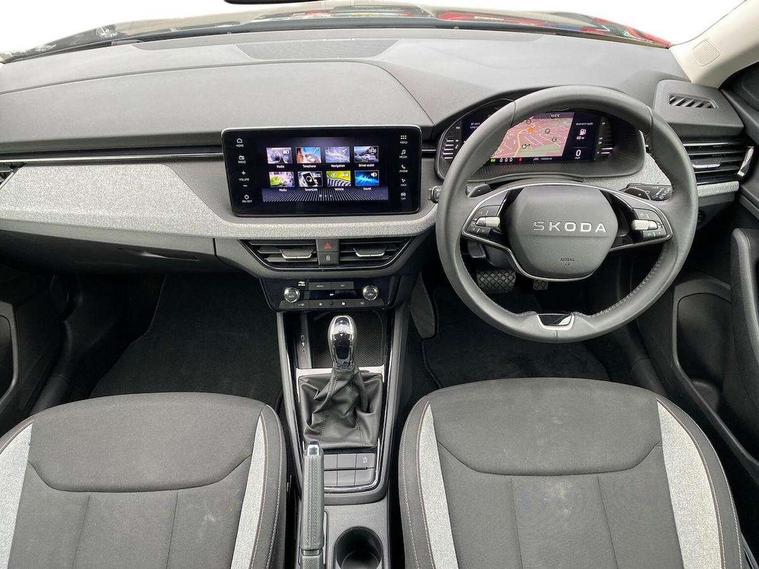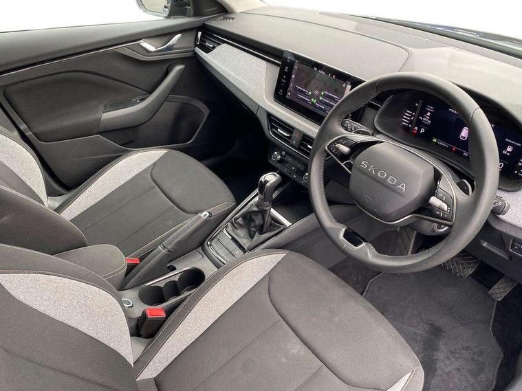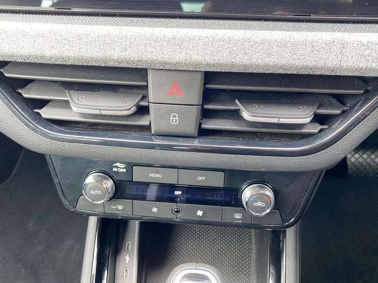 Advanced driver attention and drowsiness monitor, Bluetooth, e-Call (emergency call), Front assist system, PAS, Rear parking sensors, Rear view camera, Speed limiter, Tailgate, Traffic sign recognition, Virtual Cockpit - 10.25" digital display, Voice control system, Wireless smartlink, 4 USB C ports, 8 Speakers, 9.2" Skoda navigation display, DAB radio, Auto dimming rear view mirror, Automatic headlamp activation with Coming home and Leaving home feature, Automatic high/low beam, Body colour bumpers, Body colour door mirrors and handles, Chrome moulding around grille, Front and rear electric windows, Full LED headlights, Heated rear window, LED 3rd brake light, LED brake lights, LED daytime running lights, LED front turning lights, LED high beam, LED low beam, LED taillights, Rear LED fog light, Rear side wing doors, Rear wiper, Tinted windows, Unique dark chrome design logo on alloy wheels, 12V socket in luggage compartment, 3 seat bench in 2nd row, Black / Grey armrest stitching, Black hotstamping, Cargo elements, Chrome inner door handles, Door inserts in satin black, Driver and passenger sun visors with vanity mirror, Dual zone climate control, Front and rear roof lights, Front centre armrest, Front head restraints, Glasses storage in roof liner, Height adjustable driver seat, Height adjustable passenger seat, Ice scraper, Illuminated glove compartment, Inner circulation control with pollen filter, ISOFIX for front passenger seat, Isofix preparation for back seats, Leather gearknob and handbrake lever, Loft cloth upholstery, Luggage net under rear parcel shelf, Manual lumbar support for front seats, Net package and top tether hooks in boot space, Pearl grey ceiling, Pocket on the back of both front seats, incl. mobile phone pockets, Single front passenger seat, Skoda lettering on steering wheel, Textile floor mats, Third rear headrest, Ticket holder, Top tether for front passenger seat, Umbrella in driver's door, 3x3 point rear seatbelts, ABS, Child locks, Curtain airbags and front side airbags, Disc brakes, Driver and front passenger airbags, ESP, Hill hold control, Manual leather parking brake, One tone horn, Passenger airbag switch off function, Seatbelt reminder for driver and front passenger, Tyre pressure monitoring system, Anti theft alarm system with interior monitoring, backup horn and towing protection, Anti-theft wheel bolts, Remote central locking with 2 remote folding keys, SAFE function for remote central locking, Decord pad, door inserts Kota uni,