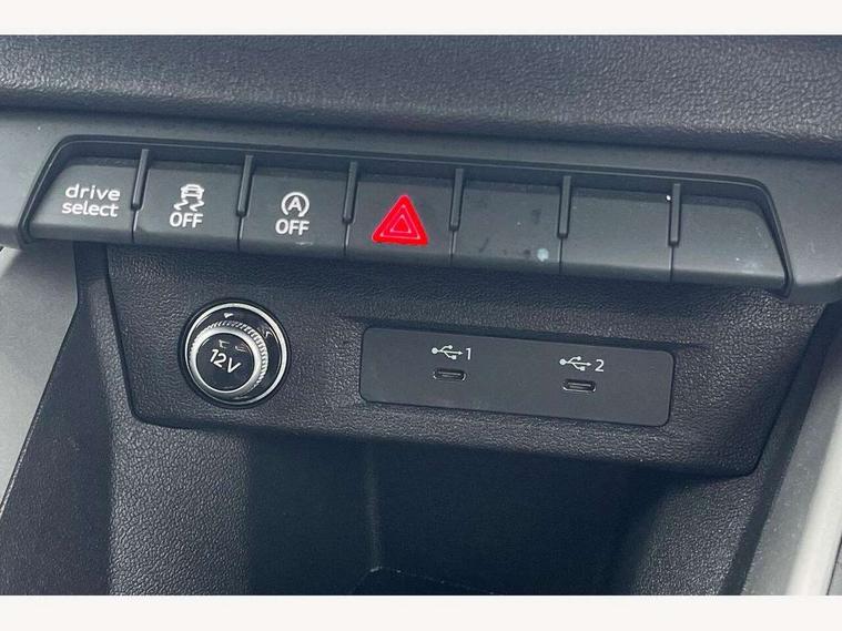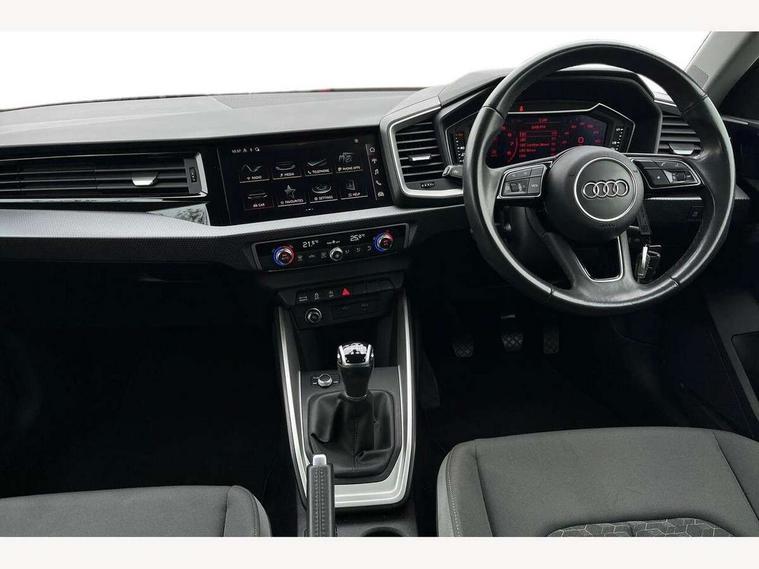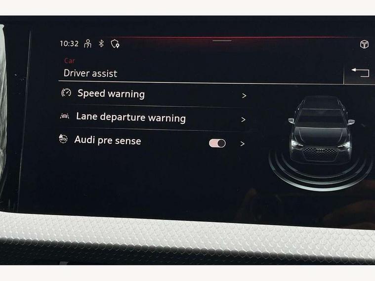 10.25" Digital instrument cluster display classis style instrument dials + speed, odometer, time, outside temperature, telephone menu + fuel level warning, Audi drive select - power steering assistance + engine, Audi smartphone interface with connect compatible smartphone via USB directly MMI display + Nav, music, third party apps controlled via MMI controller, Automatic start/stop system, Bluetooth interface, Cruise control, Driver's information system, Electromechanical power steering, Emergency e-call, Lane departure warning system, Rear parking sensor, Service interval indicator, Speed limiter, Voice control system, Washer fluid level indicator, Dynamic suspension, 2 x USB type C connection points, 6 passive loudspeakers, DAB Digital radio, MMI radio plus with 10.1" colour MMI display screen and MMI touch, Auto dimming rear view mirror, Body coloured bumpers, Body coloured door mirrors, Electric front and rear windows, Electrically adjustable, heated, folding door mirrors with integrated LED side indicator, Front side air inlets in grained matt black and C frame in anthracite black, Heat insulating glass windscreen and side windows, Heated rear windscreen, High level LED brake light, LED headlights with LED rear lights + dynamic rear indicators + headlight adjustment and high beam, turning light + LED daytime running lights, Radiator grille and rear diffuser in matt anthracite black, Radiator protective grille frame in matt aluminium silver, Rain and light sensors, Rear fog lights, Rear side wing doors, Rear wiper, Side front spoiler lips in grained matt black, 12V socket in centre console with two cup holders, 3 rear seats with headrests, 3 seat bench in 2nd row, 3 spoke leather multifunction plus steering wheel, 40:60 Split folding rear seat or folded fully, Black front and rear floor mats, Door sill trims with aluminium inlay, Driver and passenger seat with manual height adjust with forward and backwards adjustment, Front head restraints, Front passenger seat, Grey cloth headlining, Height and reach adjustable steering wheel, ISOFIX child seat mounting for front passenger and outer rear seats including top tether attachment point of outer rear seats, Leather gear knob with aluminium trim, Leatherette handbrake grip, Luggage compartment light with front and rear reading lights, Manual air conditioning, Manually adjustable lumbar support in front seats, Novum cloth upholstery with front sport seats, Luggage compartment pack - A1, 3x3 point rear seatbelts, Audi pre-sense front with pedestrain and cyclist recognition, Brake assist function, Driver and front passenger airbag with front side and head airbags, Electronic Stability Control including ABS, EBD, ASR and EDL, Front passenger airbag deactivation switch, Hill hold assist, Manual rear child locks, Seatbelt height adjustment for front seats, Seatbelt monitoring, Tyre pressure warning light, Warning triangle and first aid kit, Anti theft alarm, Anti theft wheel bolts and loose wheel warning, Immobiliser, Remote central locking with 2 foldaway keys, Aluminium trim for control switches, air vents and digital instrument cluster, Black dashboard, Silver grey accent areas including air vents, door handle recesses and centre console in diamond paint finish, Slate grey inlays polygon structure in fine paint finish,