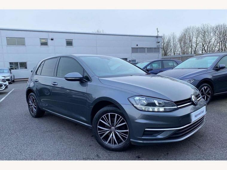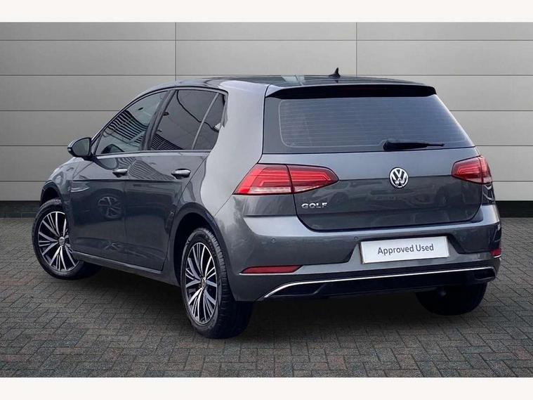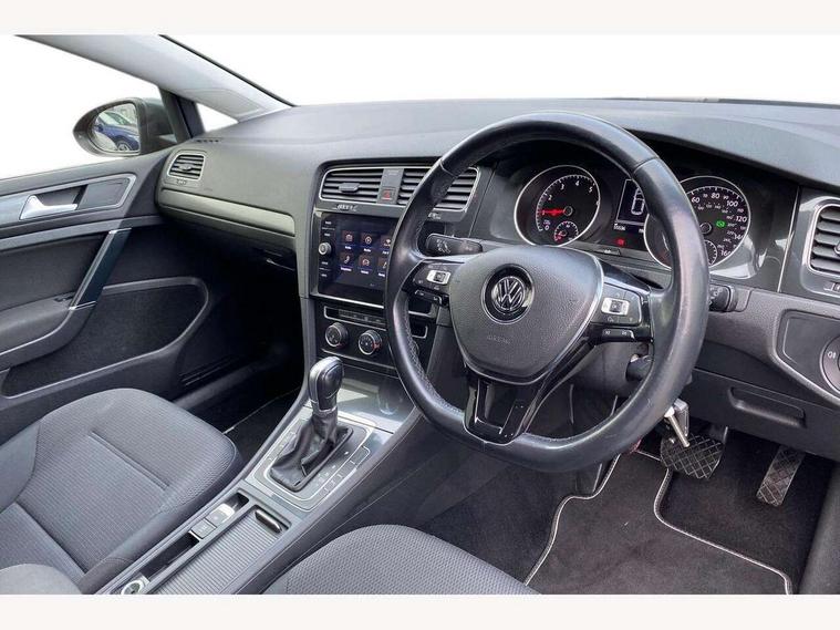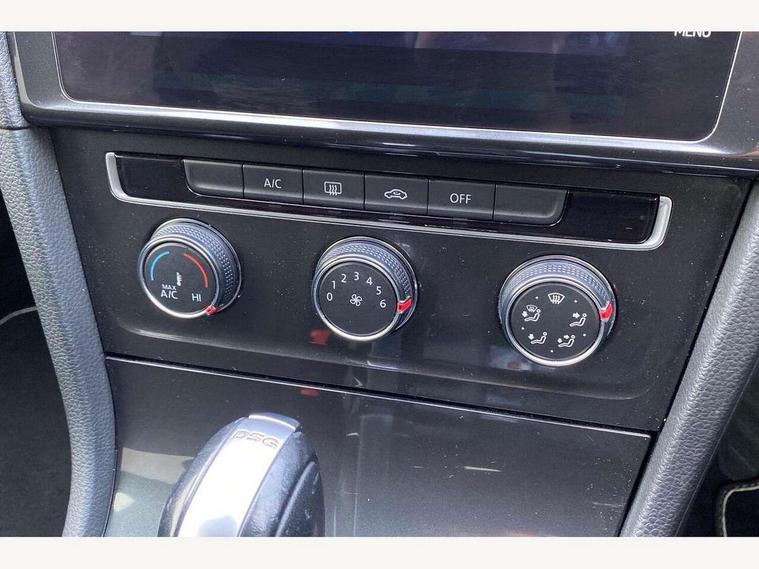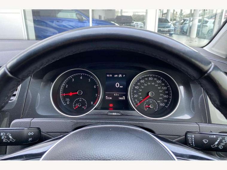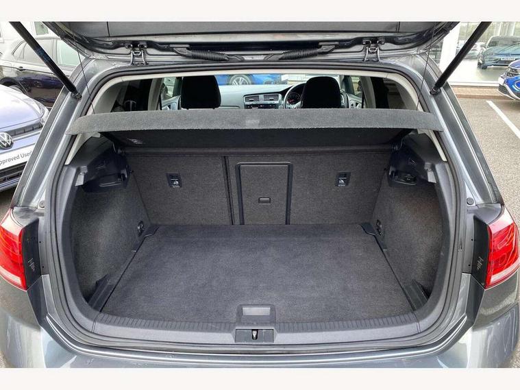 'Lights On' Reminder warning buzzer, 8" touch screen, Adaptive Cruise Control with pedestrian detection and speed limiter, App-Connect, Bluetooth hands free telephone connection, Brake pad wear indicator warning light, Driver alert system, Driver profile selection, Exterior temperature gauge, Front assistant collision mitigation, Instrument cluster in white, Multifunction computer, PAS - speed related, Rev counter, Trip and service interval display, Ultrasonic front and rear optical and audible parking sensors, Warning buzzer and light for front seatbelts unfastened, XDS electronic differential lock, CD/MP3/WMA, USB and SD card reader, aux-in, Composition media system, DAB Digital radio, Auto dimming rear view mirror, Automatic coming/leaving home lighting function, Automatic headlights, Black front air intake and radiator grille with chrome insert, Black rear diffuser, Body colour bumpers, Body colour door handles, Body colour door mirrors, Electric front windows, Electric rear windows, Electrically adjustable and heated door mirrors, Heated rear windscreen, LED daytime running lights, LED rear lights, Rain sensor, Rear roof spoiler, Rear windscreen washer and wiper with interval delay, 12V socket in luggage compartment, 3 rear headrests, 3 spoke steering wheel, 60/40 split folding rear seat, Bag hook in luggage compartment, Boot lashing points, Cooled glovebox, Courtesy light delay, Cover for storage compartment in centre, Dust/pollen filter, Front and rear reading lights, Front centre armrest with storage box and rear air vents, Front passenger seat height adjust, Front seat back storage pockets, Grab handles, Height adjustable driver's seat, Height/reach adjust steering wheel, Illuminated vanity mirrors, Isofix preparation for 2 rear child seats, Load through provision with rear centre armrest and cupholders x2, Luggage compartment cover, Luggage compartment lighting, Multifunction leather steering wheel with leather gear knob/handbrake grip, Overhead storage box, Pearl grey headlining, Storage box in luggage compartment, Storage compartments in doors, Sun visors, Variable boot floor, height adjustable and removable, Mirror pack - Golf, 3 point height adj front seatbelts + pretensioners, 3 rear 3 point seatbelts, ABS, Automatic post collision braking, Child locks on rear doors, Driver/Front Passenger airbags, Driver/Passenger whiplash optimised head restraints, Drivers knee airbag, Electronic parking brake with auto hold, ESP with EDL + ASR, Front and rear curtain airbags, Front passenger airbag deactivation, Front side airbags, Pre crash system, Tyre pressure monitor, Alarm with interior protection, Electronic engine immobiliser, Remote central locking with 2 remote folding keys, Brushed dark metal decorative inserts in dash and front door panels, Chrome-plated light switch surround, Polar night black centre console, Steel space saver spare wheel,