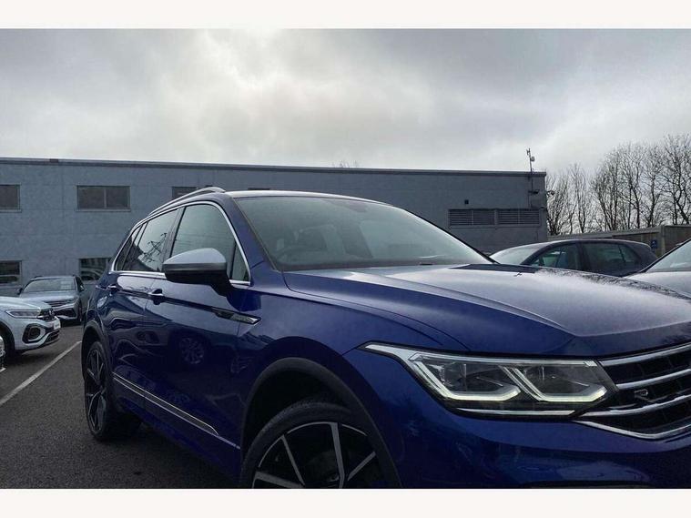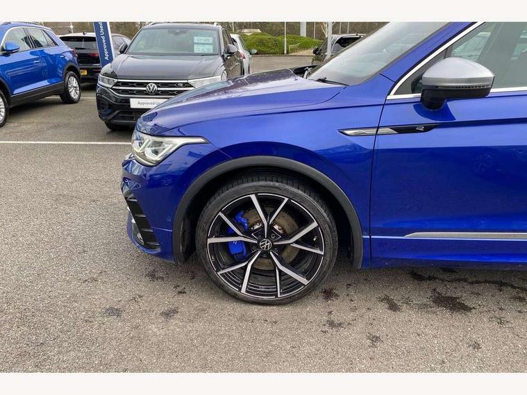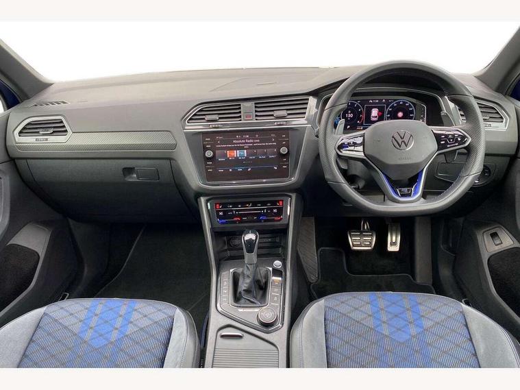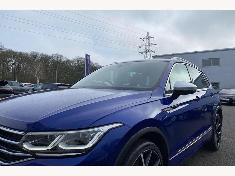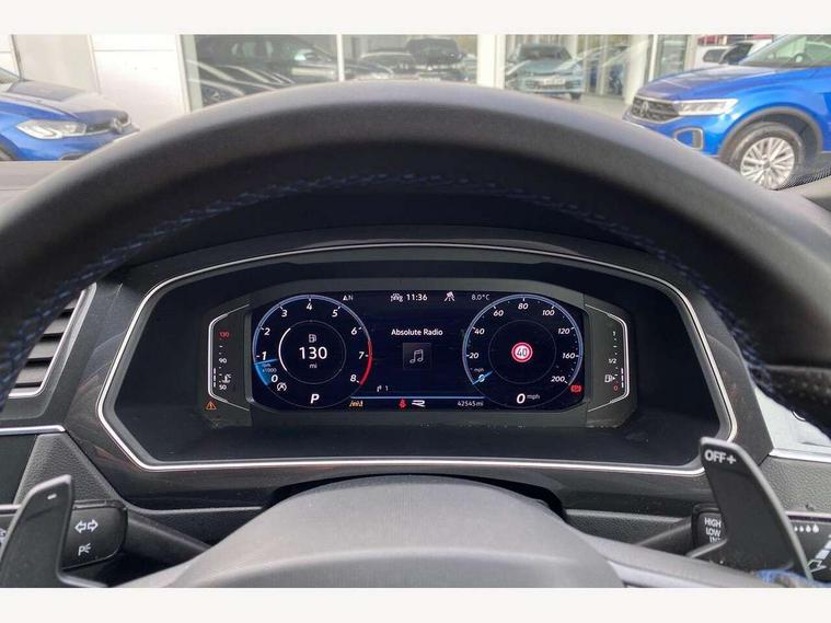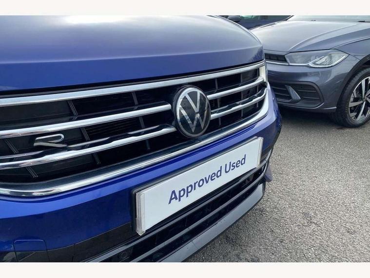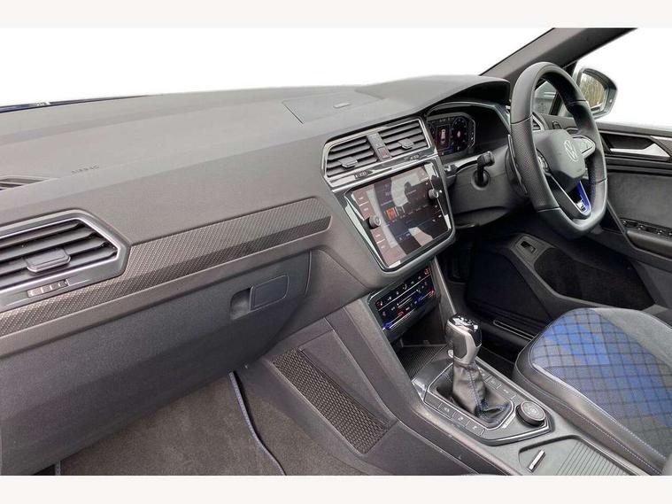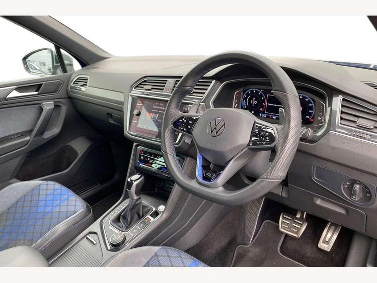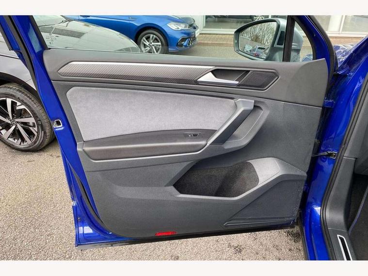 Adaptive cruise control ACC stop and go including speed limiter, App-Connect incl. App-Connect Wireless for Apple CarPlay and Android Auto, Bluetooth phone integration system, Distance control assist, Driver alert system, Driver profile selection, Dynamic road sign display, eCall emergency call system, Electromechanical speed sensitive power steering, Engine start/stop button, Instrument cluster mph speedometer Great Britain, Lane keeping system Lane Assist, Lights on warning, Motorised electric tailgate operated via key fob, drivers door and foot movement under tailgate, Multifunction front facing camera, Outside temperature display, Premium multifunction display with multi colour display, Rev counter, Revision / skills operating concept travel assistant, Service interval indicator, Speed limit display, Start/stop system with regenerative braking, Tailgate/trunk lid unlocking from outside, Trip computer, Warning sound and light for doors and tailgate open, ACC - Adaptive chassis contol with adaptive dampers, All wheel drive - 4Motion, Battery regeneration during braking, XDS electronic differential lock for improved traction and handling, 4 X 20 watt output, 8 Speakers, Diversity antenna for FM reception, SD card slot, Simultaneous pairing of 2 compatible mobile devices, SMS functionality - read, compose and send SMS messages using touch-screen display, Title and cover art display, USB C ports, Auto dimming interior rear view mirror, Automatic headlight control system, Body colour door handles, Body coloured door mirrors with integrated indicators, Chrome matt mirror covers, Chrome moldings on the side windows, Coming/leaving home lighting function, Dynamic headlight range control, Front and rear electric windows, Front illuminated door sills with R logo, Heated rear window, High level 3rd brake light, IQ light-Adv high beam, Dynamic light assist for LED matrix headlamp+LED separate DRL+DCL, dark red rear LED tech, Poor weather light+ cornering light, Laminated safety glass windshield, heat and sound insulating, LED rear number plate lights, License plate carrier in front and rear, Poor weather light and cornering light, Privacy glass for rear side windows and rear window, R-Logo light projection, R-Logo on radiator grille with side panels and rear, R-specific diffuser, painted black with cut out for trailer hitch, R-Specific front and rear bumpers, Rain sensor windscreen wipers, Rear fog lamp, Rear side wing doors, Rear spoiler in R style, Rear windscreen washer and wiper with interval delay, Side and rear windows in heat insulating glass, Silver anodised roof rails, Trailer Stability Programme, Windscreen wipers/ intermittent wipe + 4 position delay, 12V outlet in center console rear and in luggage compartment, 12V outlet in front and tray, 2 cup holders in front, 2 LED front reading lights, 2 LED rear reading lights, 3 bench rear seats in 2nd row, 3 rear headrests, 4 load lashing points, 40:20:40 split folding rear seats, Air Care Climatronic 3 zone automatic climate control with enhanced air filter and controls in the rear, Backrest release for left front seat, Black headlining, Climate control unit rear with touch function, Door and side trim panel in foam film, insert in leatherette, Floor mats with R-Logo and stitching, Front centre armrest, Front footwell illumination, Front seats head restraints (x-adjustment), Height adjustable front seats, Height/reach adjust steering wheel, Instrument lighting white adjustable panel illumination, Interior light with delay, Isofix Preparation 2 Rear child seats, Leather gear knob, Lighting door sill trim at front with R Logo, Lockable cooled glovebox, Luggage compartment lighting, Luggage net, Pedals and footrest in stainless steel, R Specific key caps, R-specific sport skin with R Logo in active Info dsiplay, R-taster (direct selection of race mode/ flap control), Rear bench seat asymetrically split folding, longitudinally movable and folding with load-through hatch and center armrest, Remote unlocking for rear seat backrest, Removable luggage cover, Removable rear headrests, Safety optimised front head restraints, Single front passenger seat, Sliding/reclining rear seats, Standard rear seat release, Storage compartment in driver's door, Storage compartment in passenger's door, Storage compartment in rear doors, Storage compartments in luggage area left and right, Storage tray on dashboard, Sun visors with illuminated vanity mirrors, Top sports seats integrated headrest, blue R-Logo in front seats, seat centre panels and outer rear seats in fabric inner side bolster art Velors, Variable boot floor, height adjustable and removable, Easy open and close pack with safelock - Tiguan, 3 point seat belt for centre rear seats, 3 point seat belts with seat belt pretensioners for the outer rear seats, Active bonnet, Curtain airbags for front and rear passengers, Driver/Front Passenger airbags, Drivers knee airbag, Electronic parking brake with auto hold, Electronic Stability Control with driver steering recommendation, ABS, ASR, EDL, EDTC and trailer stabilization, Front assist with autonomous emergency braking (for Adaptive Cruise Control ACC up to 130 mph), Front disc brakes, Front passenger airbag deactivation, Front side airbags, Height adjustable front 3 point seatbelts + pretensioners, Hill hold control, Manual child proof rear door locks, Pedestrian monitoring system, Power assisted brakes, Proactive passenger protection system in combination with front assist, Rear disc brakes, Rigid safety cell with front and rear crumple zones, Two tone horn, Tyre pressure monitoring system, Warning sound and light for front seat belts if unfastened, Anti theft alarm system with interior monitoring, backup horn and towing protection, Anti theft wheel bolts, Central locking system with safelock radio remote control and 2 remote control folding keys, Electronic engine immobiliser, Tool kit, Tyre mobility kit Includes 12V compressor and tyre sealant,