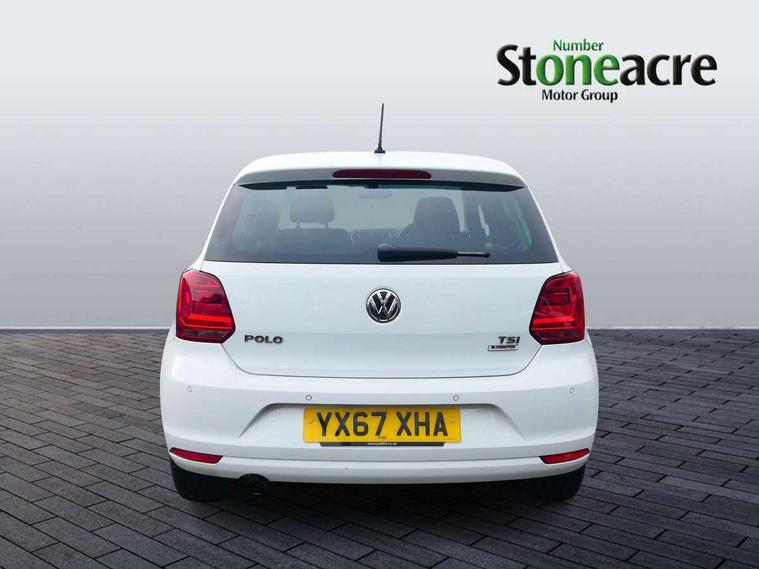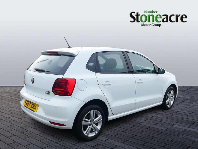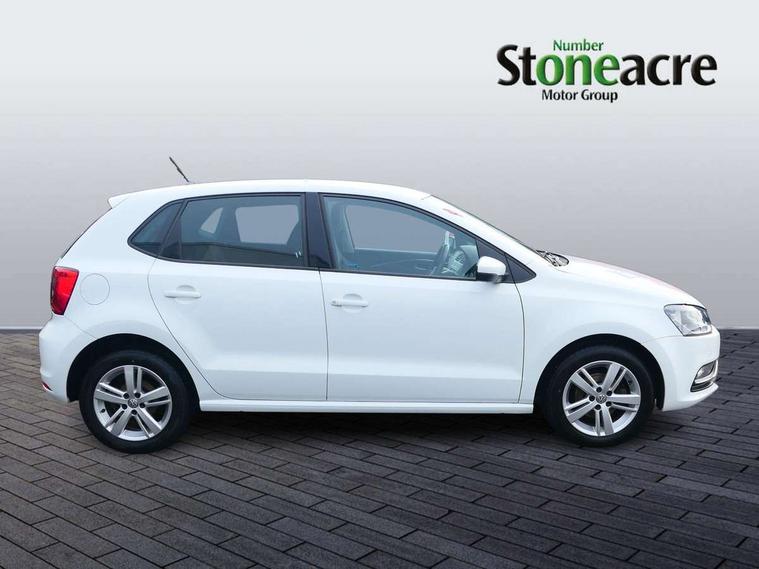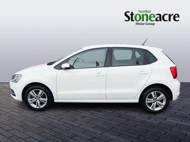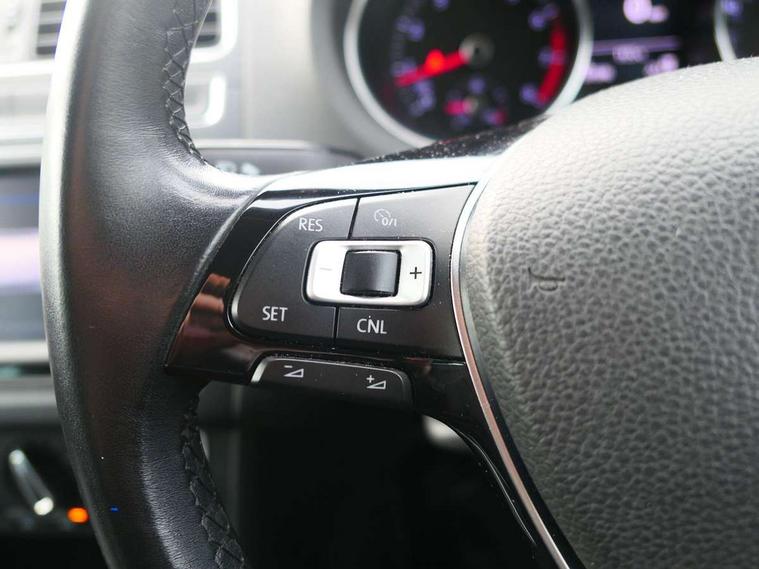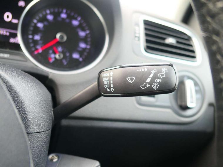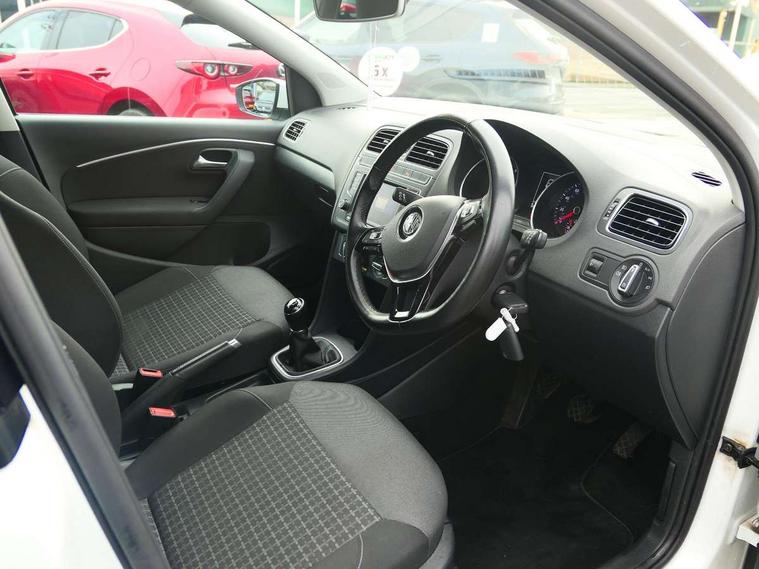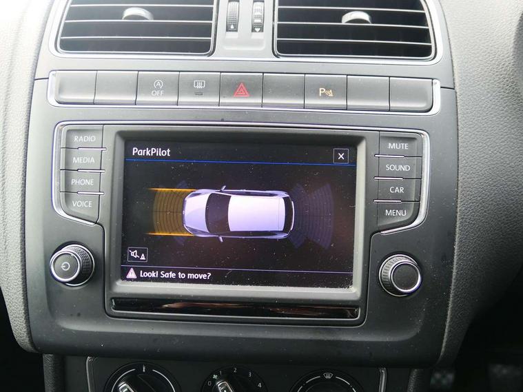 App-Connect, Bluetooth Telephone preparation, Driver alert system, Multi function display, Multifunction computer, PAS - speed related, Service interval indicator, Ultrasonic front and rear optical and audible parking sensors, Warning buzzer and light for front seatbelts unfastened, 6 speakers, Composition media system with radio, glovebox mounted CD, colour touch screen, SD card, aux-in, USB, multimedia interface, DAB Digital radio, Black grille with chrome surround, Body colour bumpers, Body colour door handles, Body colour door mirrors, Body coloured side sills, Chrome trimmed front air intake surrounds, Electric folding door mirrors, Electric front windows, Electric operated/heated door mirrors, Front fog lights with static cornering function, Front wash/wipe with interval delay, Heat insulated tinted glass 65% light absorbing from B pillar back, Heated rear window with auto timer, Rear electric windows, Rear windscreen washer and wiper with interval delay, 12V power socket in centre console, 2 bag hooks in luggage compartment, 2 cupholders, 3 rear head restraints, 3 spoke steering wheel, 4 grab handles, 60/40 split folding rear seat, Centre console storage, Chrome interior door handles, Driver and passenger sunvisors, Driver seat height adjust, Dust/pollen filter, Front door pockets, Front passenger seat height adjust, Front seat backrest storage nets, Front/rear reading lights, Glovebox, Height/reach adjustable steering column, Illuminated vanity mirror, Interior light with delay, Isofix Preparation 2 Rear child seats, Luggage compartment cover, removable, Luggage compartment lighting, Matt chrome gear lever gaiter surround, Multifunction leather steering wheel with leather gear knob/handbrake grip, Storage compartment in front doors, Storage compartment in rear doors, Sunglasses holder, Variable boot floor, Light and sight pack - Polo, 3 point height adj front seatbelts + pretensioners, 3x3 point rear seatbelts, ABS, Automatic post collision braking, Driver/front passenger airbag, Driver/Passenger whiplash optimised head restraints, ESC - Electronic Stability Control + traction control, ESP with EDL + ASR, Hill hold control, Hydraulic Brake Assist (HBA), Tyre pressure monitoring system, Alarm with remote central locking and interior protection, Electronic engine immobiliser, Air vents in Matt chrome, Matt chrome interior trim, 15" steel spare wheel,