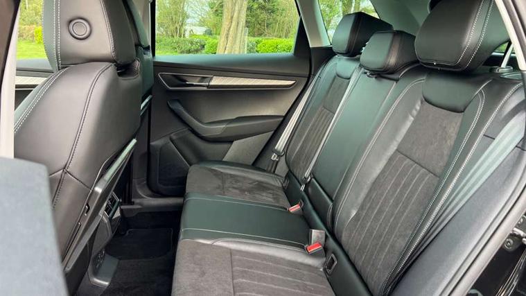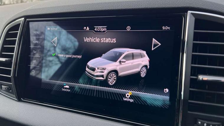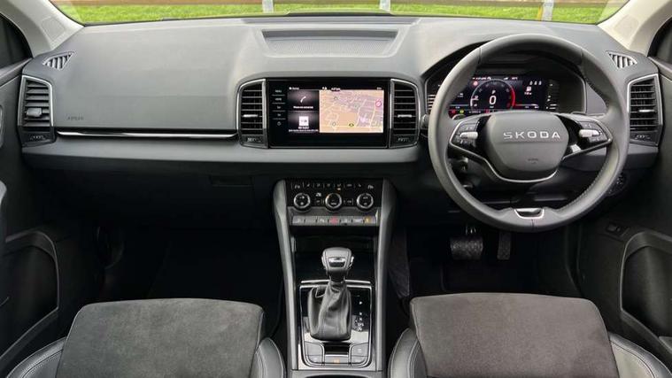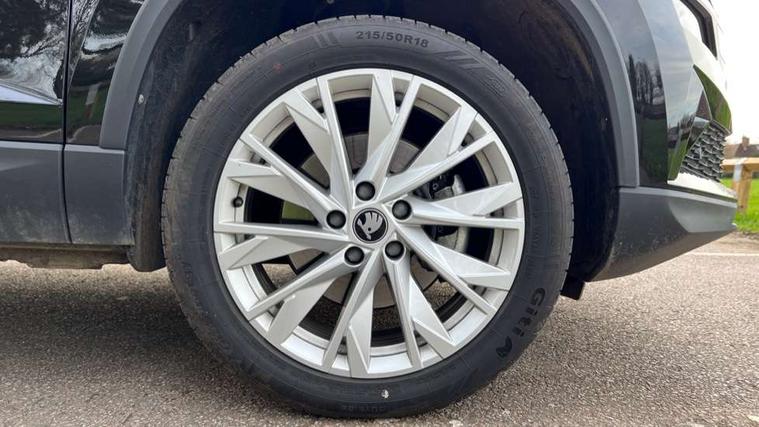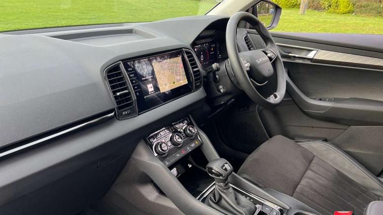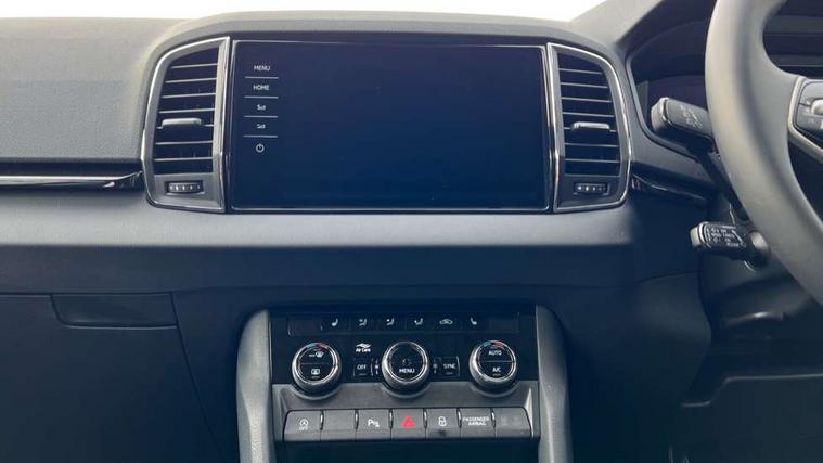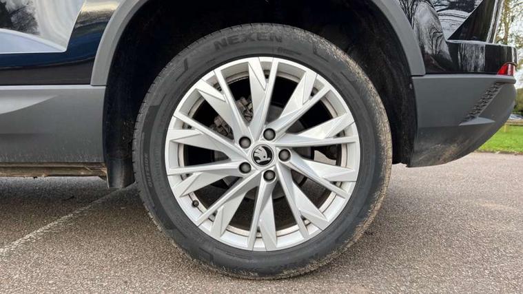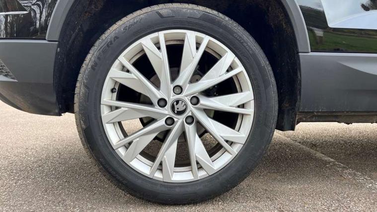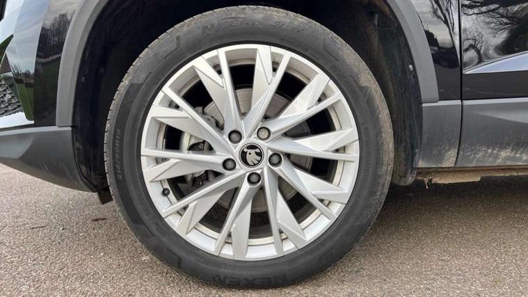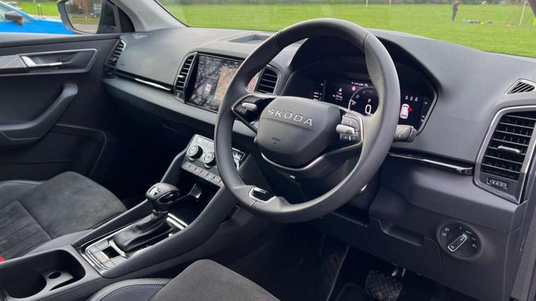 Advanced driver attention and drowsiness monitor, Drive Mode Selection including ECO function, Electro-mechanical PAS, Emergency services call system, Outside temperature gauge, Sensor for driver assistance systems, Service interval indicator, SmartLink wireless for Apple and wired for Android, Start/stop system with regenerative braking, Traffic sign recognition, USB C Port x 2 in front centre console, Virtual Cockpit - 10.25" digital display, Virtual pedal with electrically operated boot door, Wireless smartphone charging, DAB radio with Bluetooth, USB connection, Acoustic glass, Aero front windscreen wipers with intermittent function, Auto dimming rear view mirror with light and rain sensors, Black electric window control buttons, Body colour door mirrors and handles, Electric front and rear windows with child proof lock, Extended rear roof spoiler, Heated rear windscreen, LED daytime running lights, LED rear lights with high functionality welcome effect and dynamic indicators, Light assistant (coming/leaving home/tunnel light), Plastic scuff plates in door apertures, Privacy glass, Rear side wing doors, Rear window wiper with washer system and intermittent control, Safety reflectors on front doors, Third brake light, Unique dark chrome design logo on alloy wheels, 1.5 litre bottle holders in driver and front passenger door panels, 12V socket in boot, 12v socket in front centre armrest with storage compartment and rear air vents, 2 spoke leather heated multifunction steering wheel with DSG paddles, 2 x Tablet holder, 3 rear height adjustable headrests, 3 seat bench in 2nd row, 4 foldable roof handles with rear coat hooks, Black floor carpet, Cargo elements in boot, Chrome inner door handles, Decorative door sills with KAROQ badging, Foldable hooks in the boot, Front head restraints, Height adjustable front three point seats belts with tensioners, Height/reach adjust steering wheel, Ice scraper, Illuminated glovebox, Illuminated luggage compartment, Interior noise suppression, Isofix child seat preparation for front passenger seat, Isofix child seat preparation outer rear, Manual lumbar support for front seats, Pearl grey interior ceiling, Pen holder, Pollen filter, Rear boot cover, Rear package tray, Rear reading lights, Rubbish bin door, Safety vest holder, Single front passenger seat, Skoda lettering on steering wheel, Storage box in upper central dashboard closed, Sunvisors with illuminated vanity mirrors, Textile floor mats, Ticket holder, Columbus pack - Karoq, Design Pack - Karoq, Non Smokers pack, Parking pack - Karoq, Automatic door unlocking in case of crash, Automatic fuel cut off in case of crash, Driver airbag, Electronic parking brake with auto hold function, Emergency rear braking signal, ESC (incl. ABS+MSR+ASR+EDS+HBA+DSR+RBS+MKB), Front side airbags, Head airbags, Hill hold control, Knee airbags, Passenger airbag with switch-off function, Pedestrian monitor, Power operated child safety locks, Seatbelt reminder signalisation and pretensioner for all seats, Three point seatbelts rear, Two tone horn, Tyre pressure monitor, Alarm with interior monitoring, back up horn and tilt sensor with safe function, Electronic engine immobiliser, Keyless entry and start/stop, Remote central locking with 2 remote folding keys, Black centre console, Chrome framed air vents, Satin black dashboard, Anti-theft wheel bolts protection, Breakdown and tool kit,