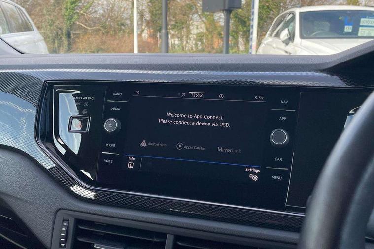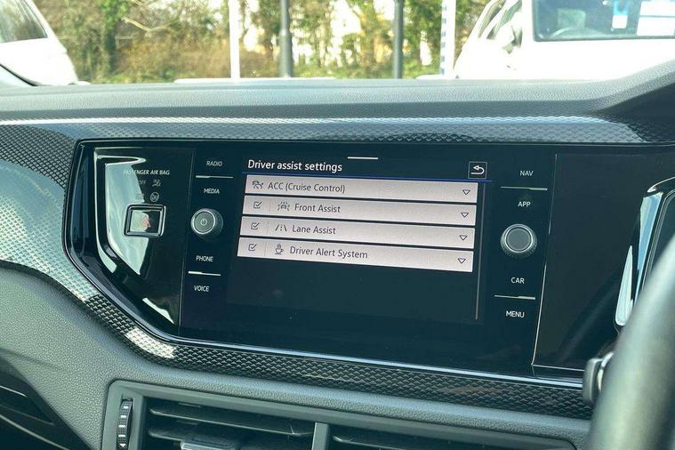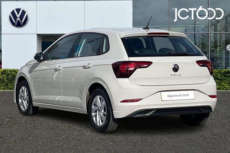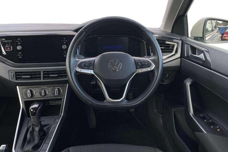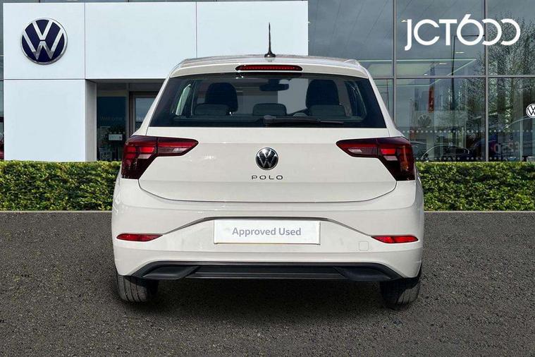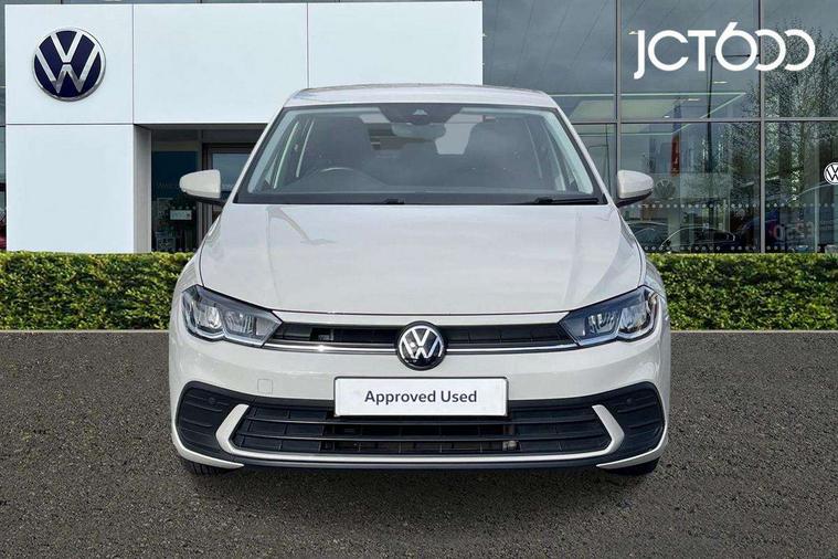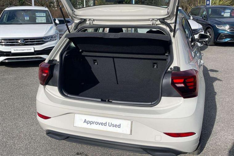 Lava stone black gloss/matt decorative inserts in dash and front door panels, Light and vision pack - Polo, Low rolling resistance tyres, Alarm with interior protection, Anti-theft alarm system with interior monitoring, backup horn, and towing protection, Anti-theft wheel bolts, Electronic engine immobiliser, DAB Digital radio, Diversity antenna for FM reception, 3 point height adj front seatbelts + pretensioners, 3x3 point rear seatbelts, ABS, Driver and front passenger airbag with front passenger airbag deactivation, Drivers and front passengers safety optimised head restraints, ESC (Electronic stability control) + EDL (Electronic Differntial lock) and ASR (Traction control), Extended and predictive pedestrian/ cyclist protection, Front curtain and side airbags with center airbag, Front disc brakes, Hill hold control, Manual child lock in rear doors, Rear drum brakes, Single tone horn, Tyre pressure loss indicator, Automatic dimming interior rear view mirror, Body colour bumpers, Body colour door handles, Body colour door mirrors, Chrome plated radiator grille inserts, air vent surrounds and light switch surrounds, Electric front windows, Heat insulating glass in side and rear windows, Heat insulating glass windscreen, Power folding adjustable/heated exterior mirrors and front passenger exterior mirror lowering function, Rain sensor, Rear electric windows, Rear fog light, Rear side wing doors, Rear windscreen washer and wiper with interval delay, Third brake light, 12V power socket in centre console, 2 front and 2 rear reading lights, 2 USB-C ports in the front, 2 USB-C charging sockets on the center console in the rear, 3 rear head restraints, 60/40 split folding rear seat and rear seat bench not split, Ceramique headliner, Door and side trim panel, Driver and front passenger seat height adjustment, Driver/passenger sunvisors with illuminated vanity mirrors, Front centre armrest, Front seat backrest storage pockets, Front standard seats, Handbrake lever handle in leather, Hartley/Thomas cloth upholstery, Isofix child seat preparation easy-fit (for two outer rear seats, and front passenger seat) compatible with I-size, Leather trimmed gear knob, Luggage compartment cover, Luggage compartment floor, Luggage compartment lighting, Single front passenger seat, Standard pedal cluster, Three spoke leather wrapped multifunction steering wheel with shifting paddles, Adaptive cruise control with follow-to-stop and speed limiter, Bluetooth mobile phone interface, Driver alert system, Emergency call service, Front assist system, Power assisted speed sensitive steering, Preparation for We connect and We connect plus, Speedo and rev counter, electronic odometer, trip, service interval display and fuel gauge, Standard rear axle, Travel Assist - Lane keeping system and traffic jam assist, Travel assist including emergency assist, Trip computer, Warning signal and warning light for front and rear seatbelts not fastened, Washer fluid level indicator, Wireless app connect, Front wheel drive, Rear shock absorpion, Start-stop system with battery regeneration (recuperation - energy recovery during braking),