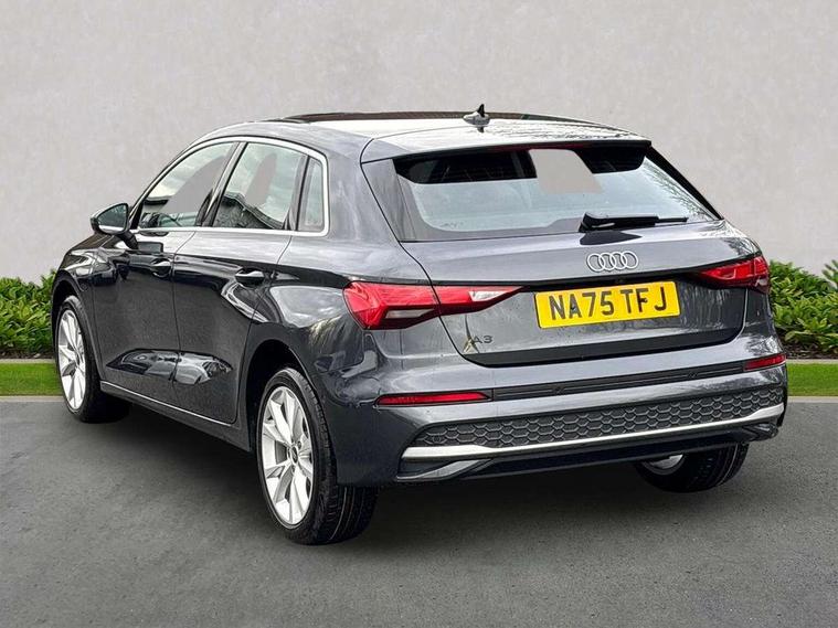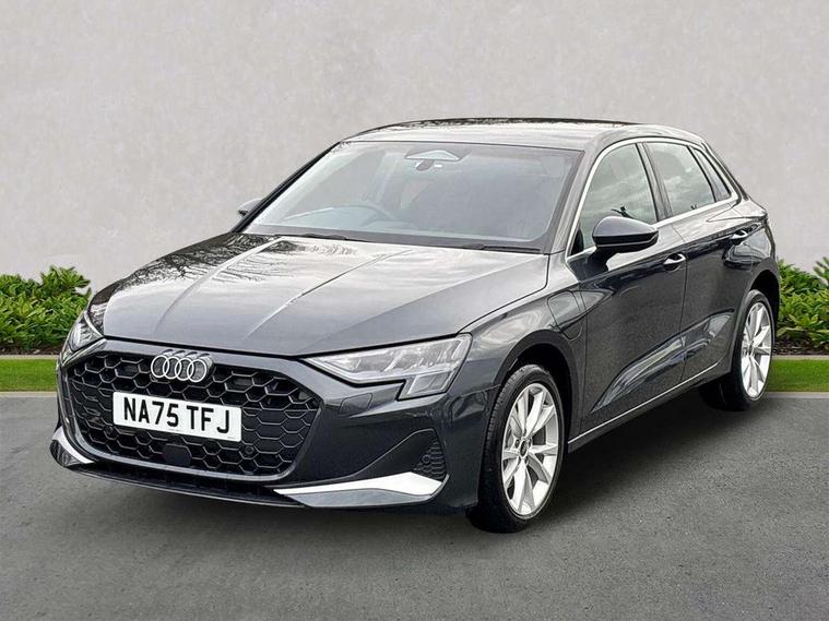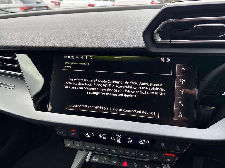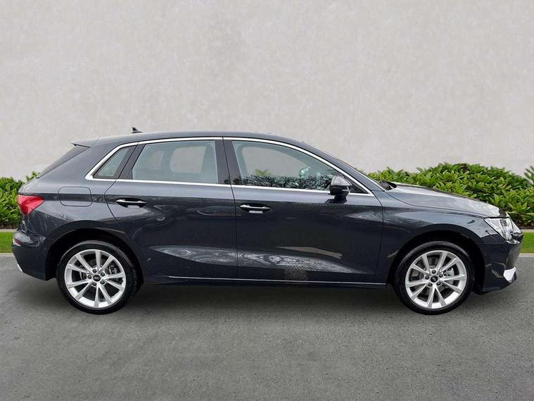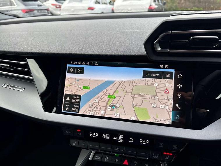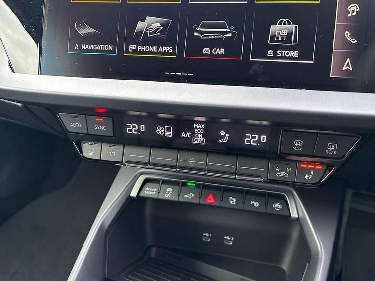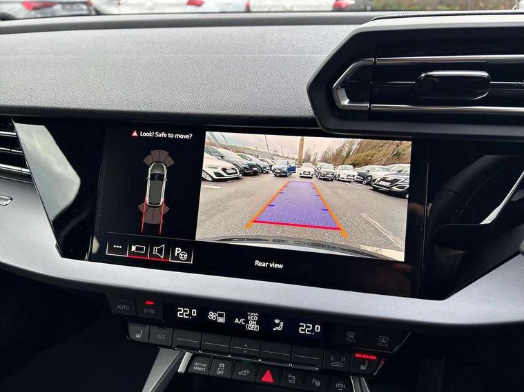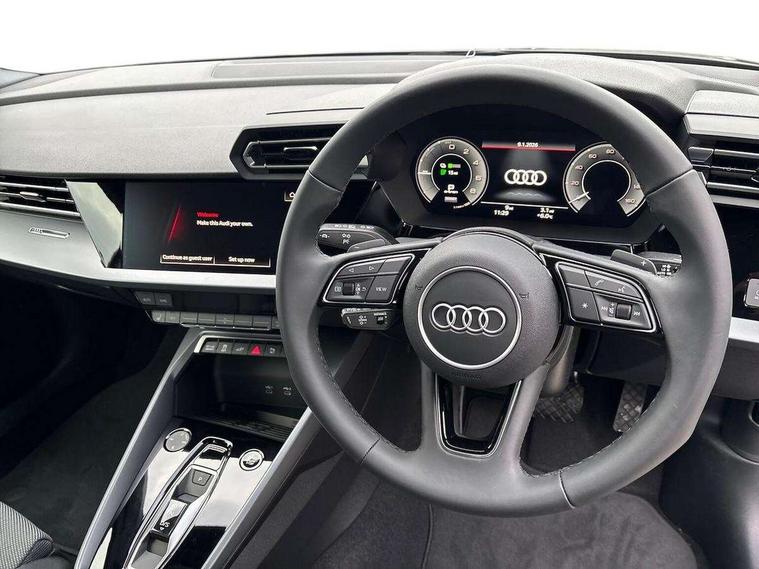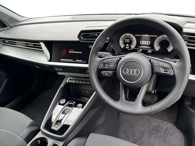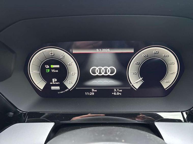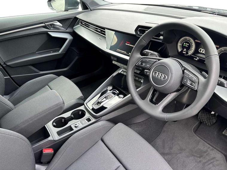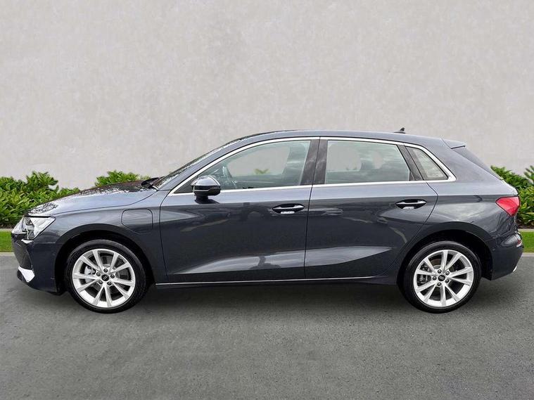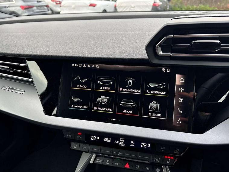 Adaptive cruise control (ACC), Adjustable speed limiter, Audi drive select (Auto, Comfort, Dynamic, Efficiency and Individual), Audi virtual cockpit plus - 12.3" full HD resolution dynamic digital instrument cluster, Automatic start/stop system with recuperation, Bluetooth interface, Camera based traffic sign recognition, Collision avoidance assistant, Driver attention and fatigue detection, e-Call (emergency call), Electromechanical power speed sensitive steering, Emergency assist, Intersection assist, Lane departure warning system, MMI Navigation Plus with high resolution 10.1" colour touch screen display, Park Assist with parking system Plus, Reversing camera, Service indicator, Smartphone interface with app store includes wireless Apple carplay, Android auto and Amazon alexa integration, Trip computer, Voice control system with natural language interaction, CCS socket for DC charging, Charging cable for public charging, mode 3 (type 2), 32 A, Standard suspension, Type 2 socket for AC charging, Audi Phonebox light with wireless charging, Audi sound system - 10 loudspeakers including centre loudspeaker and subwoofer, DAB Digital radio, USB ports with charging function in the rear, 3rd brake light, Acoustic glass windscreen, Aluminium window trim, Auto dimming frameless rear view mirror, Body colour exterior mirrors, Body colour roof spoiler, Electrically adjustable/heated/folding/auto dimming door mirrors with integrated LED indications + kerb view function for passenger side, Exterior model badging, Front electric windows, Front radiator grill in high gloss dark chrome, Front side air inlets in grained matt black with silver frame, Heat insulating glass windscreen, Invisible tailpipe, LED daytime running lights, LED headlights and halogen rear lights, Light and rain sensors, Rear diffuser and grill in grained matt black with silver frame, Rear electric windows, Rear side wing doors, Rear window, rear door windows and rear side windows in clear glass, Rear wiper, 12V socket and storage compartment in front centre console, 3 seat bench in 2nd row, 3 spoke leather multifunction steering wheel with gear shift paddles, 3-zone deluxe automatic air conditioning, 4 way electrically adjustable lumbar support for driver and front passenger, 60/40 split folding rear seat bench, Black front and rear floor mats, Convenience auxiliary air conditioning, Front and rear headrests, Front centre armrest, Front door sill trims with aluminium inlay, Heated front seats, Height and reach adjustable steering wheel, i-Size child seat mounting on the front passenger side and outer rear seats, i-Size and top tether on the outer rear seats, Manual boot compartment lid, Manually adjustable front seats, Routine cloth upholstery with front sports seats, Seat side bolsters, Single front passenger seat, Steel grey cloth headlining, Aluminium interior elements pack - A3, LED interior lighting pack -A3, 3x3 point rear seat belts, Acoustic vehicle alerting system, Driver and front passenger airbag with passenger airbag deactivation, Electronic Stabilisation Control (ESC) including ABS, ASR and EDL, First aid kit with warning triangle and 2 safety vests, Front side airbags with head airbags and interaction airbag, Hill hold assist, Pre-sense front with pedestrian and cyclist detection, Seatbelt monitoring, Tyre pressure loss indicator, Anti theft alarm, Anti-theft wheel bolts, Electronically operated child locks, Immobiliser, Black dashboard, Inlays in volcano grey fine paint finish, Tyre repair kit,
