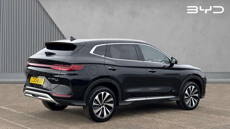 12.3" TFT full LCD instrument panel, 360 camera, Adaptive Cruise Control (ACC) and Intelligent Cruise Control (ICC), Automatic vehicle hold, Blind spot detection, BYD voice control assistant "Hi, BYD", Controller Deceleration Parking (CDP), Drive mode select (Eco, normal, sport, snow), e-Call (emergency call), Electric tailgate release, Emergency Lane Keeping Assist (ELKA), Forward collision warning, Front and rear parking sensors, Front cross traffic alert and front cross traffic brake, Head up Display, Indirect driver fatigue management, Intelligent Speed Limit Control (ISLC), Keyless system entry and start, Lane change assist, Lane Departure Assistant (LDA) and Lane Departure Warning (LDW), Lane departure prevention, PAS, Predictive collision warning, Rear collision warning, Rear cross traffic alert and rear cross traffic brake, Rollover Control System (RMI), Smartphone wireless charging, 2 x 15W, Traffic sign recognition (TSR), Vehicle-to-Load (V2L) function, 11kW on board charger, Mode 3 Type 2 charging cable (3 phase), V2L (Vehicle to load) power strip - Type F, 15.6" Electrically rotatable touchscreen, FM/DAB+ radio, Front USB ports, 1 x 18W Type C, 1 x 60W Type C, Infinity sound system with 10 speakers, Rear USB ports, 2 x 18W Type C, Aluminium roof rails, Auto dimming interior rear view mirror, Auto headlamps (on/off), Dynamic welcome lights, Electric folding and heated door mirrors, Emergency tow hook, Exterior mirror footlights, Follow me home headlights (The headlights turned on in advance and delayed off function), Front windscreen, UV protection, thermal insulation and sound proofing, High beam assist, LED 3rd brake light, LED daytime running lights, LED Headlights, LED taillights, One touch electric front/rear windows with pinch protection, Panoramic sunroof with anti-pinch sensor and electrically adjustable sunshade, Rain sensor windscreen wipers, Rear fog lights, Rear side wing doors, Rear window and rear windscreen with tinted glass, Rear wiper, 12V power outlet, 3 seat bench in 2nd row, 8 way electrically adjustable drivers seat, Adjustable rear headrests, Boot parcel shelf, Driver and passenger sunvisors with illuminated vanity mirrors, Driver seat memory function, Front centre armrest with 2 cupholders, Front LED reading lights, Front passenger seat with 4-way electric adjustment, Front seat footlights, Heat pump, Heated front seats, Heated steering wheel, Integrated headrest in front seats, ISOFIX and i-Size for front passenger and outer rear seats, LED front door lights, Nylon floor mats, PM2.5 air filter, PM2.5 air purification system, Rear air vents, Rear armrest with 2 cupholders, Rear side LED reading lights, Rhythm-reactive multi-colour ambient lighting, Single front passenger seat, Split folding rear seats - 40/60, Vegan leather multifunction steering wheel, Vegan leather upholstery, Ventilated front seats, 3x3 point rear seatbelts, ABS/EBD, Automatic emergency braking system, Brake override system (BOS), Child presence detection, Comfort stop, Door open warning, Driver airbag, Electric parking brake, Force limiting pre-tensioned front seat belts, Front centre airbag, Front passenger airbag, Front passenger airbag deactivation, Front side airbags, Hill descent control, Hill hold control, Hydraulic Brake Assist (HBA), Hydraulic brake boost, Mechanical child safety lock, Rear middle seat force limiting seat belt, Rear seat belt pretensioners, Reflective vest, Side curtain airbags, Traction control system (TCS), Tyre pressure monitoring system (TPMS), Vehicle Dynamics Control System (VDC), Warning triangle, 2 x Smart keys, Anti theft alarm system, Automatic door locking, 19" Bi-colour alloy wheels, Tyre nut covers remover, Tyre repair kit,