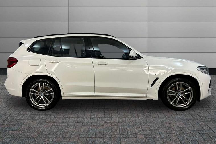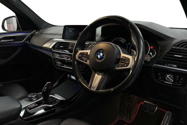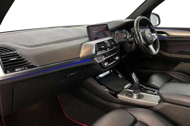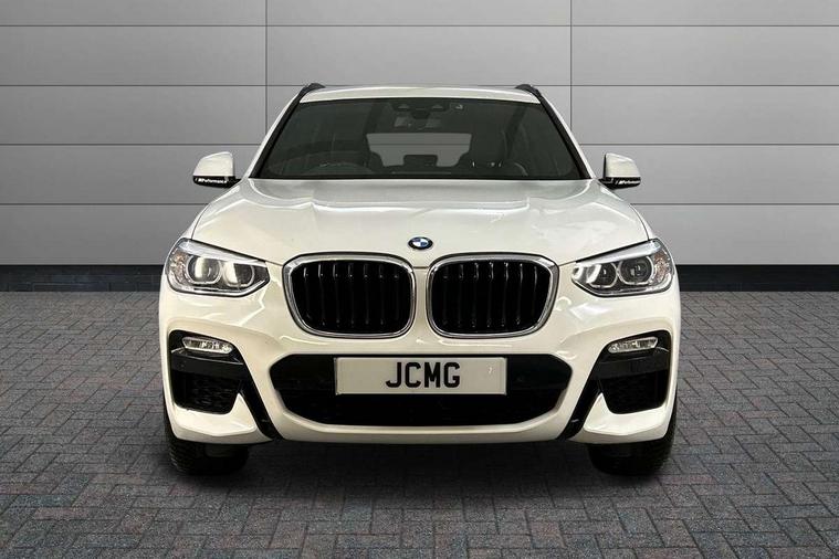 Connected pack professional - X3, 3 rear headrests, Front sports seats, Height adjustable front/rear head restraints, Isofix rear child seat preparation, Slope adjustable rear seats, Through loading system with 40/20/40 split folding rear seat, Low rolling resistance tyres, Body colour electric adjust heated aspherical door mirrors, Direction indicator, side repeaters, integrated in exterior mirrors, Exterior mirrors - electrically folding with anti-dazzle, Interior rear view electrochromatic mirror with automatic anti dazzle function, Central locking switch for all doors, fuel filler cap and luggage compartment, Electronic engine immobiliser, Locking wheel nuts, Remote control including two integrated key - one button for open/close all lockable content, windows and separate button for open luggage compartment, Remote control Thatcham category 1 alarm, Start/stop button with Comfort Go keyless engine start and auto Start/stop deactivation button, Auxiliary socket for external MP3 player, BMW professional radio/CD/MP3, DAB Digital radio, ABS/EBD, ADB - Automatic Differential Brake, Automatic Stability Control (ASC), Battery safety cut-off, BMW emergency call, Brake assist, Brake assist function, Brake drying, Brake energy regeneration, Braking pre-tensioning, CBC - (Cornering brake control), Child locks on rear doors, Crash Sensor - activation of central locking release, hazard warning light and interior lighting, Deactivation of fuel pump in the event of a crash, Driver and front passenger front and side airbags with passenger deactivation and ITS front and rear head airbags, DSC+, Dynamic brake control, Dynamic Traction Control - DTC, Electromechanical parking brake, Front seat belts warning, Hill descent control, Hill start assist, Seatbelt security check for front seats, Side impact protection, Three point seatbelts to all seats with front and outer rear pyrotechnic belt tensioners and seat belt force limiters, Two tone horn, Tyre pressure monitoring system, Ventilated front and rear disc brakes, Warning triangle and first aid kit, Acoustic glazing, Black finish on B pillars, Body colour door handles, Body colour roof mouldings, Body coloured bumpers, Chrome kidney grille with high gloss black vertical slats, Dual chrome exhaust, Fingertip control / anti-trap function on electric window, Front and rear bumper system with replaceable deformation elements, Front and rear electric windows, Green tinted heat insulating glass, Heated windscreen washer jets, High gloss black door sill finishers, High gloss black shadow line roof rails, High gloss shadowline exterior trim in decorative moulding side frame/recess cover/guide rail/B, C pillars/mirror frame and triangle with mirror base, Lightweight engineering, M aerodynamic bodystyling, Model designation, Rain sensor including auto headlights activation, Rear wiper, Shark fin antenna, Visible VIN plate, Windscreen wipers with adjustable interval, Dynamic brake lights, Follow me home headlights, Height adjustable headlamps, High level 3rd brake light incorporating LED Technology, LED front fog lights, LED tail lights, Welcome lighting, 12V socket in centre console and luggage area, 4 lashing points to secure luggage, Ambient lighting, Anthracite headlining, Anthracite Velour floor mats, Driver/passenger sunvisors with ticket holders + illuminated vanity mirrors, Foldable boot floor with storage compartment, Four grab handles integrated in roof lining, Front and rear bottle holders integrated into door trim storage compartments, Front and rear side armrests integrated into door trim, Front centre armrest with storage compartment, Front footwell lights, Front/rear courtesy lights with soft on/off dimming, Front/rear reading lights, Leather gear knob, Luggage area underfloor compartment, Luggage compartment lighting, M Sport multifunction leather steering wheel, Parcel shelf removeable and storable under boot floor, Reach and rake adjustable steering column, Rear centre armrest with 2 cupholders, Rear seat centre armrest with two cupholders, Removable / retractable luggage cover, Storage compartment in rear centre console and front/rear door trims, Toolkit located in luggage compartment, Two front cupholders with removable oddments tray/lid, Vernasca leather upholstery, Active Guard incl speed limiting and lane departure functions with auto steering, and front collision warning with brake intervention, Attentiveness assist, Automatic tailgate operation, BMW Live Cockpit Professional sat nav system including 10.25" high resolution display and Intelligent Voice Assistant, BMW Online services, BMW Teleservices, Brake pad wear indicator in front and rear, Check Control warning system for monitoring of lights and door/luggage compartment open warning, Control display - 6.5" colour display screen, Electric Power Steering (EPS) with Servotronic, Front/rear Parking distance control, iDrive Controller with 8 favourite buttons, Lights on warning by audio warning signal when ignition is switched off, Navigation system - BMW Professional multimedia with Hard disc drive (HDD) and 10.25" touch display, Oil sensor for level and grade, warning by check control system, On board computer - average speed+fuel consumption, service interval, clock/date, odometer/trip meter, outside temperature display and ice warning, Optimum shift indicator, Personal Profile - automatic lock when driving away selectable, Real time traffic information, Semi digital instrument cluster, Stop/start system, 3 zone automatic air conditioning, Automatic transmission with gearshift paddles, Diesel particulate filter, Incorrect fuelling protection, Larger capacity fuel tank, Multi-link rear suspension, Performance Control,