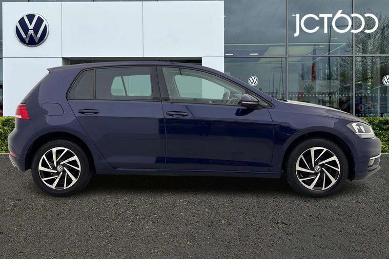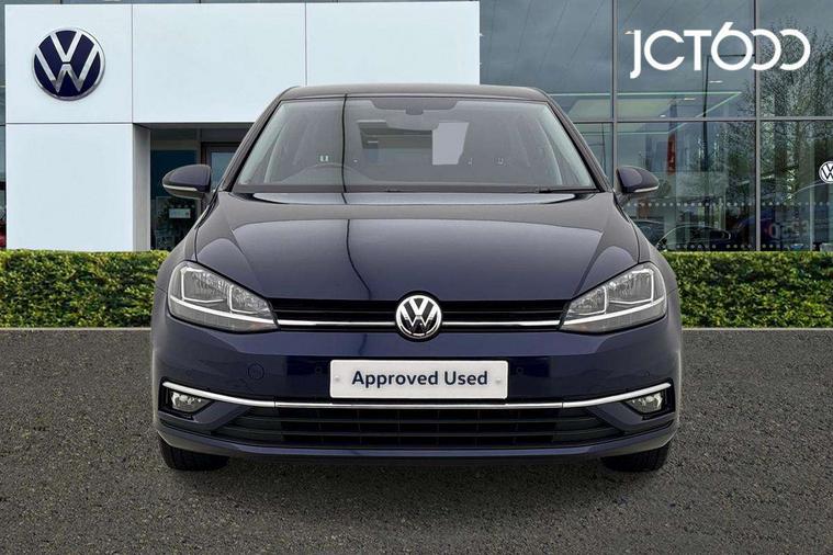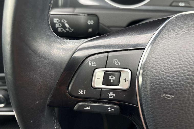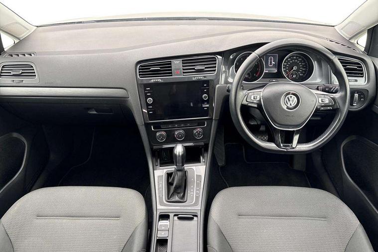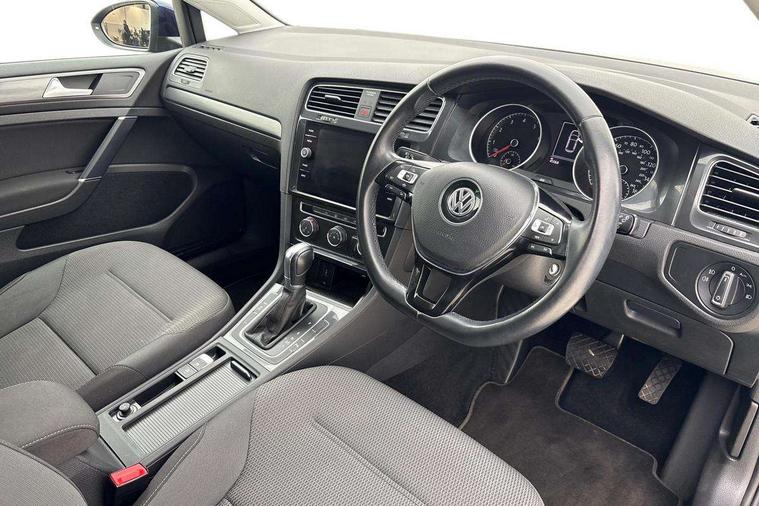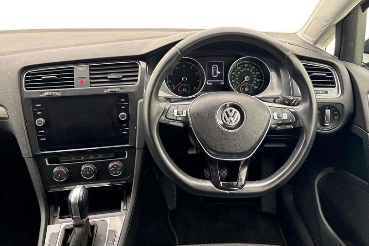 'Lights On' Reminder warning buzzer, ACC - Adaptive cruise control with front assist, forward collision warning, distance monitoring, city emergency brake and speed limiter, Bluetooth telephone and audio connection for compatible devices, Brake pad wear indicator warning light, Driver alert system, Driver profile selection, Driving Mode Selection with four preset modes - Eco, normal, sport or individual modes, Instrument cluster in white, Multifunction computer with visual gear change recommendation for fuel consumption, Power assisted speed sensitive electro-mechanical steering, Push tank flap, Speed limit display, Speedo, rev counter, electronic odometer, trip, service interval display, exterior temperature and fuel gauge, Stop/start system, Warning buzzer and light for front seatbelts unfastened, Battery regeneration during braking, XDS electronic differential lock, Composition media system, DAB Digital radio receiver, MP3/WMA compatability, Multi device interface (MDI) with USB connection, Personalisation 1.1 profile for media, Premium USB cable in choice of either Apple or Android smartphone compatibility, SD card slot, SMS Functionality, USB and SD card connectivity, Black front air intake and radiator grille with chrome insert, Black rear diffuser, Body colour bumpers, Body colour door handles, Body colour door mirrors with integrated indicators, Dusk sensor + automatic driving lights, Electric front windows, Electric rear windows, Electrically adjustable and heated door mirrors, Fully galvanised body, Heated rear windscreen, Hidden exhaust pipe, High level 3rd brake light incorporating LED Technology, LED daytime running lights, LED front fog lights with static cornering light function, Rear fog lamp, Rear tinted glass 65% light absorbing from B pillar backwards, Rear window aerial, Rear window wash/wipe with intermittent wipe, Reflectors in all doors, Tailgate with integrated rear roof spoiler, Windscreen wipers/ intermittent wipe + 4 position delay, 12V socket in luggage compartment, 3 rear headrests, 4 load lashing points in luggage compartment, 60/40 split folding rear seat backrest, Auto fold down lever in rear seat backrest, Bag hook in luggage compartment x 2, Cooled glovebox, Cupholder cover, Dust/pollen filter, Front and rear reading lights incorporating LED technology, Front centre armrest with storage compartment and two rear air vents, Front seat back storage pockets, Grab handles front x 2, rear x 2 with integrated coat hooks, Height and reach adjustable steering wheel, Illuminated vanity mirrors, Instrument lighting white adjustable panel illumination, Interior light delay, Isofix preparation for 2 rear child seats, Load through provision with rear centre armrest and cupholders x2, Luggage compartment lighting, Overhead storage box, Passenger underseat drawer, Pearl grey headlining, Storage box in luggage compartment, Storage compartment in roof console with cover, Storage compartments in centre console, Storage compartments in front doors, Storage compartments in rear doors, Stowable luggage compartment cover, Sun visors, Variable boot floor, height adjustable and removable, Convenience Pack - Golf, Light and Sight pack - Golf, Mirror pack - Golf, 3 rear three point seatbelts, Airbags - Driver's and front passenger's, curtain airbag, Driver's knee, front side impact and passenger's airbag deactivation switch, Anti-lock Braking System (ABS) with Hydraulic Brake Assist (HBA), Automatic post collision braking system, Child locks on rear doors, Driver/Passenger optimised head restraints, Electronic parking brake with auto hold, Electronic stability control (ESC) including Electronic differential lock (EDL) and ASR (Traction control) with deactivation via infotainment system, Pre crash preventive occupant protection, Three point height adjustable front seatbelts with tensioners, Tyre pressure loss indicator, Alarm with interior protection and deactivation via infotainment system, Electronic engine immobiliser, Remote central locking with 2 remote folding keys, Brushed dark silver decorative inserts in dash and door panels, Chrome plated air vent surround, Chrome plated electric mirror adjustment light switch surround, Polar night black centre console, Steel space saver spare wheel,