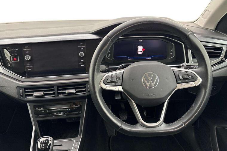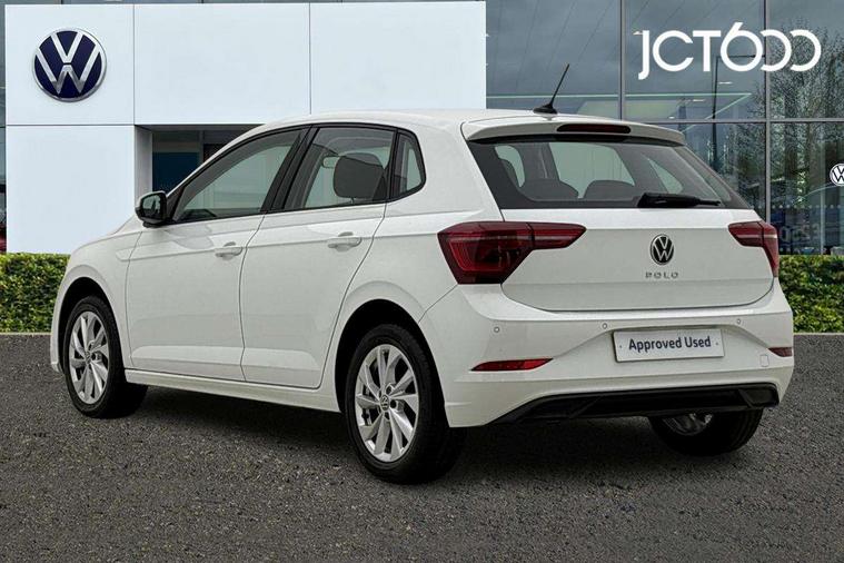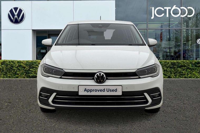 Adaptive cruise control without follow-to-stop and speed limiter, Bluetooth mobile phone interface, Digital Cockpit Pro with 10.25" Display, Driver alert system, Dynamic road sign display, Emergency call service, Power assisted speed sensitive steering, Preparation for We connect and We connect plus, Speedo and rev counter, electronic odometer, trip, service interval display and fuel gauge, Standard rear axle, Travel Assist - Lane keeping system and traffic jam assist, Travel assist including emergency assist, Trip computer, Warning signal and warning light for front and rear seatbelts not fastened, Washer fluid level indicator, Wireless app connect, Front wheel drive, Rear shock absorpion, Start-stop system with battery regeneration (recuperation - energy recovery during braking), DAB Digital radio, Diversity antenna for FM reception, Front and rear 6 speakers, Automatic dimming interior rear view mirror, Automatic headlights, Body colour door handles, Body coloured bumpers and radiator grille with chrome trims, Electric front windows, Heat insulating darkened glass in side and rear windows, Heat insulating glass windscreen, LED separate daytime running lights with coming/leaving home function, Power folding adjustable/heated exterior mirrors and front passenger exterior mirror lowering function, Rain sensor, Rear electric windows, Rear fog light, Rear side wing doors, Rear windscreen washer and wiper with interval delay, Third brake light, 12V power socket in centre console, 2 USB-C ports in the front, 2 USB-C charging sockets on the center console in the rear, 3 rear head restraints, 60/40 split folding rear seat and rear seat bench not split, Air care climatronic air conditoning system with active combination filter and 2-zone temperature control, Ambient lighting, Ceramique headliner, Chrome plated radiator grille inserts, air vent surrounds and light switch surrounds, Door and side trim panel, Driver and front passenger seat height adjustment, Driver/passenger sunvisors with illuminated vanity mirrors, Front + rear carpet mats, Front centre armrest, Front footwell illumination, Front seat backrest storage pockets, Front sports comfort seats, Handbrake lever handle in leather, Isofix child seat preparation easy-fit (for two outer rear seats, and front passenger seat) compatible with I-size, Leather trimmed gear knob, LED interior light with switch off delay and dimmer, 2 reading lights front and rear, Luggage compartment cover, Luggage compartment floor, Luggage compartment lighting, Lumbar adjustment for front seats, Multifunction steering wheel, Single front passenger seat, Standard pedal cluster, IQ LED matrix headlights pack - Polo, Light and vision pack - Polo, 3 point height adj front seatbelts + pretensioners, 3x3 point rear seatbelts, ABS, Driver and front passenger airbag with front passenger airbag deactivation, Drivers and front passengers safety optimised head restraints, ESC (Electronic stability control) + EDL (Electronic Differntial lock) and ASR (Traction control), Extended and predictive pedestrian/ cyclist protection, Front curtain and side airbags with center airbag, Front disc brakes, Hill hold control, Manual child lock in rear doors, Rear drum brakes, Single tone horn, Tyre pressure loss indicator, Alarm with interior protection, Anti-theft alarm system with interior monitoring, backup horn, and towing protection, Anti-theft wheel bolts, Electronic engine immobiliser, Chrome applications on rotary light, mirror adjustment, window regulator switches, outlet with frame in black, Deep iron gloss decorative inserts in dash and front door panels, Low rolling resistance tyres,