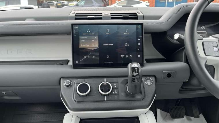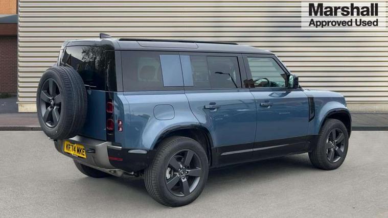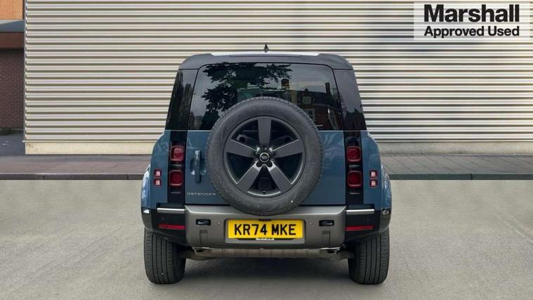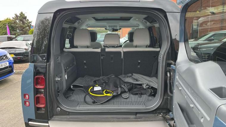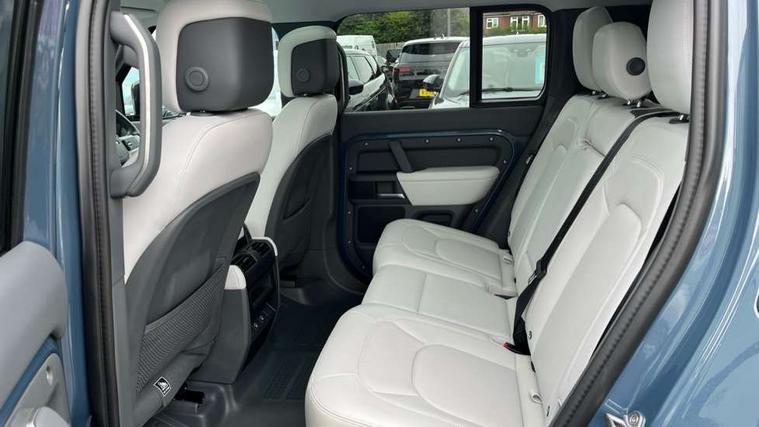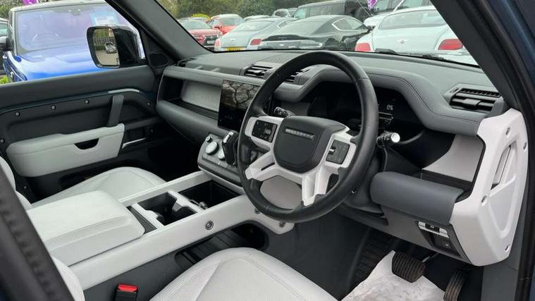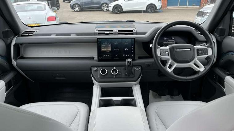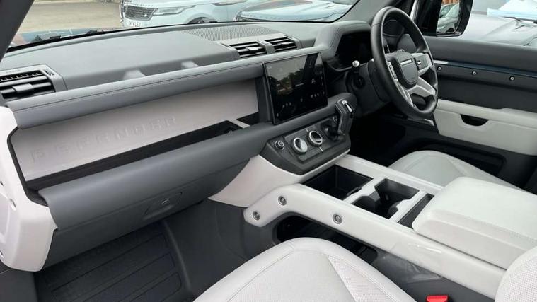 1 x USB-C (power only) & 1 x USB-C (power & data) in Row 1, 2 x USB-C in Row 2, 11.4" touchscreen, 360 degree parking aid, 3D Surround Camera with 360 View, 180 Rear View, Front Traffic Detection, Forward Vehicle Guidance, Tow Hitch Assist and clear sight Ground View, Adaptive cruise control, Android Auto, Apple CarPlay, Blind spot assist, Bluetooth system, Brake pad wear indicator, Clear exit monitor, Connected navigation pro, Driver condition monitor, Electric power assisted steering (EPAS), Interactive driver display, Lane keep assist, Push button start, Rear collision monitor, Rear traffic monitor, Traffic sign recognition with adaptive speed limiter, Trip computer, Wireless device charging, 8 speed automatic transmission, AC/DC charging, Adaptive dynamics, All wheel drive system, Electronic air suspension, Home charging cable mode 2 basic, Public charging cable, Twin speed transfer box, DAB Radio (Digital Audio Broadcasting), Meridian 700w surround sound audio system with 15 speakers, Pivi pro connected, Automatic headlight levelling, Automatic headlights, Black exposed rear recovery eyes, Body coloured bonnet, Centre high mounted stop light, Electric heated/power fold door mirrors with approach lights and auto dimming driver side, Electric windows with one touch open/close and anti-trap, Follow me home lighting, Front fog lights, Heated rear window with timer, Heated windscreen, Illuminated metal treadplates with brand name script, LED tail lights, Matrix LED headlights with signature DRL, Privacy glass, Puddle lights, Rain sensing windscreen wipers, Rear fog lights, Rear side wing doors, Rear wiper, Side hinged tailgate, Sliding panoramic roof, Standard tail door, Trailer stability assist, X-Dynamic badge, 12V power socket in loadspace, 3 seat bench in 2nd row, Alpine lights, Configurable cabin lighting, Durable rubber cabin flooring, Durable rubber loadspace flooring, Electric reach + rake adjustable steering column, Electrically adjustable steering column, Extended leather upgrade, Footwell lights, Front head restraints, Front passenger isofix child seat attachment, Heated steering wheel, Loadspace cover, Loadspace Hook, Multifunction steering wheel, No flat load floor storage, Overhead stowage for sunglasses, Rear headrests, Rear ISOFIX, Rear reading lights, Single front passenger seat, Soft close tail door, Standard seat configuration, Storage glovebox, Sunvisors with illuminated vanity mirrors, Twin front cupholders, Non-smoker package, Online pack with data plan - Defender, 5 x 3 point seatbelts, ABS, Brake hold function, Cornering brake control (CBC), Customer configurable autolock, Driver and passenger airbags, DSC - Dynamic Stability Control, EBD - Electronic brakeforce distribution, Electric parking brake (EPB), Emergency brake assist, Emergency braking, ESP + traction control, Front airbags with passenger seat occupant detector, HDC - Hill descent control, Hill launch assist, Low traction launch, Power operated child locks, Remote for (e-Call, Optimised assistance call, InControl app, Climate, beep and flash and door), RSC - Roll stability control, Seat belt reminder, TPMS (Tyre pressure monitoring system), Alarm, Immobiliser, Intrusion sensor, Keyless entry, Locking wheel nuts, Secure tracker pro,