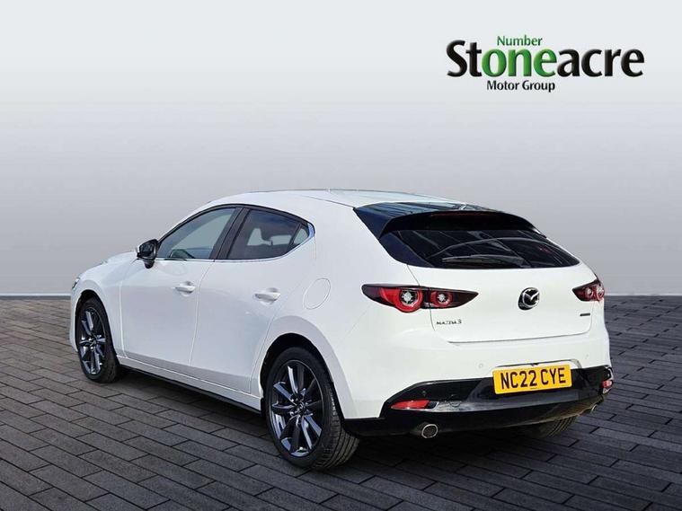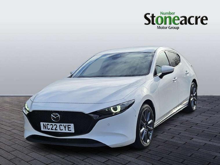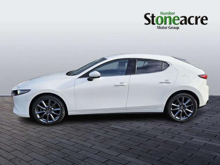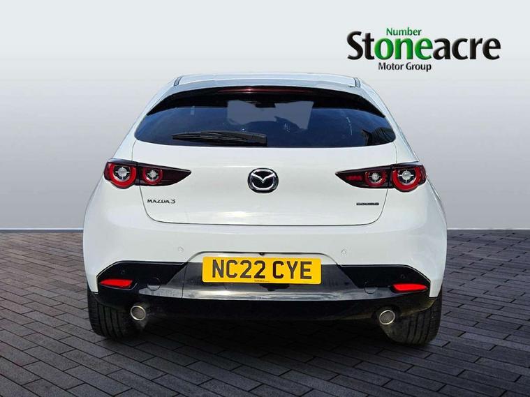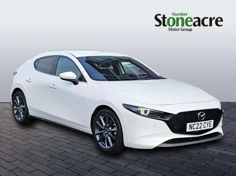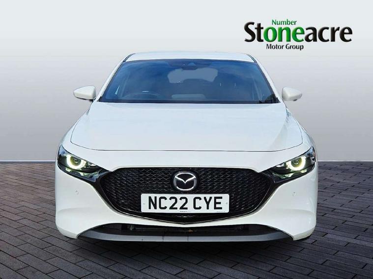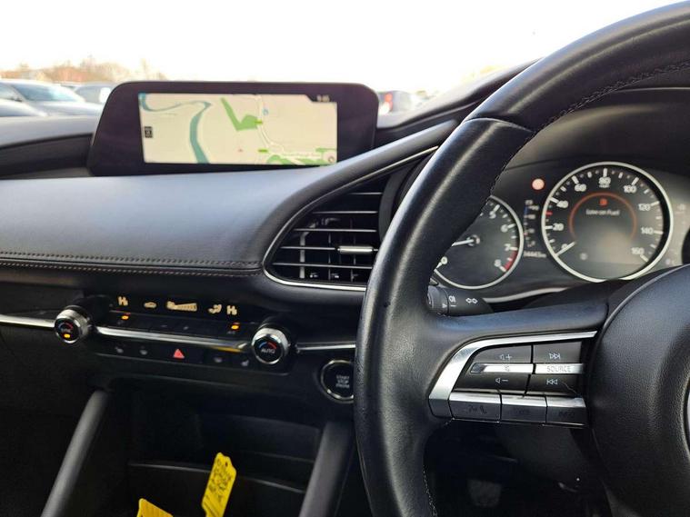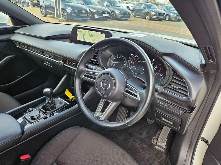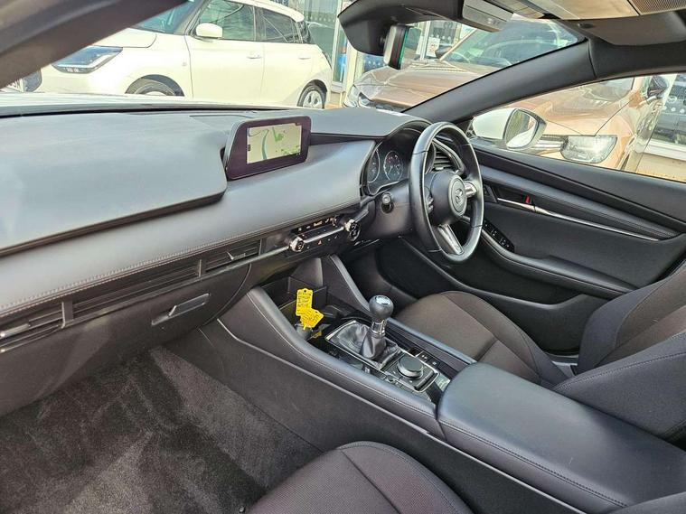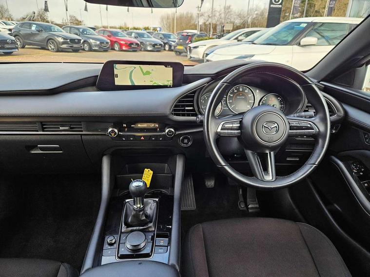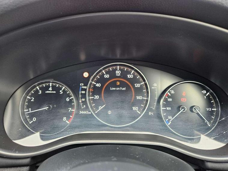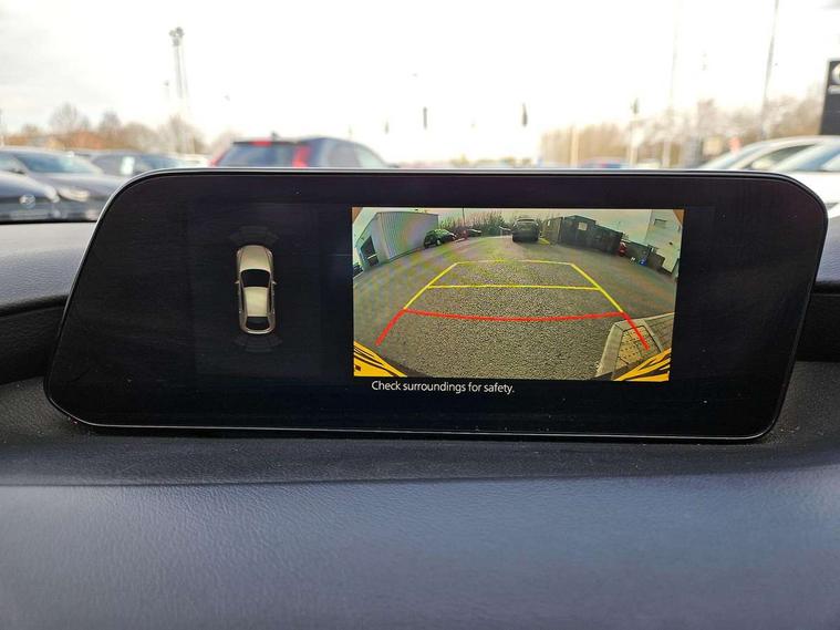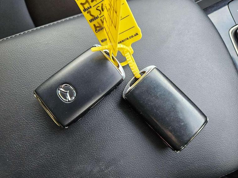 7" colour TFT display, 8.8" Colour centre touch screen display with Mazda Connect infotainment, Apple car play/Android Auto, Audio transfer from bluetooth devices, Blind spot monitoring with rear cross traffic alert, Colour active driving display inc Windscreen projected, Traffic Sign Recognition, turn-by- turn navigation and Mazda Radar Cruise Control information, Digital instrument cluster, Driver attention alert system, E-call with GPS, Emergency stop signalling system, Engine start/stop button, Front and rear parking sensor with audible and visual warning, Head up Display, Integrated bluetooth with steering wheel mounted controls, Intelligent speed assist, Lane keep assist system (LAS) with Lane departure warning system (LDWS), Mazda connected services, Mazda Navigation System with european mapping, Mazda Radar Cruise Control, Mobile App interface, Multimedia Commander, PAS, Reversing camera, Service indicator, Traffic sign recognition (TSR), Trip computer, Cylinder Deactivation, i-stop, Mazda Multimedia System with AM / FM / DAB radio with 8 speakers, Adaptive LED Headlights, Auto dimming driver's door mirrors, B-pillar garnish in piano black, Body coloured, electrically adjustable, heated auto power folding door mirrors with integrated indicators, Coming/leaving home lighting function, Dark metallic finish signature wing, Dual chrome tailpipes tip, Dusk sensing headlights, Electric front/rear windows with one touch/auto up/down, Frameless auto dimming interior rear view mirror, Front body coloured bumper with black lower bezel, Front kodo turn signal, Gloss black finish front grille, Gloss black rear roof spoiler, LED indicator lights, LED third brake light, Privacy glass with dark tinting on rear side windows and rear window, Rain sensing front wipers with adjustable sensitivity and speed, Rear colour coded bumper with gloss black lower moulding, Rear fog lights, Rear side wing doors, Signature LED daytime running lights, Signature LED rear combination lights, Speed adjustable rear wash wiper with intermittent wipe, 12v electrical power outlet, 3 seat bench in 2nd row, 60/40 split fold down rear seats, Black cloth door panel inserts, Cloth upholstery, Dark roof headlining, ceiling and pillars, Driver, front passenger and two rear door pockets, Driver, Front passenger and two rear grab handles with coathooks, Driver/passenger sunvisors + vanity mirrors (drivers side with ticket holder), Drivers seat manual slide recline and height adjustment, Dual zone climate control air conditioning, Folding rear centre armrest with two cup holders, Front and rear courtesy lamps, Front armrest, Front centre storage with two cupholders, Front head restraints, Front passenger seatback pocket, Front passengers seat manual slide, recline and height adjustment, Gear shift indicator, Heated front seats with 3 stage setting, Illuminated glovebox, Interior colouration dashboard and doorcards in black with dark stitching, ISOFIX child seat anchorage points attached on outer rear seats, Leather wrapped gear shift knob, Leather wrapped steering wheel, LED interior light, Luggage compartment light, Power outlet in luggage compartment, Roof mounted sunglasses holder, Single front passenger seat, Three height adjustable rear head restraints, Tilt/height adjustable steering wheel, USB input, 3 point ELR front seatbelts with pretensioners, 3 rear 3 point seatbelts with ELR, Anti-lock braking system (ABS), Drivers knee airbag, DSC - Dynamic Stability Control, Dual stage driver and single stage passenger airbags, EBD - Electronic brakeforce distribution, Electronic parking brake with auto disengage function and auto hold function, Front and rear curtain airbags, Front passenger airbag cut-off switch, Front side airbags, Front smart city brake support, G-Vectoring control plus, Hill launch assist, Intelligent Traction Control system, Manual child lock in rear doors, Mild Hybrid system with regenerative braking, Seatbelt reminder for driver/front passenger and rear seats, Tyre pressure monitoring system (TPMS), Auto door lock when driving, Remote central locking + deadlocks, Smart keyless entry, Thatcham accredited alarm and immobiliser, 18" Grey alloy wheels, Emergency tyre repair kit,