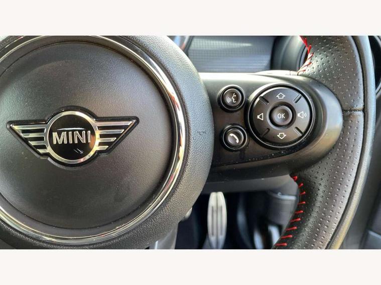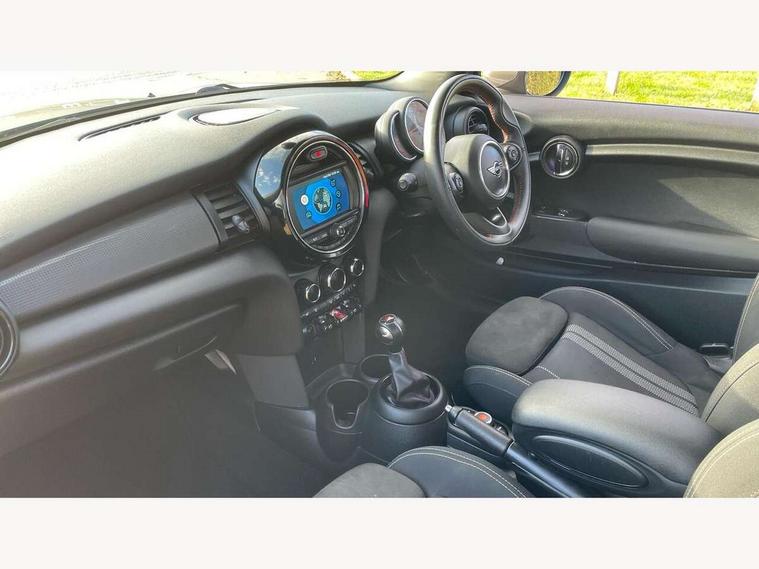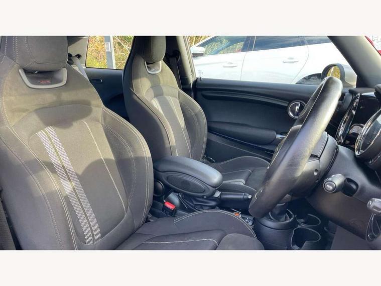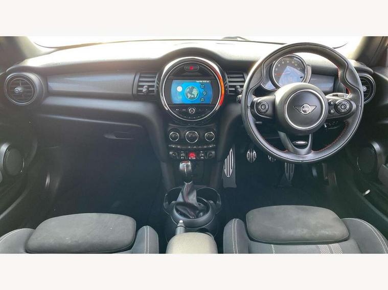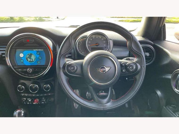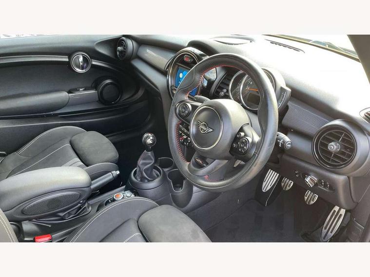 Automatic start/stop function with brake energy recuperation, Compatible mobile phone bluetooth with audio streaming, Electro-mechanical speed dependant steering assistance, Instrument cluster, Mini E-call, MINI TeleServices, On board computer, Service interval indicator, Double Vanos system, Fully variable valve control, High precision injection, Performance Control, 6.5" touchscreen with LED ring, FM tuner and DAB digital radio, Automatic headlight activation switch, Body colour fuel filler cap, Chrome border high gloss black slats radiator grille, Dynamic brake lights, Electric front+rear windows, Heated rear window, Heated windscreen washer jets, John Cooper Works - aerodynamic kit (front and rear apron, spoiler), front and rear sport bumpers and part-painted side sills with door sill finishers, John Cooper Works rear spoiler, LED headlight with closed ring and daytime driving lights, Left exhaust tailpipe with chrome finisher, Metal door sill strips with MINI imprint, Model logo Cooper on right of tailgate, Rain sensor window wipers, Rear fog lights, Rear LED lights with union jack design, Rear window wiper, Side scuttle panel with integrated indicator, Sun/heat protection glass, White indicator lenses, 12V Accessory socket in centre console, 4 lashing eyes in luggage compartment, 60/40 split folding rear seat, Anthracite headlining, Chrome interior highlights, Cupholders, Front and rear head restraints, Front and rear isofix with front passenger airbag deactivation, Glove compartment, Height and length steering column adjustment, Interior lighting with 12 basic colours selectable via toggle switch in roof, John Cooper Works leather steering wheel with contrasting stitching in Chilli Red with John Cooper Works logo, John Cooper Works Logo in seat, Leather gearshift lever and handbrake gaiters, LED reading lights, vanity mirror lights, front foot well light and spotlight on front seats, Manual air conditioning, Mechanical seat adjustment, driver seat height adjust, forward/back and front seats backrest, Mini logo projection on floor from drivers exterior mirror, Multifunction steering wheel, Storage compartments in doors, Sunvisors with vanity mirrors, 3 point seatbelts on all four seats, 6 Airbags - front, side, head and seat belt tensioners, Anti-lock braking system (ABS), DSC - Dynamic Stability Control, Front and rear disc brakes, Hill start assist, Single tone fanfare horn, Tyre pressure monitoring system, Alarm system with tilt sensor, monitoring doors, bonnet interior and tailgate, Electronic vehicle immobiliser, Start/stop toggle with keyless go, Tool kit,