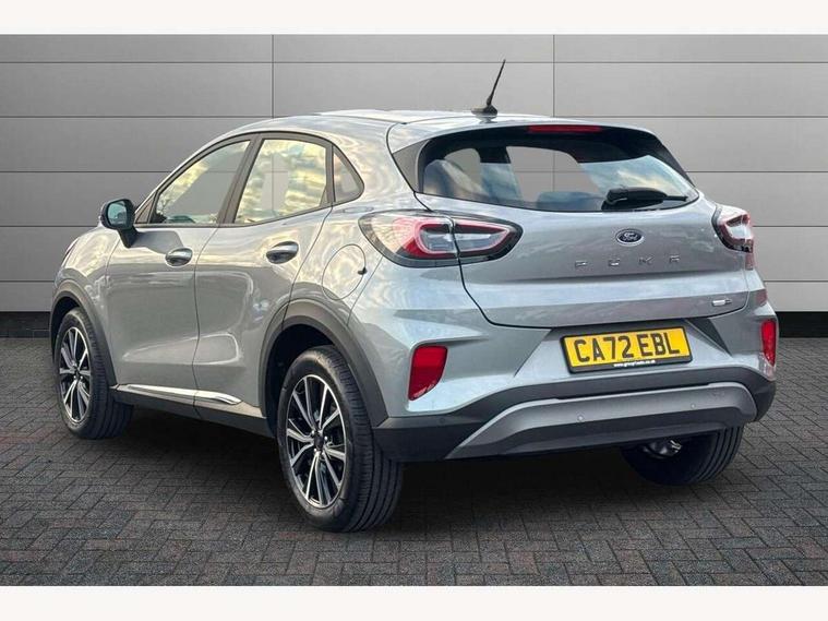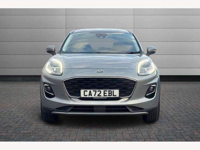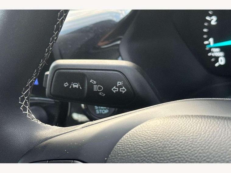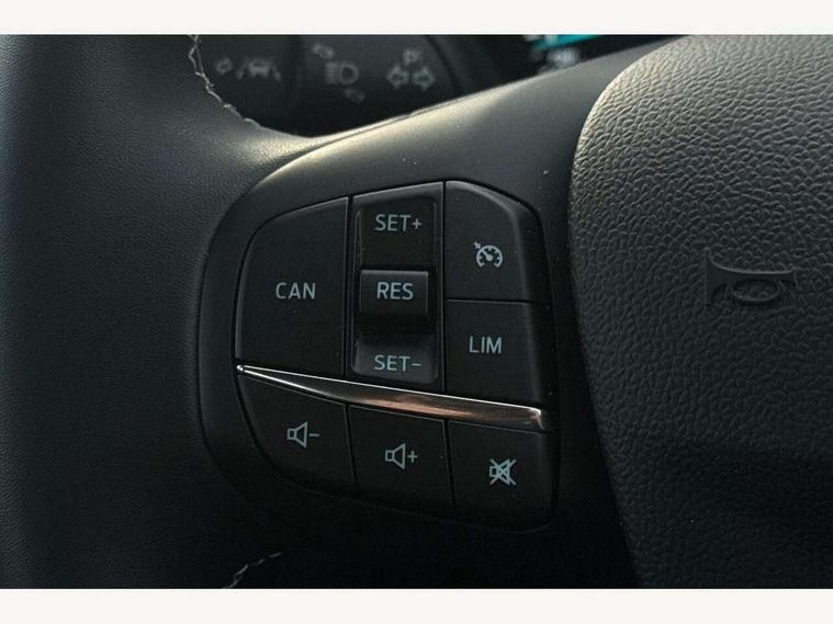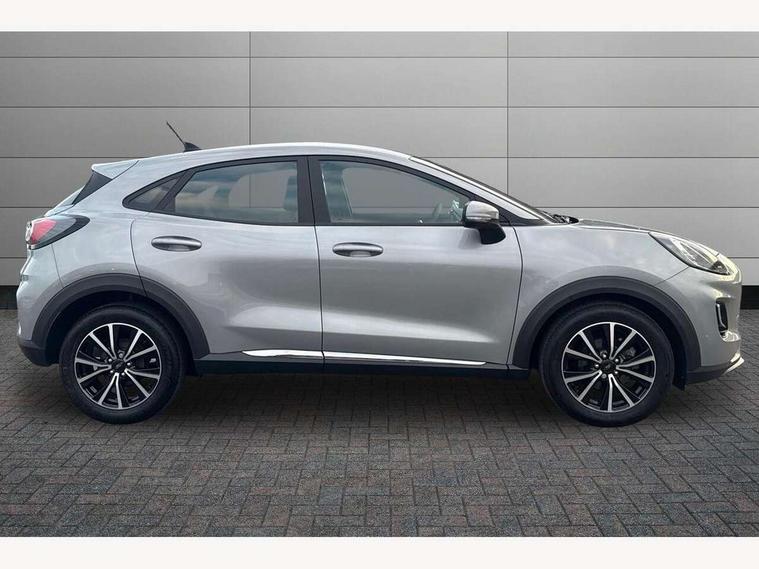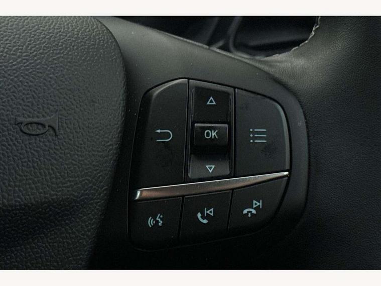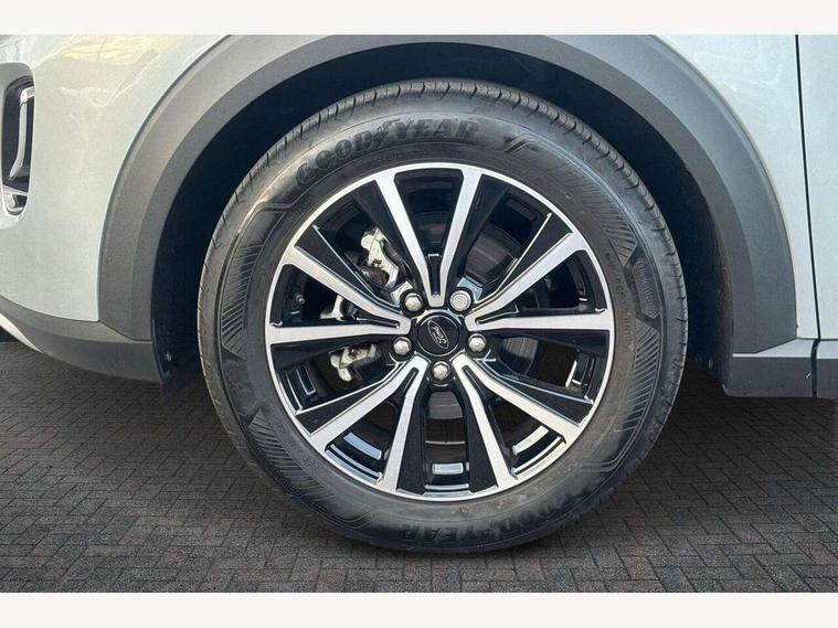 Driver impairment monitor, Emergency call service, Ford easy fuel, Lane keeping aid with lane departure warning, Power assist steering, Power start button, Rear parking sensor, Selectable drive modes(Normal, Eco, Sport, Slippery and Trail), Speed sign recognition, Standard suspension, Automatic headlights with auto high beam, Automatic rain sensing wipers, Body colour rear spoiler, LED rear lamps, Power foldable heated door mirrors with puddle lamps, Projector headlamps with LED day time running lights and front fog lamps, Quickclear heated windscreen, Rear side wing doors, Rear wiper, Third brake light, 3 seat bench in 2nd row, Centre console with armrest and stowage, Electronic automatic temperature control (EATC), Ford megabox extended bootspace, Front and rear head restraints, Front floor mats, Manual 2 way passenger seat adjustment, Manual 4 way driver seat adjust with lumbar adjustment, Sensico leather steering wheel/gear knob/handbrake, Single front passenger seat, Titanium cloth upholstery, Ford SYNC 3 navigation pack - Puma, 3 rear seatbelts, Child safety lock, Electronic stability control (ESC) and hill start assist, Pedestrian/cyclist detection & post-collision braking, Pre collision assist system, Tyre pressure monitoring system (TPMS), Thatcham alarm, 17" 10 spoke absolute black machined finish alloy wheel,